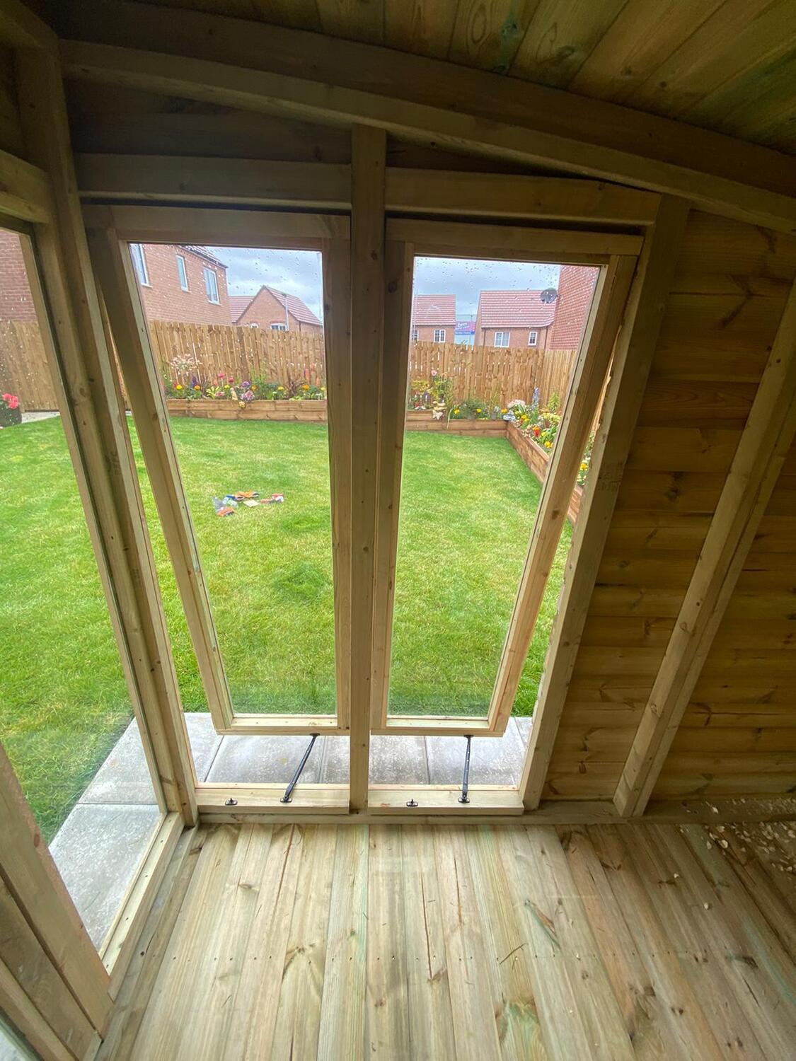 Make your long window opening to add ventilation. Perfect when using the summer house as a gym, for hot tubs, home office etc.