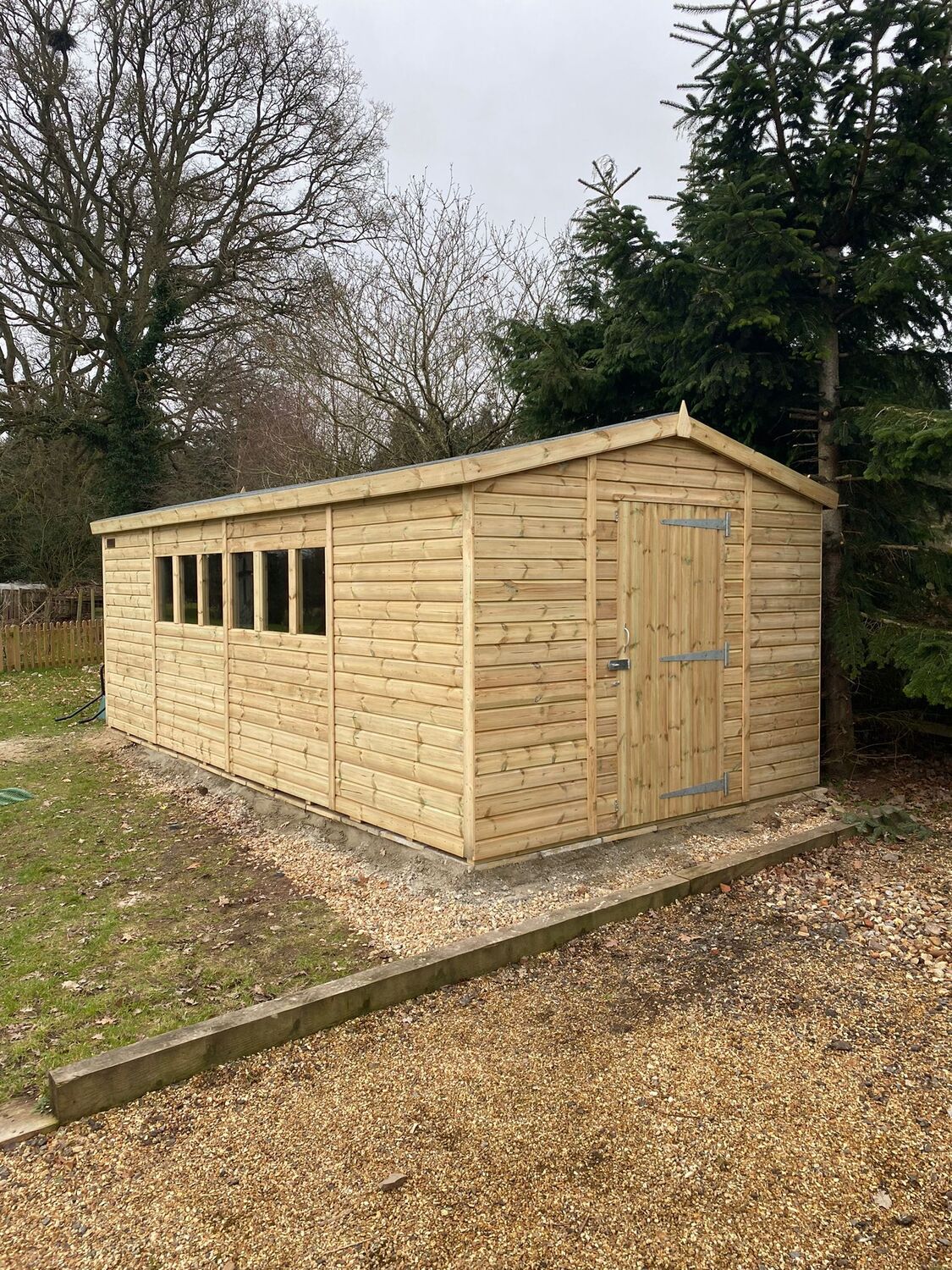20x10 apex roofed shed in our tanalised 19mm T&G.