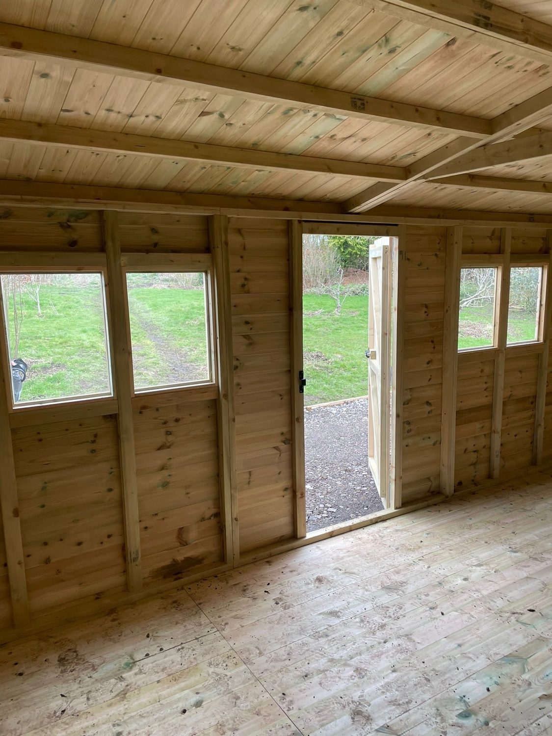 The shed has a 4ft wide 6ft high double door, a 2ft 6" 6ft high single door and 4 windows.
