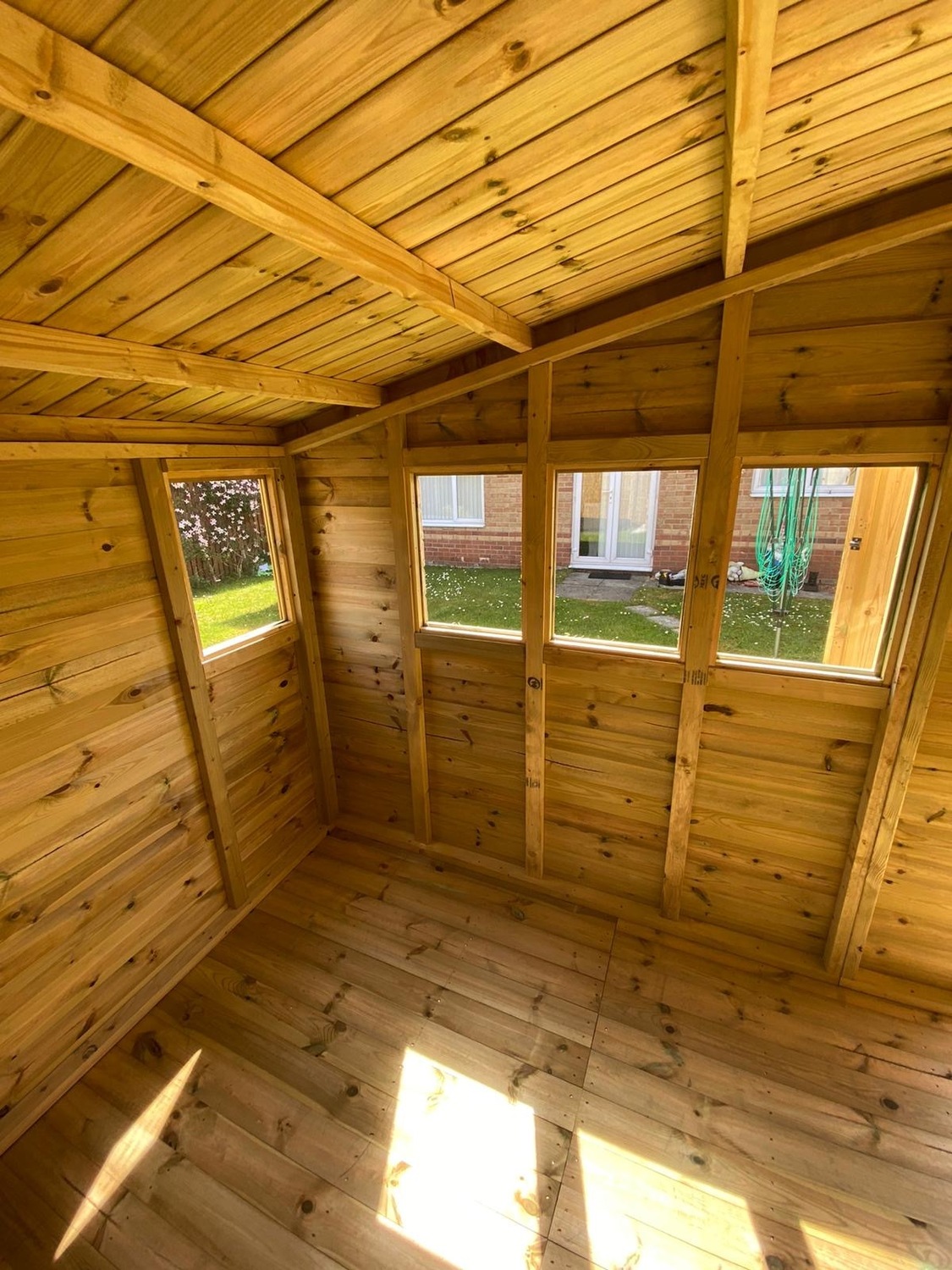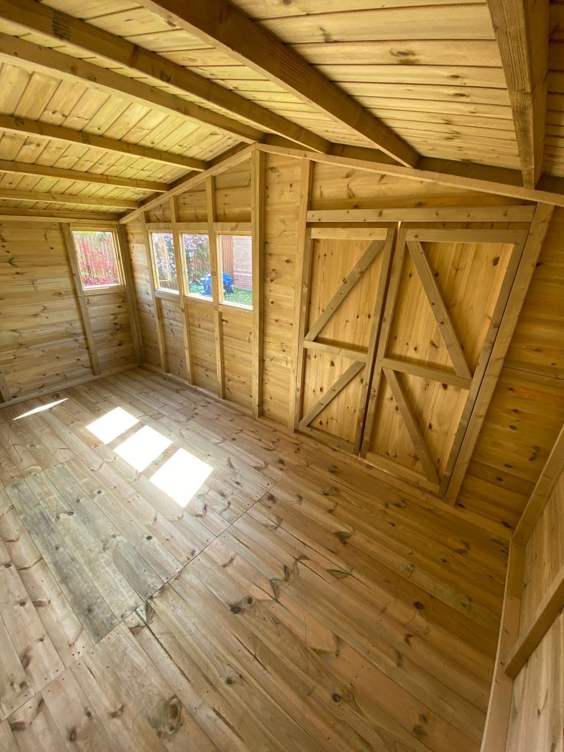 The shed has a 4ft wide 6ft high double door and 4 windows.