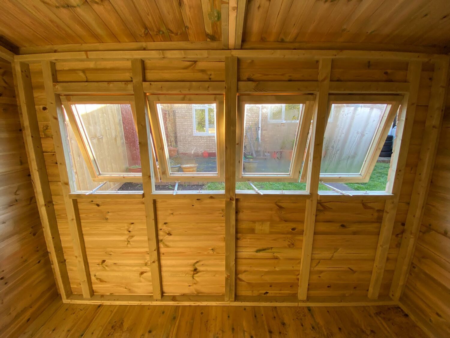 The summerhouse has 4ft wide 6ft high double door and 4 opening windows.