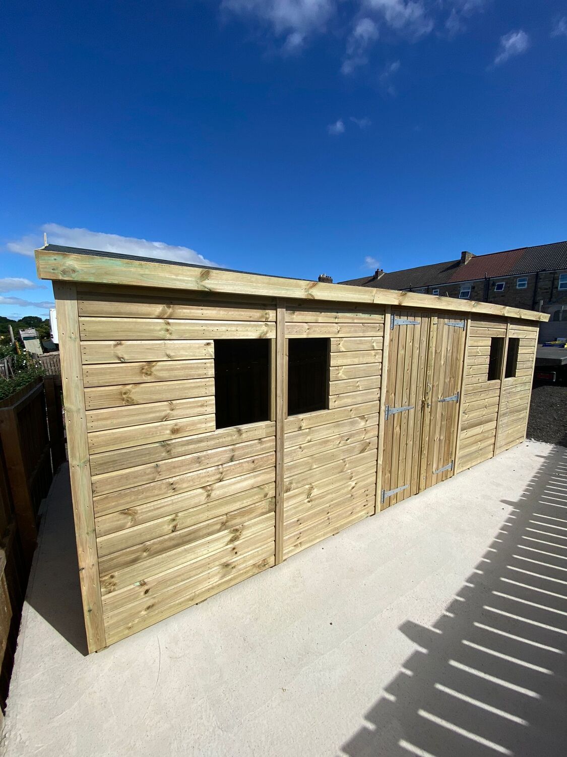 The shed is 10ft wide and 20ft deep.