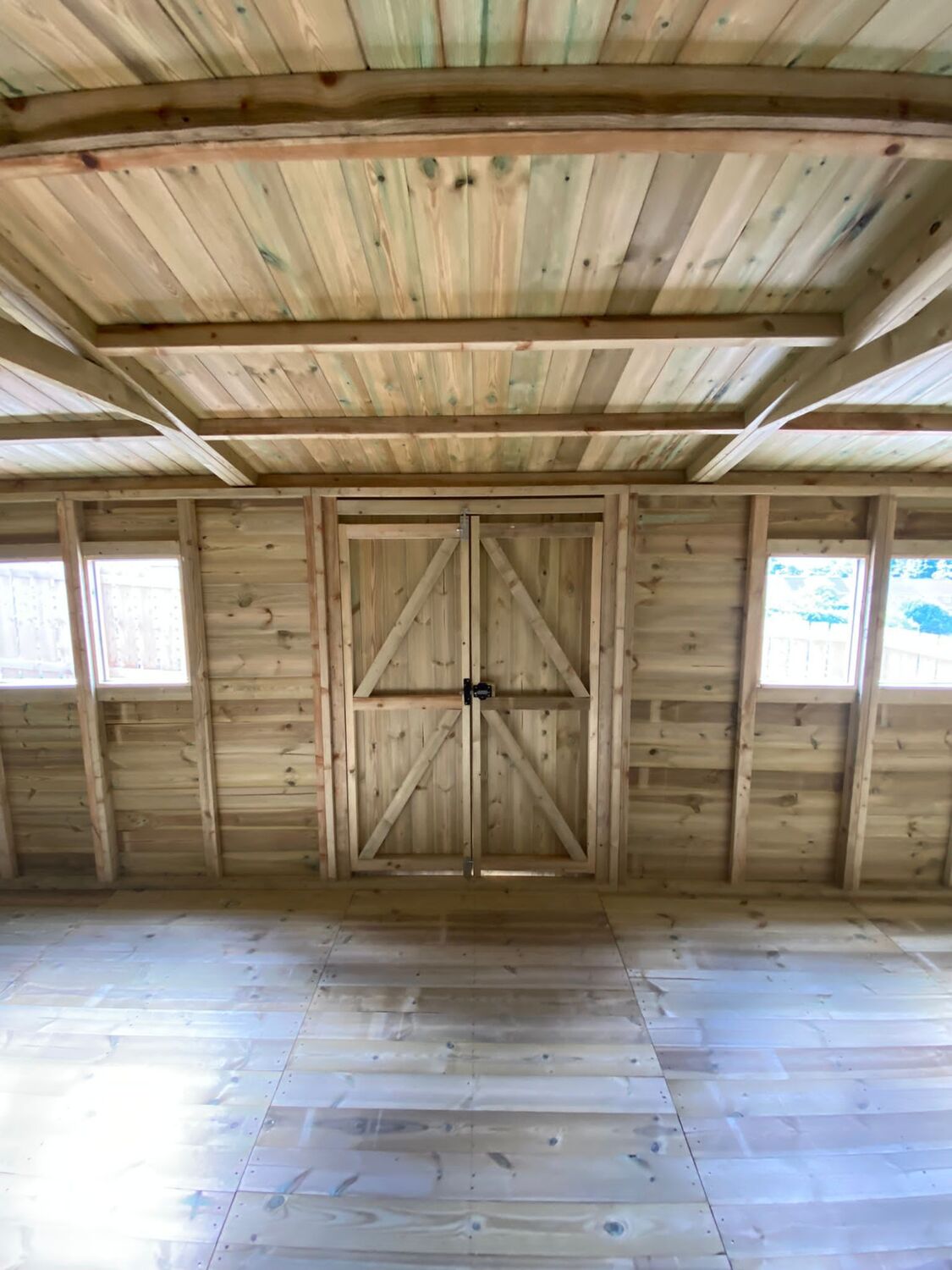 The shed has a 4ft wide 6ft high double door and 4 windows.
