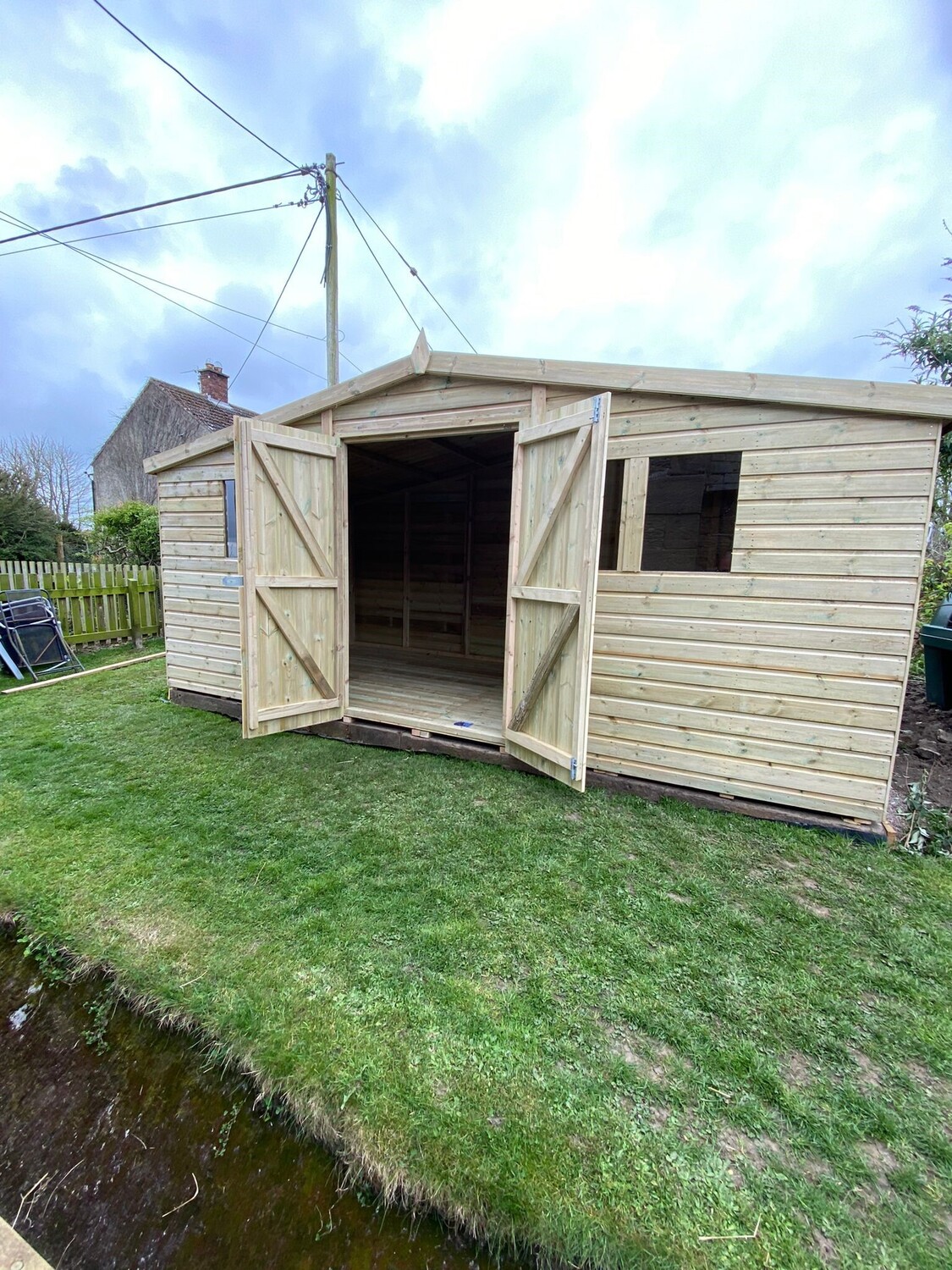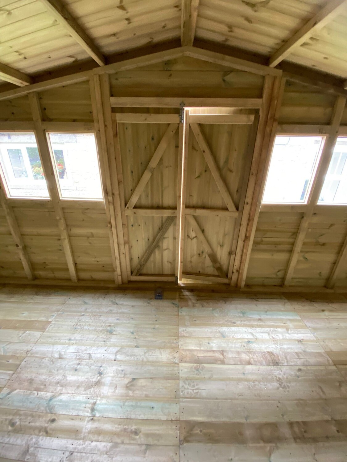 The shed has a 4ft wide 6ft high double door and 4 windows.