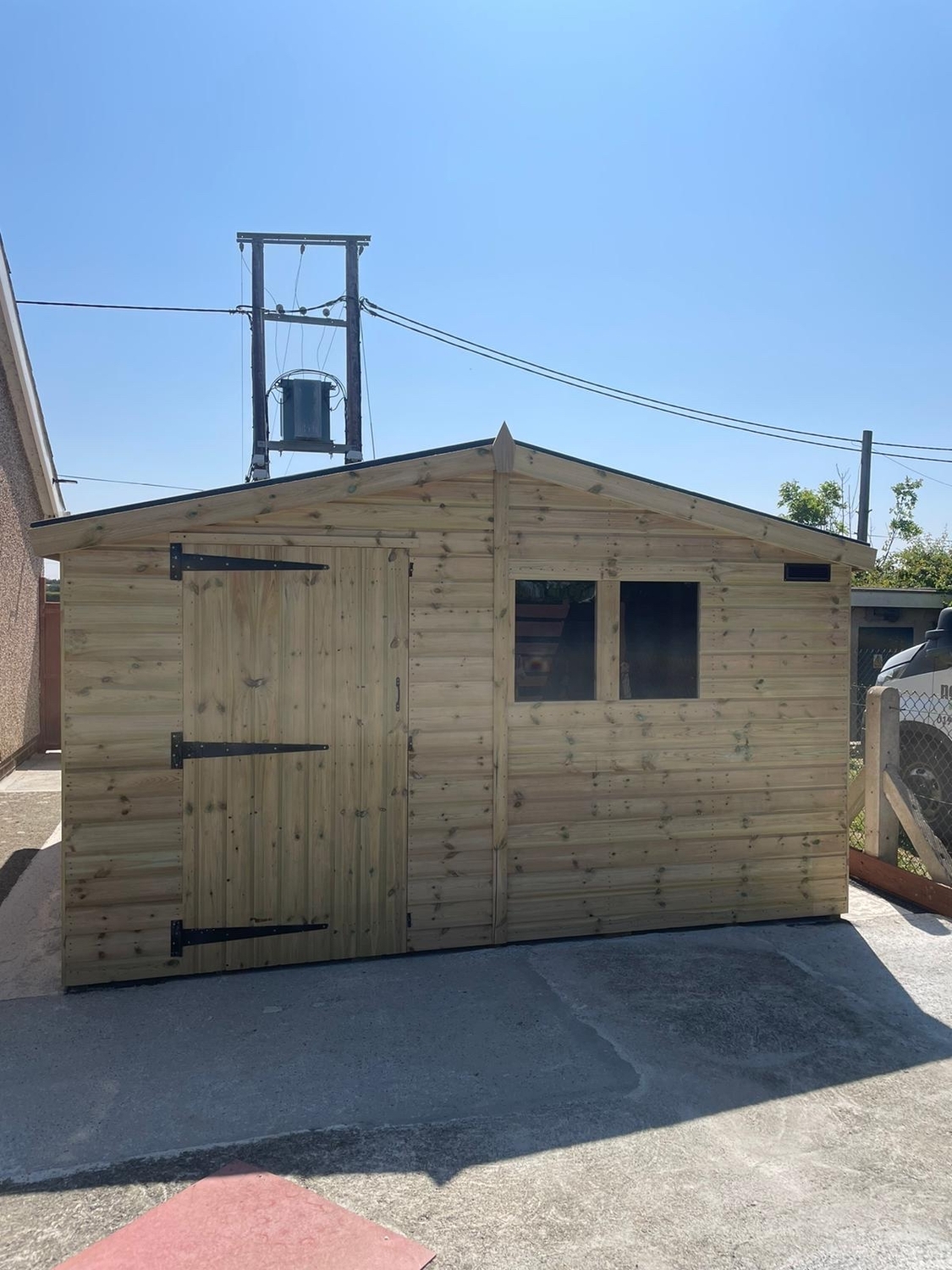 12x12 apex reverse roofed shed in our tanalised 19mm T&G.