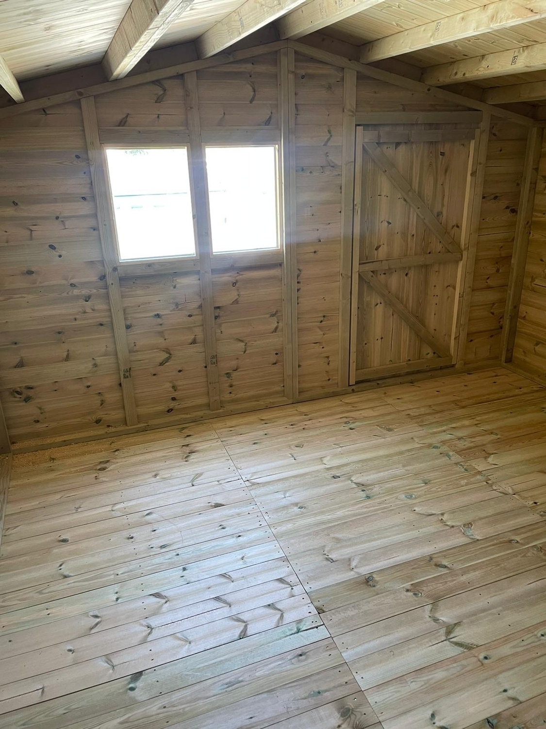 This shed has our upgraded 4x2 framework in the roof which is required to accommodate the 12ft span.