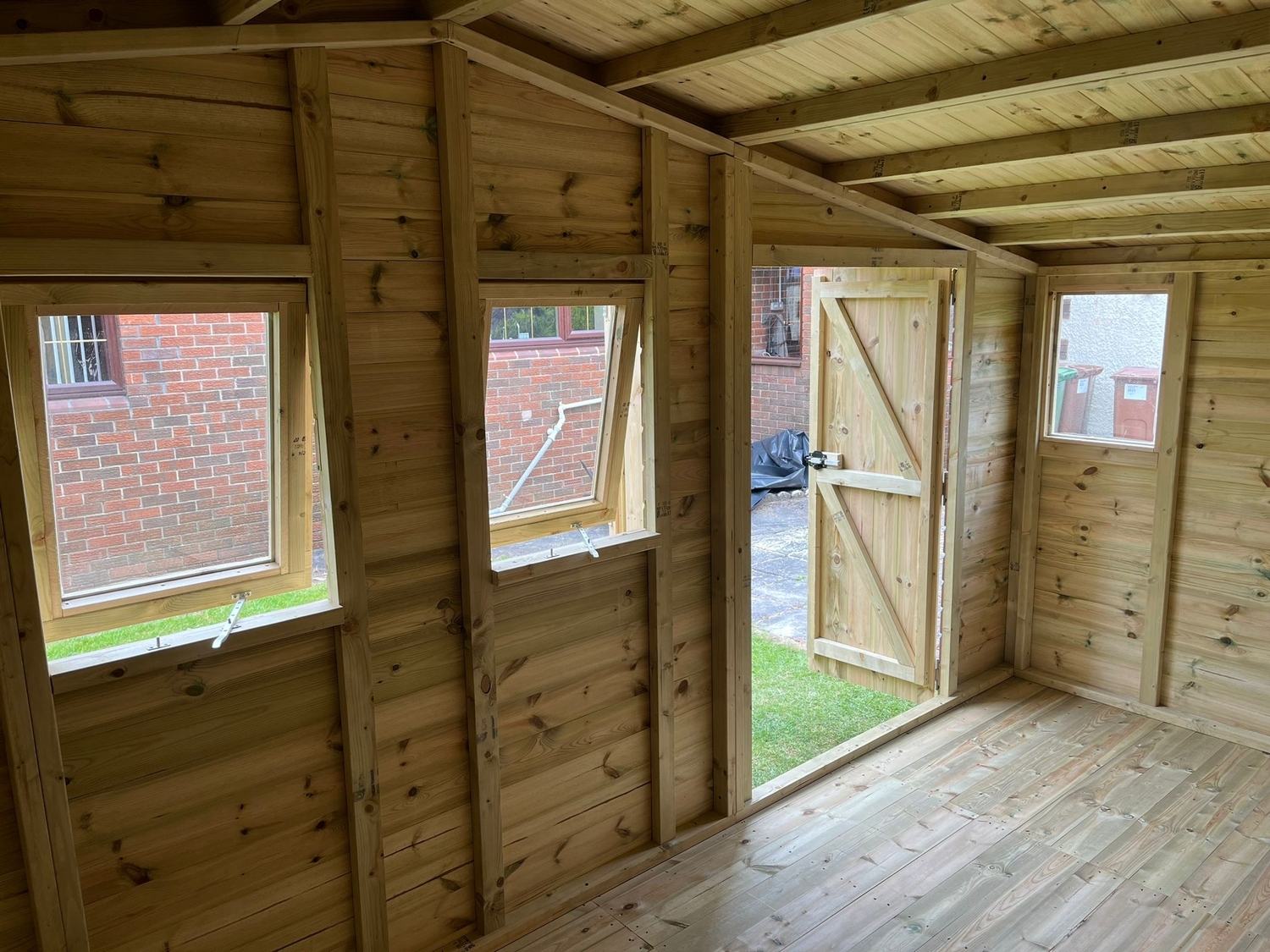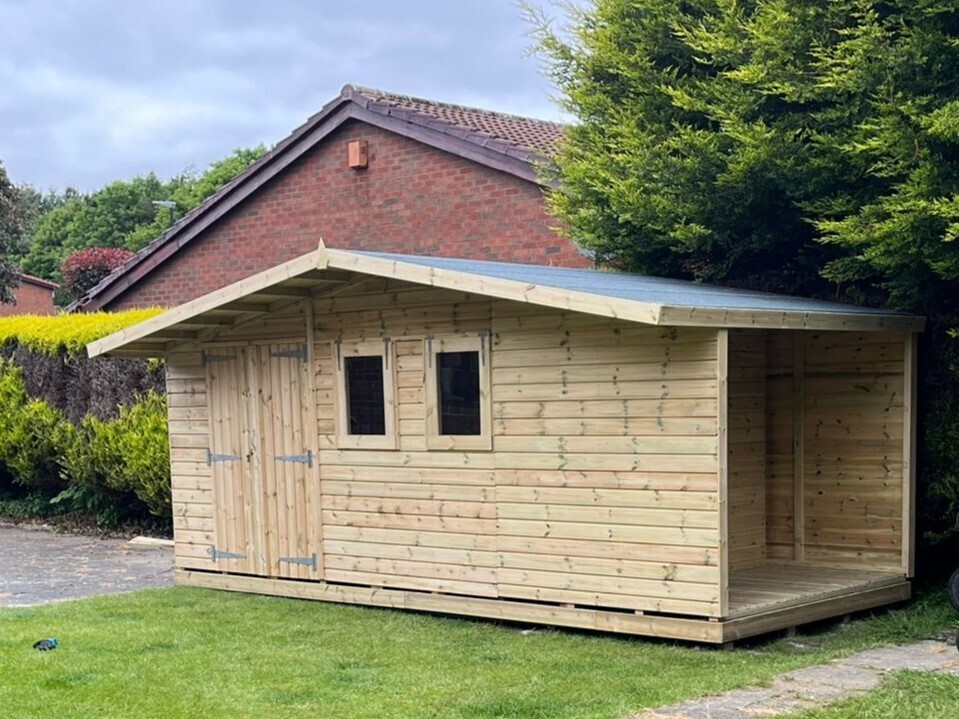 The shed is 14ft wide internal with a 4ft log store area making it 18ft wide in total and 8ft deep.
