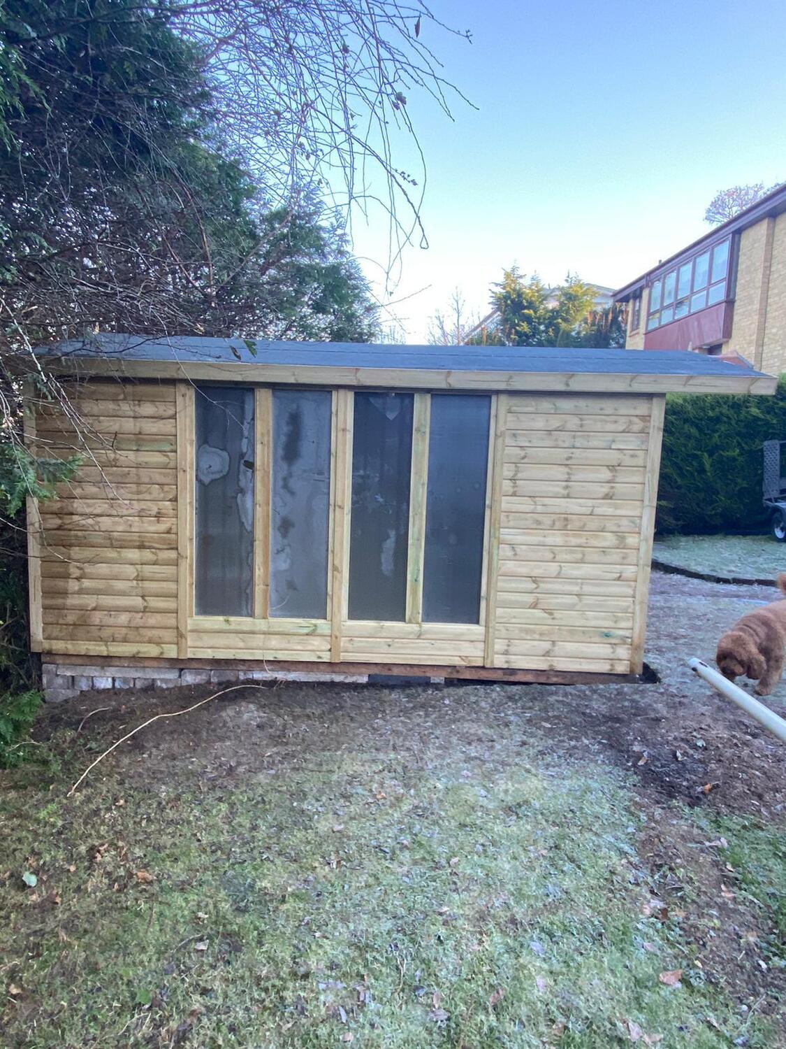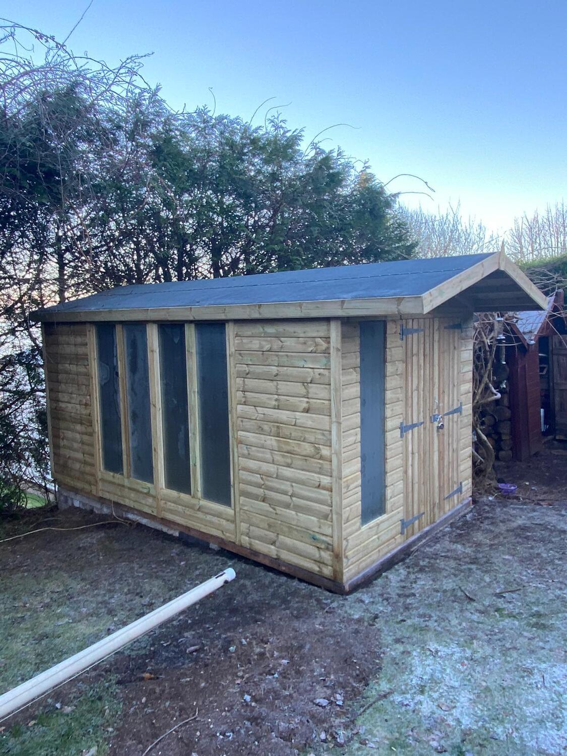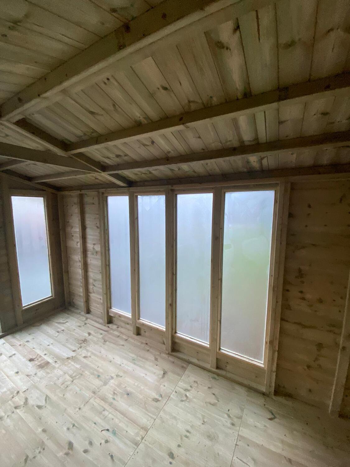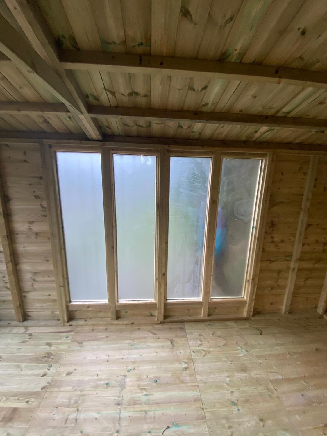 The shed has a 4ft wide 6ft high single door and 5 of our upgraded full length windows.