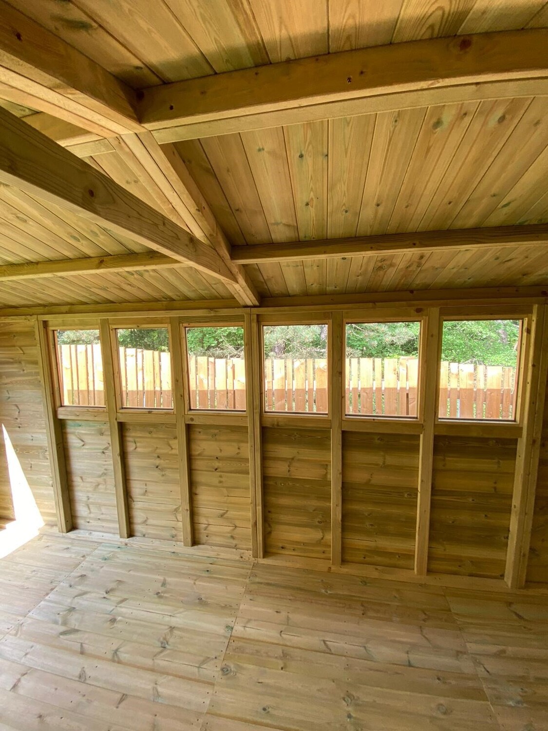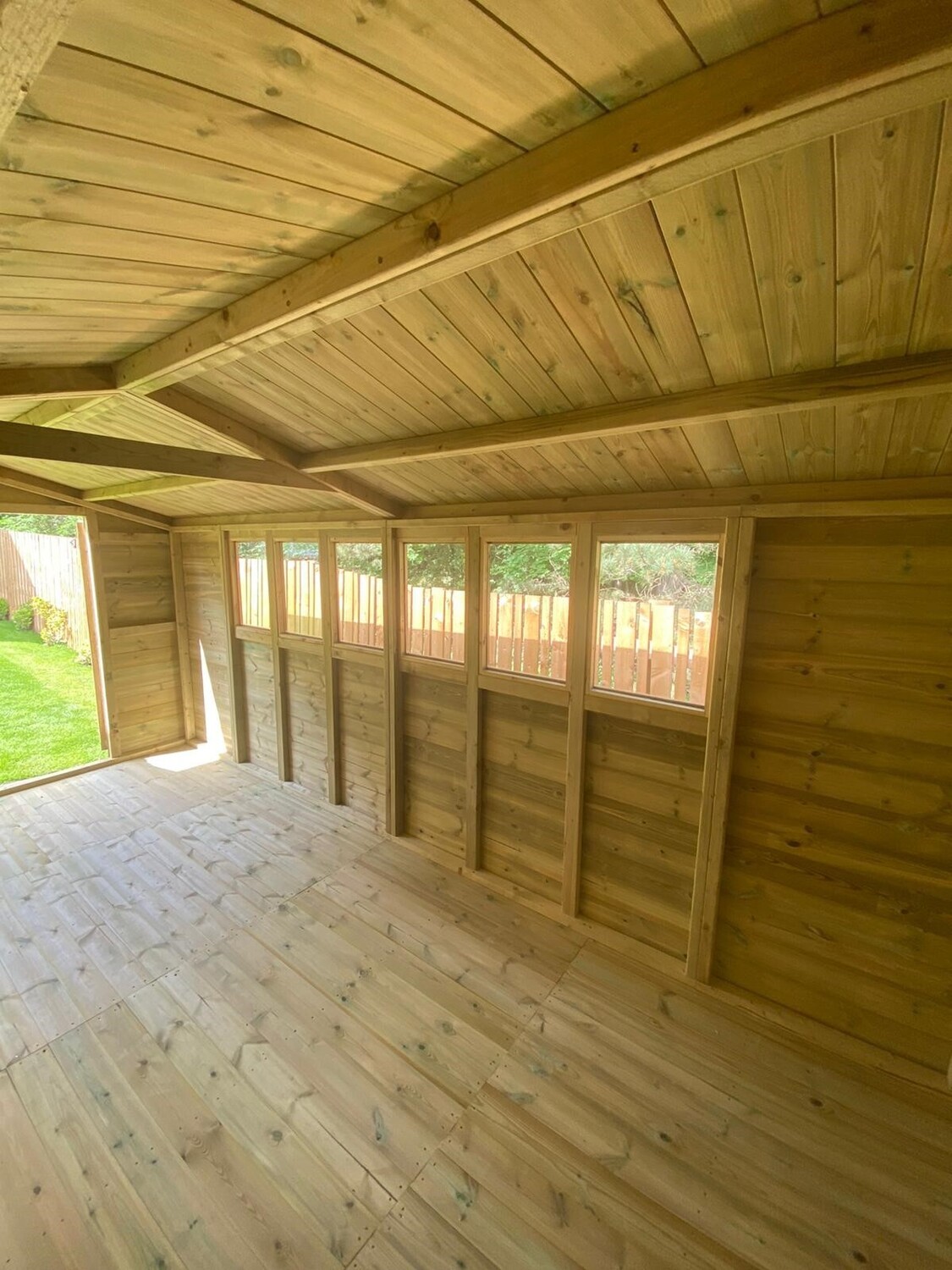 The shed has a 4ft wide 6ft high double door and 6 windows.