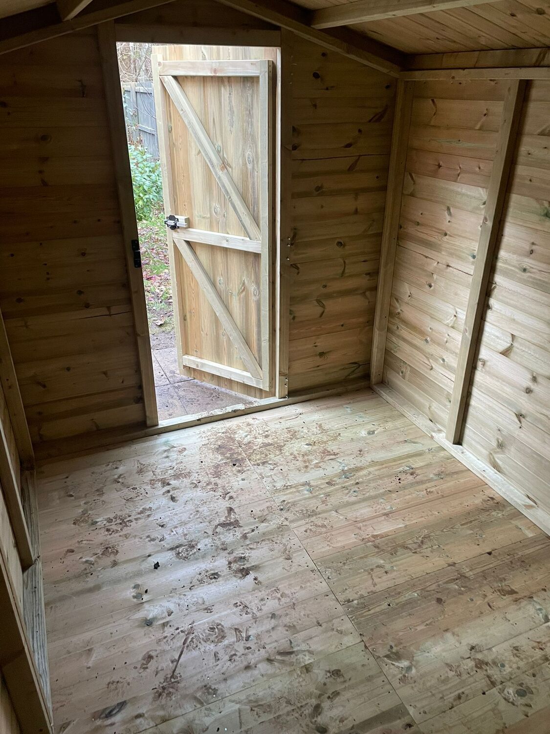 The shed is 7ft wide at the front where the door is and 10ft deep.