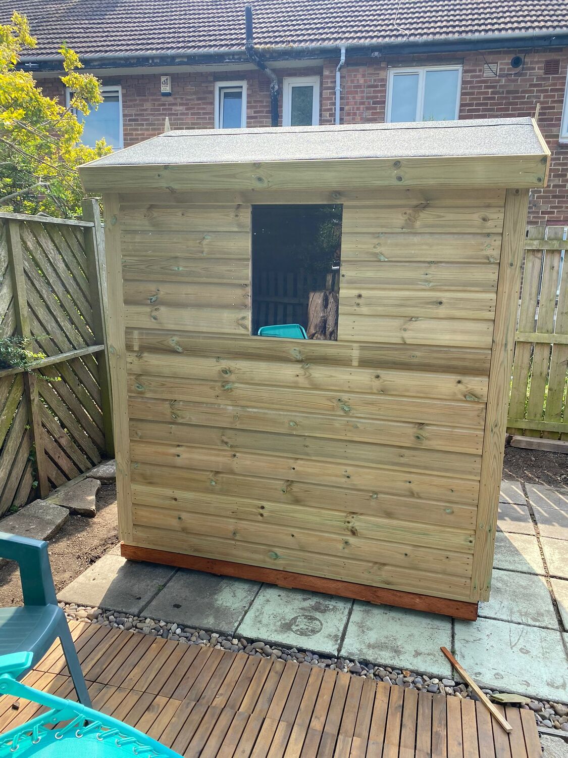 The shed is 5ft wide at the front where the door is and 6ft deep.