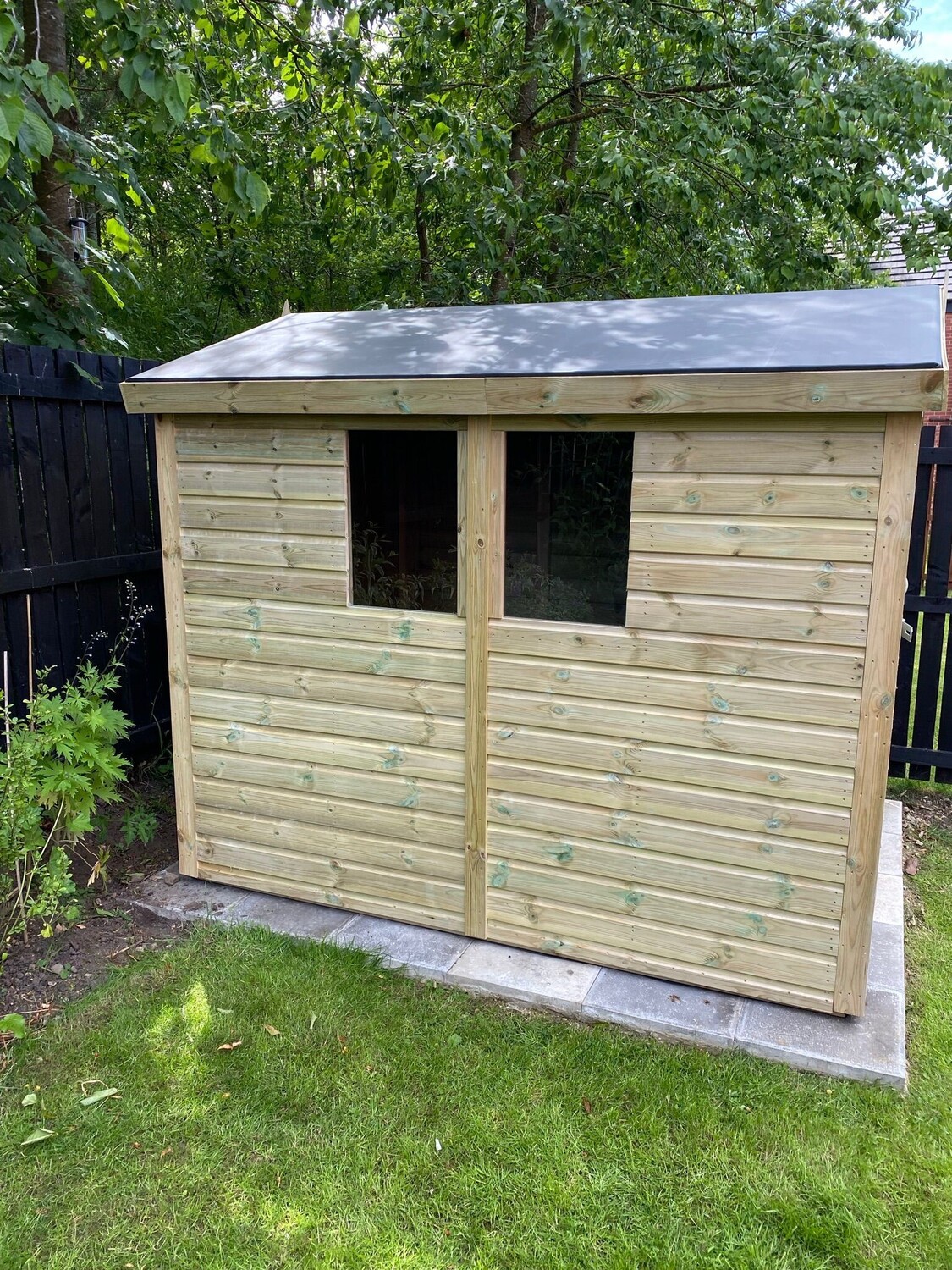 The shed has a 2ft 6" wide 6ft high single door and 2 windows.