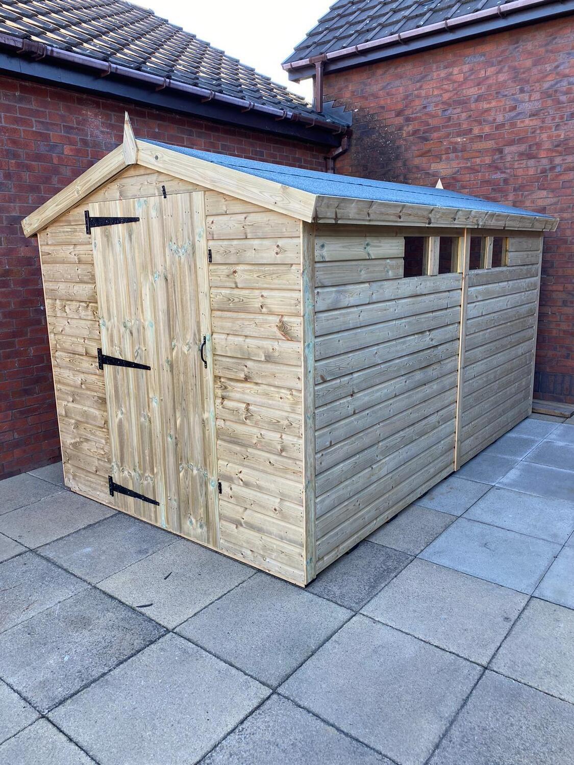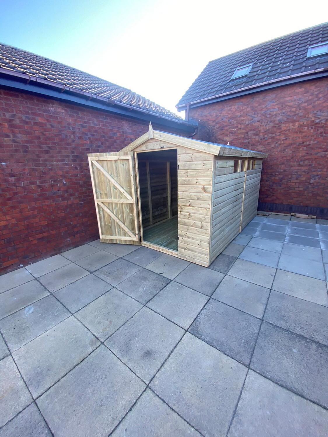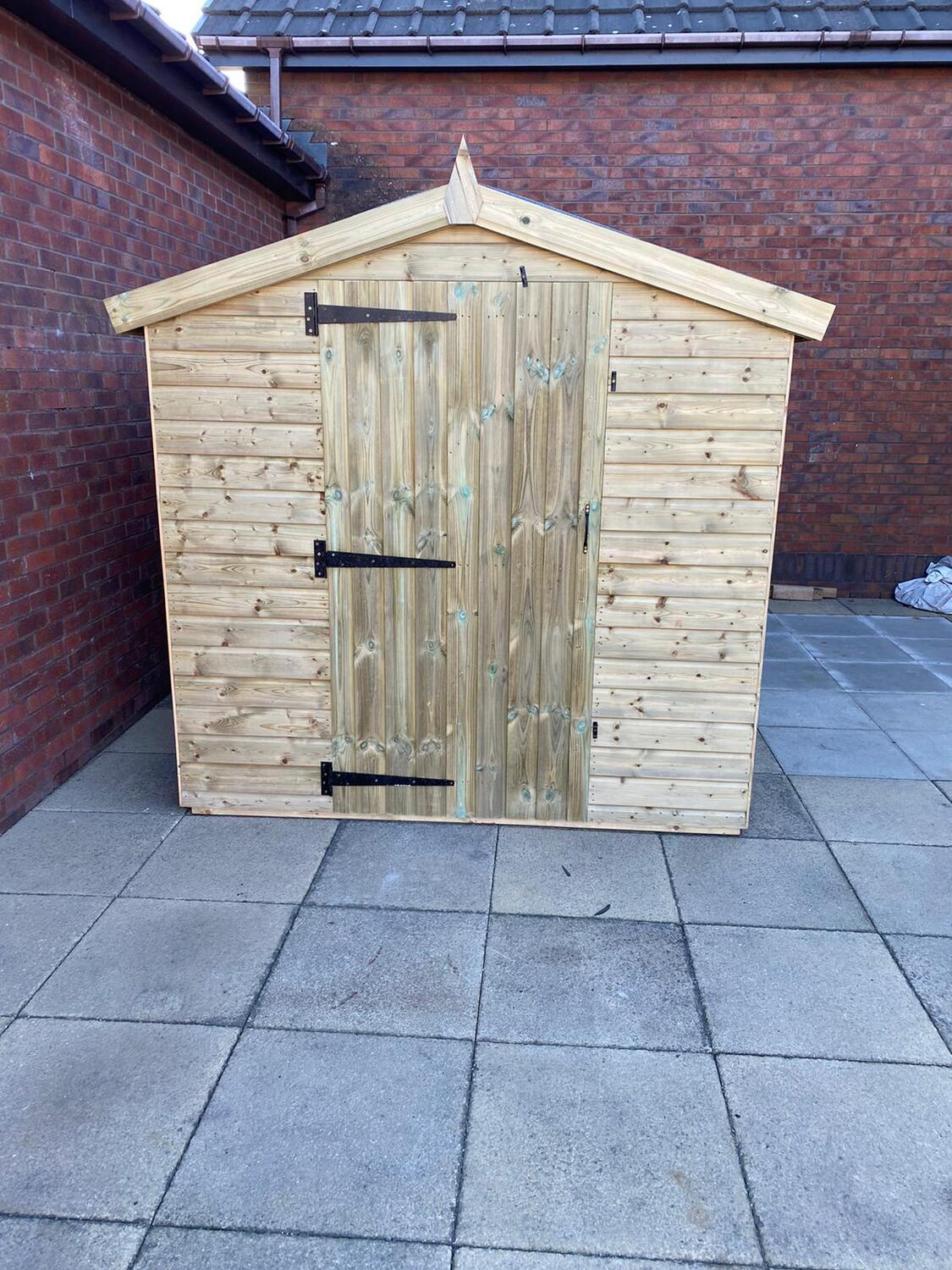 12x8 apex roofed shed in our tanalised 19mm T&G.