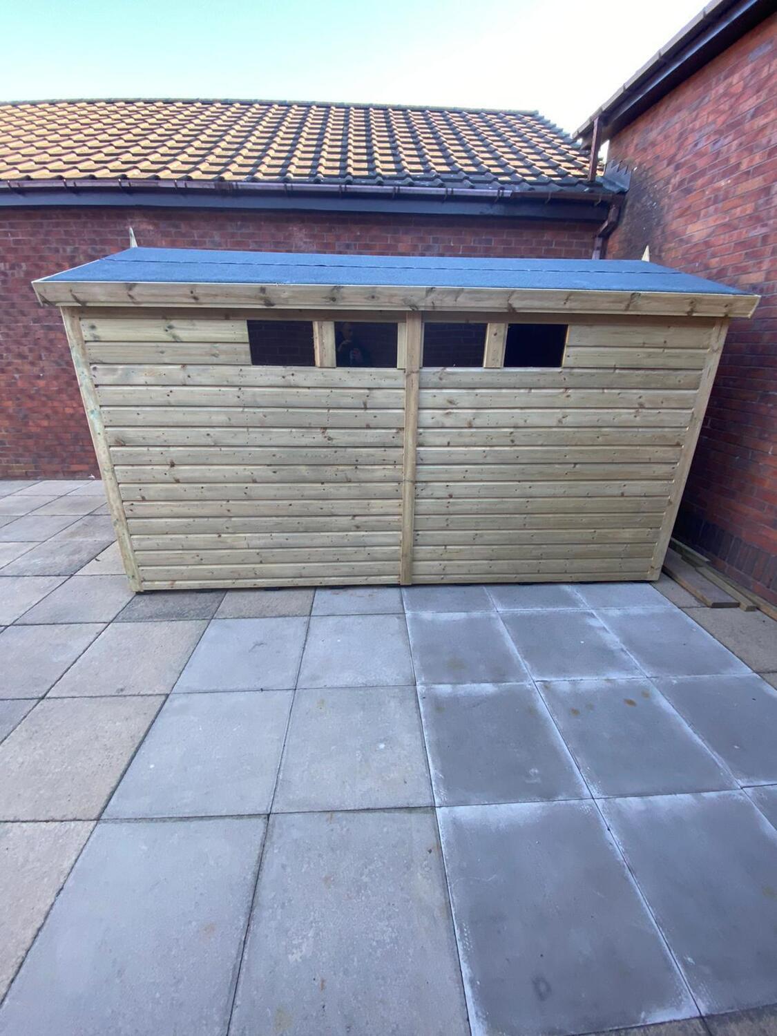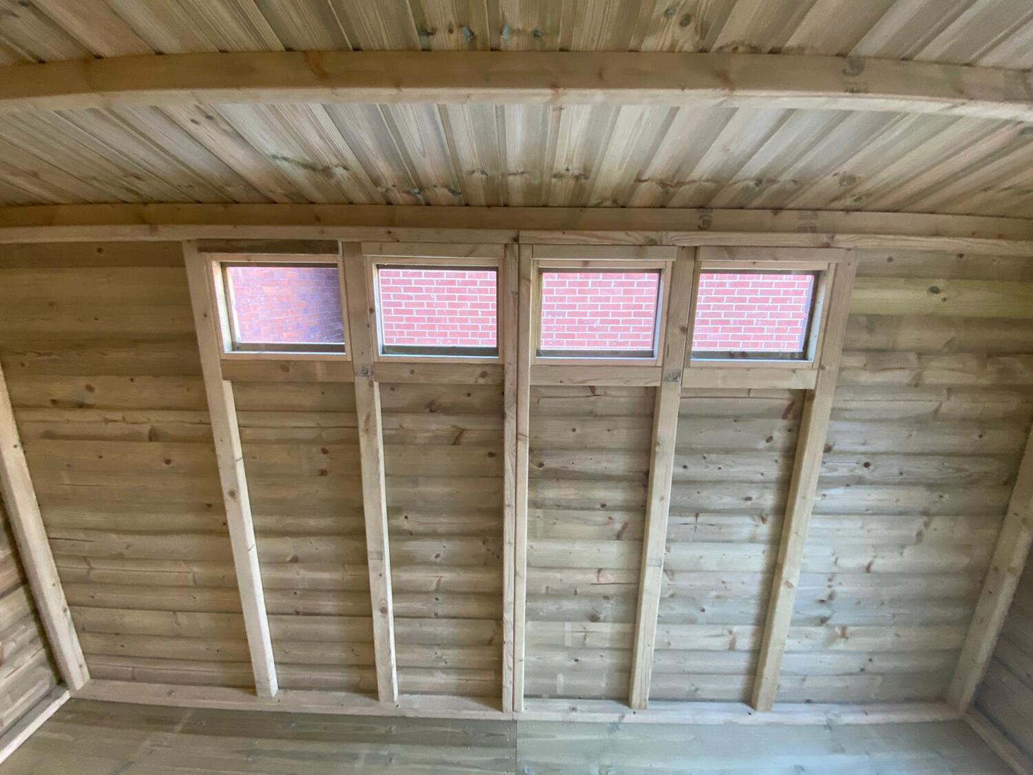 The shed has a 4ft wide 6ft high double door and 4 security windows.