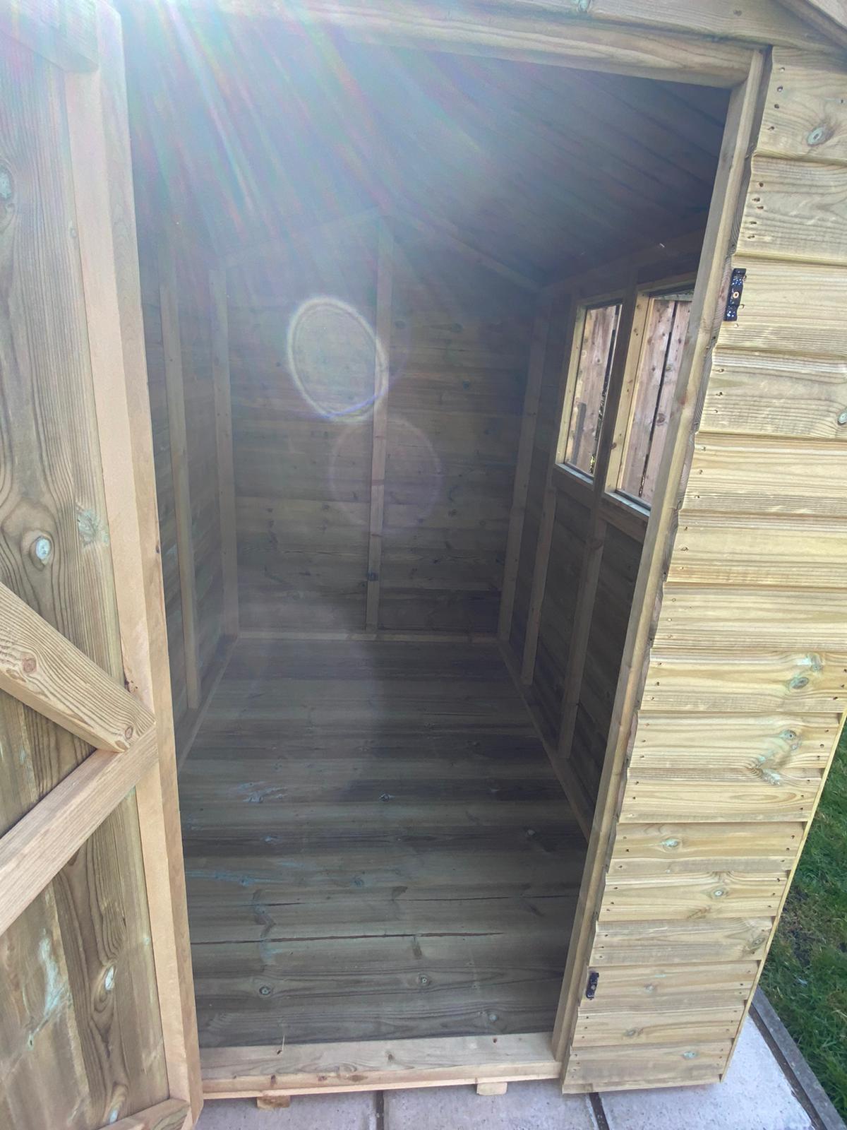 The shed is 5ft wide at the front where the door is and 7ft deep.