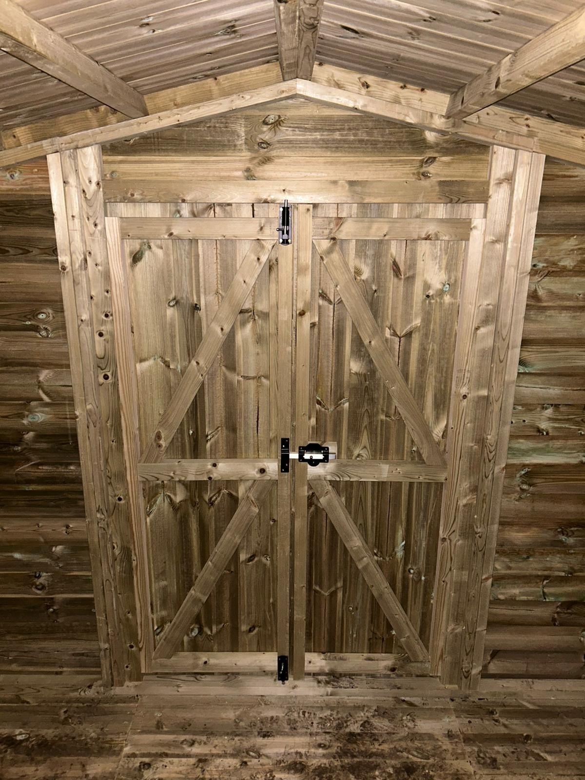 The shed has a 4ft" wide 6ft high double door and no windows.