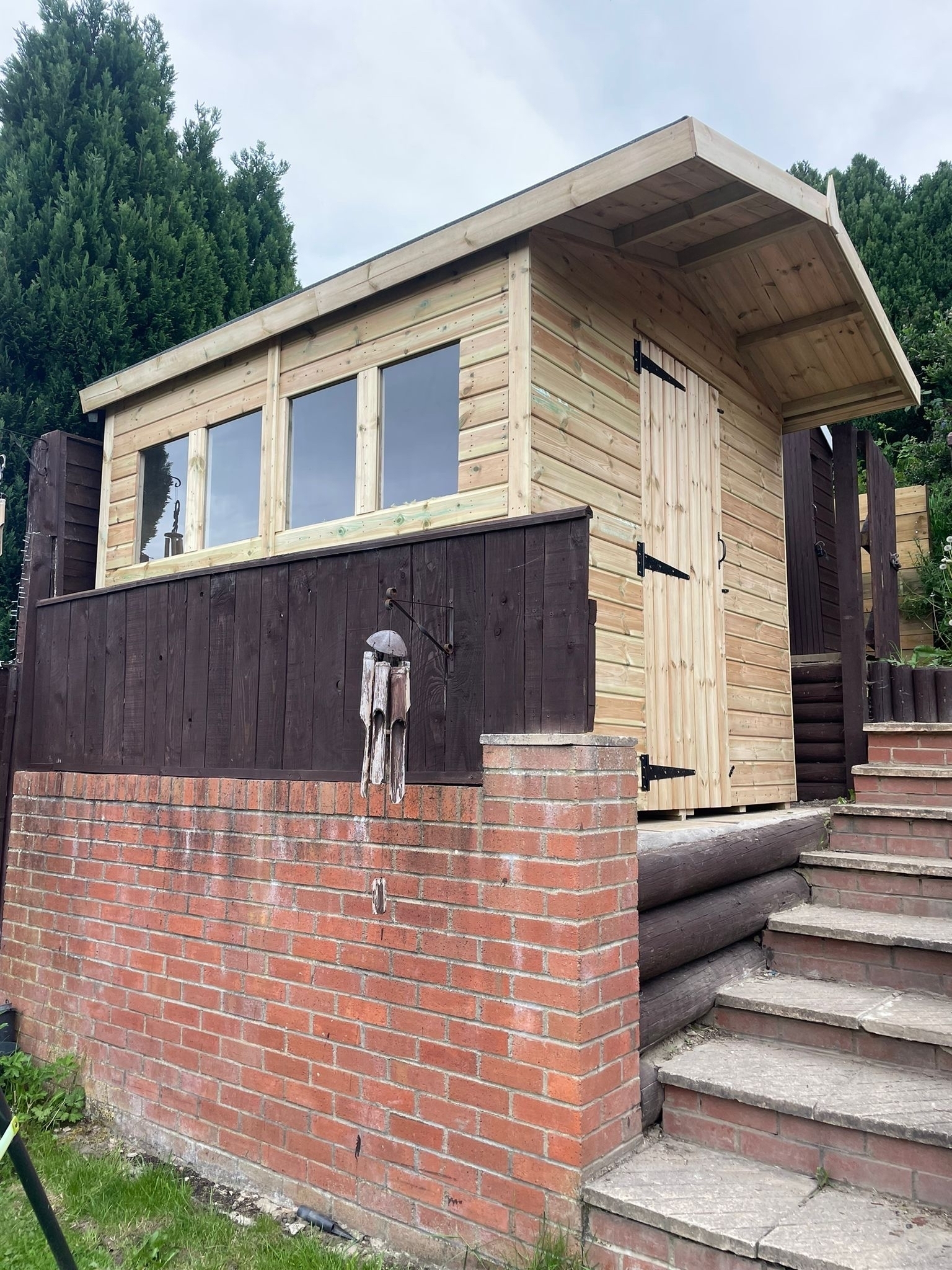 The shed has a 2ft canopy making the roof 11ft.