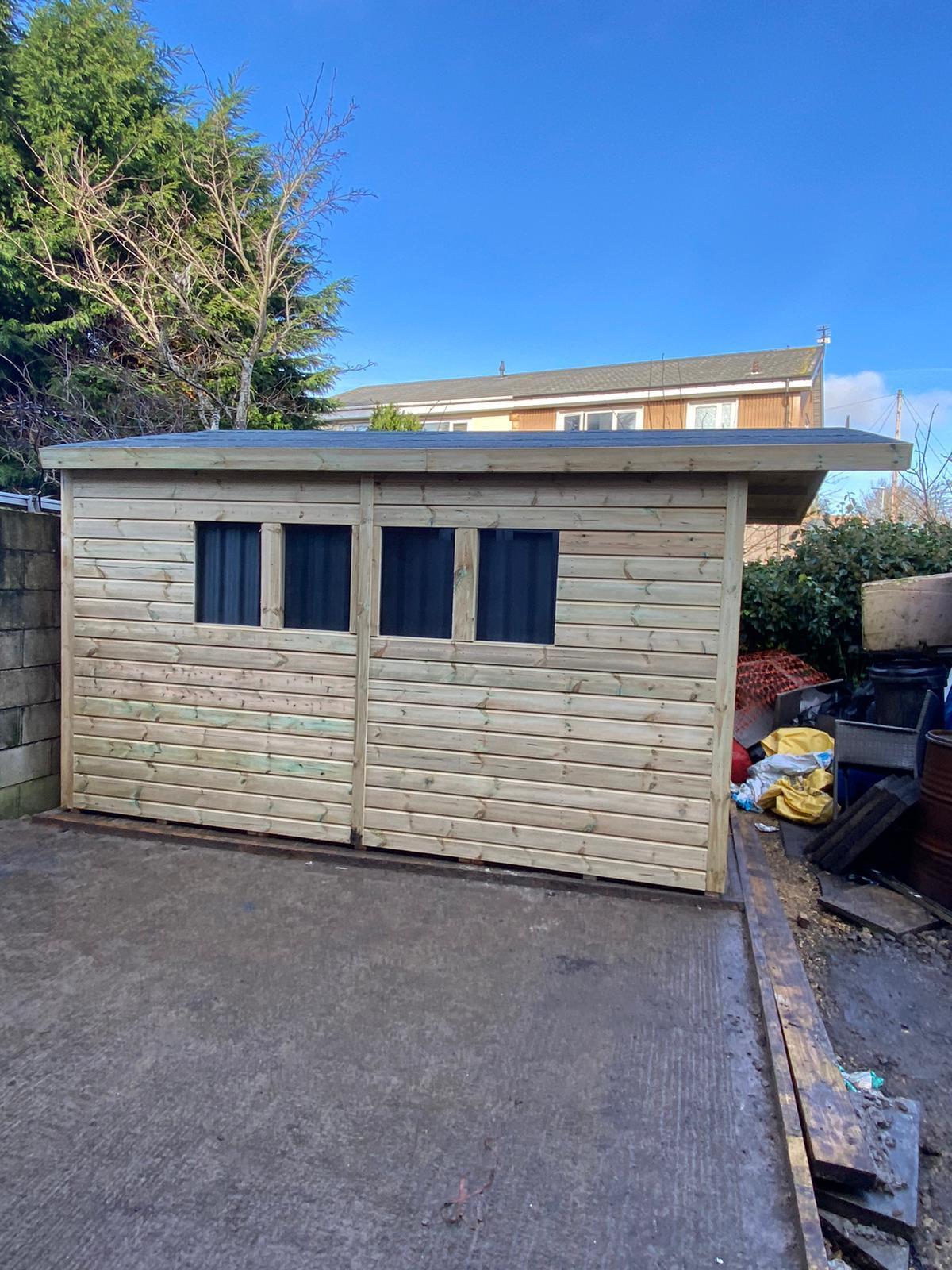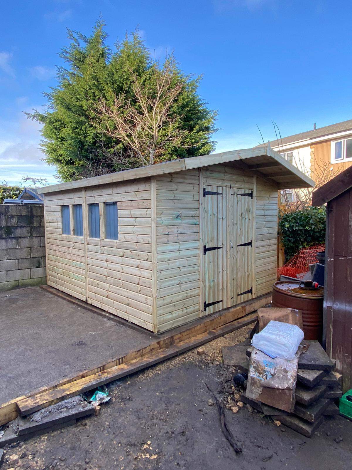The shed has a 4ft wide 6ft high double door and x4 windows.