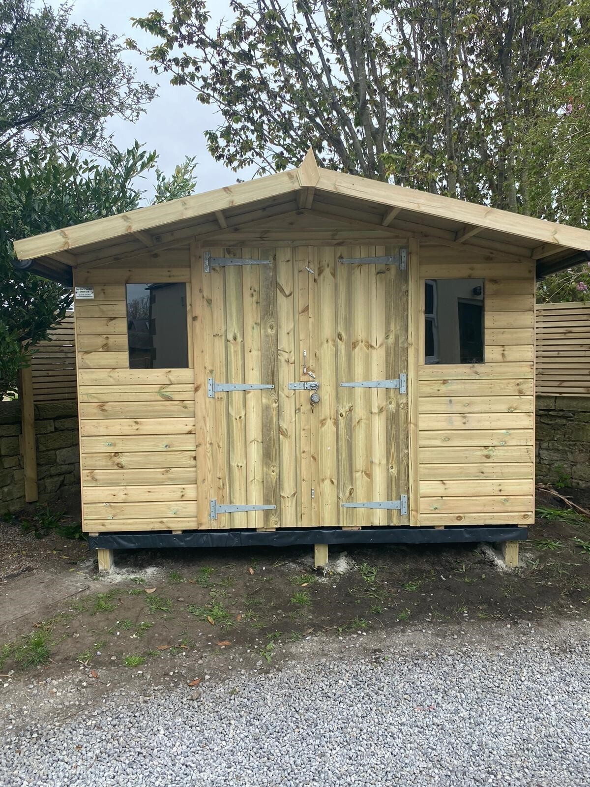 The shed has a 4ft wide 6ft high double door and 2 windows.