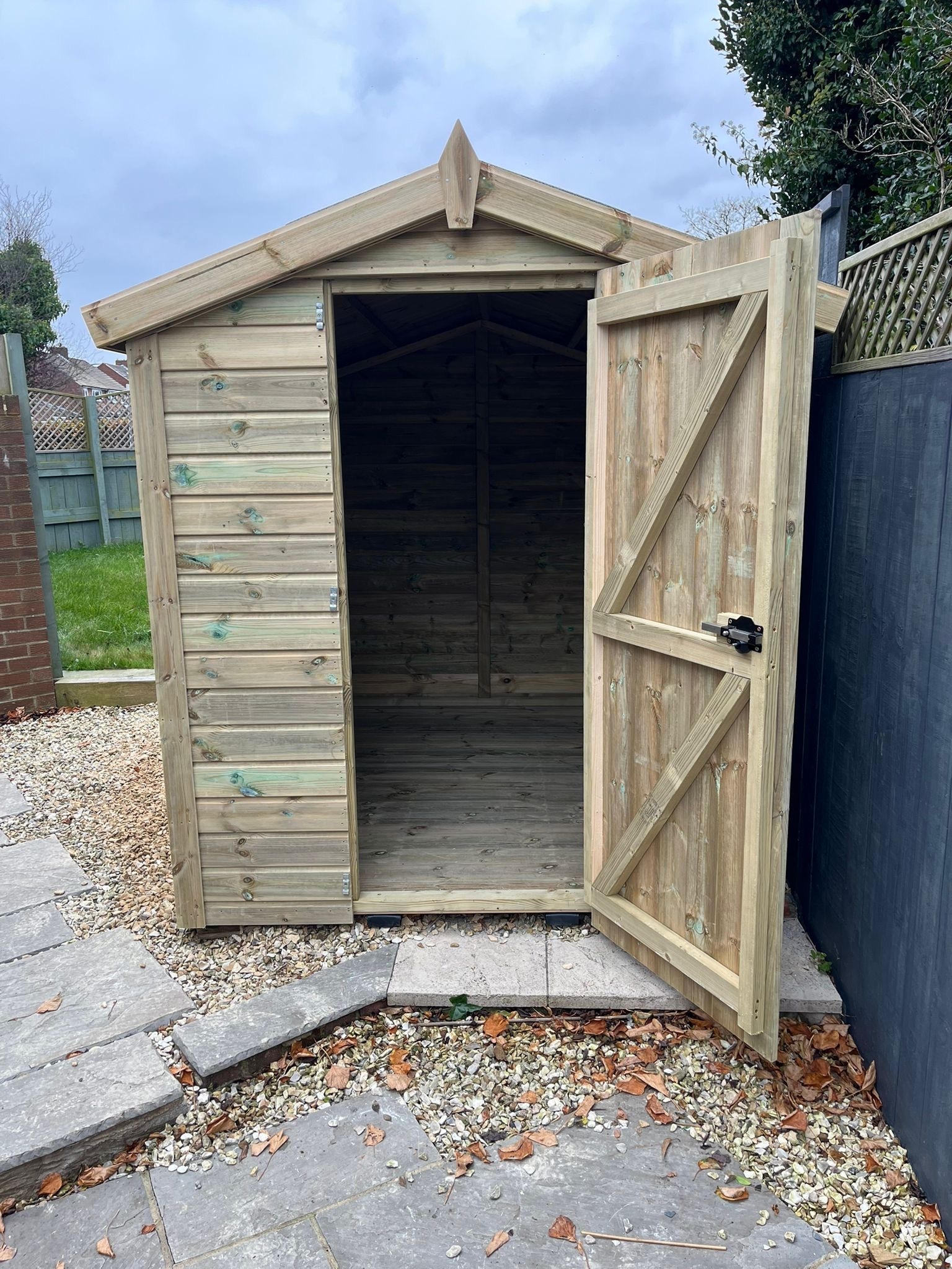 5x5 apex roofed shed in our tanalised 19mm T&G.