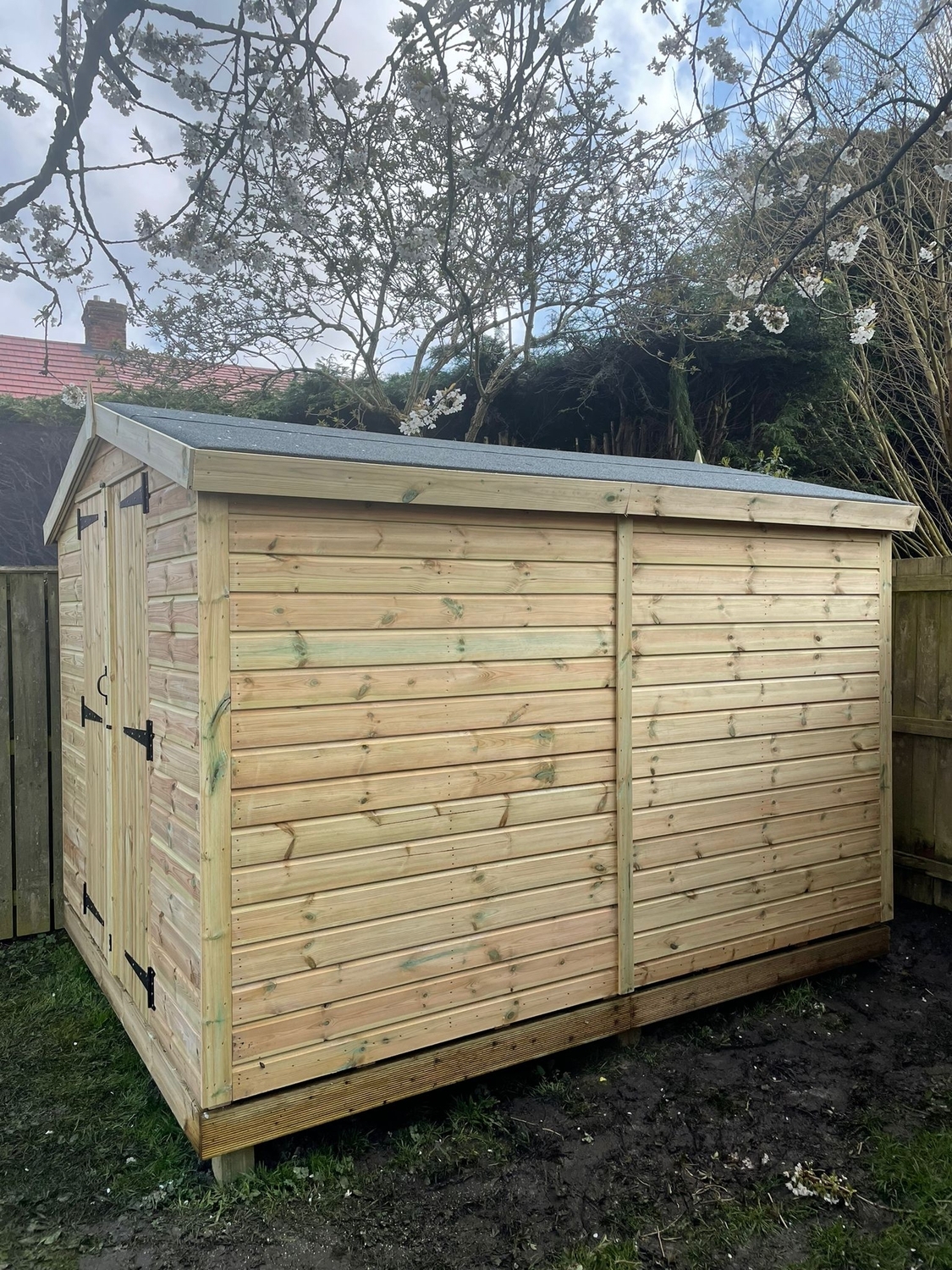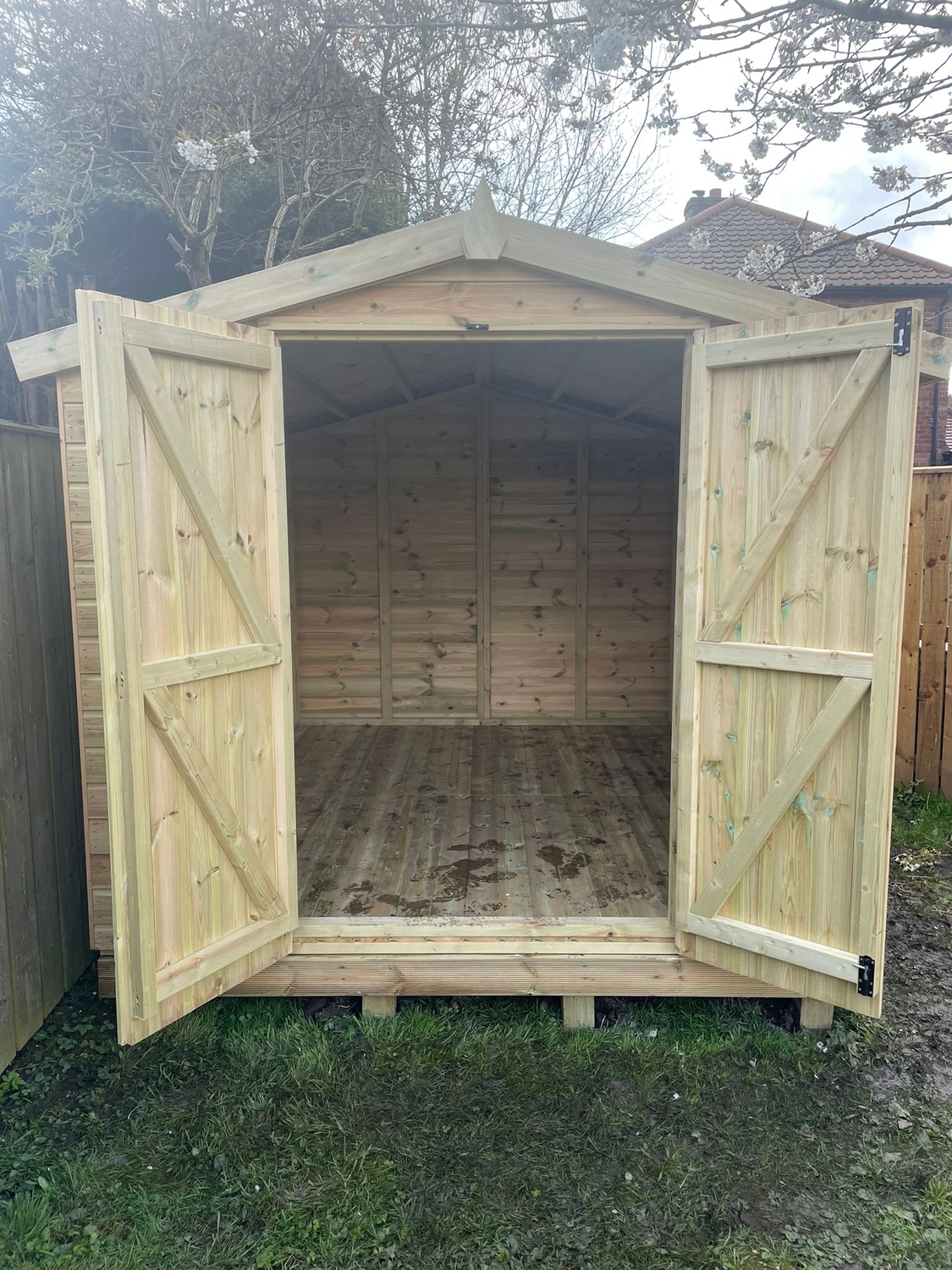 10x8 apex roofed shed in our tanalised 19mm T&G.