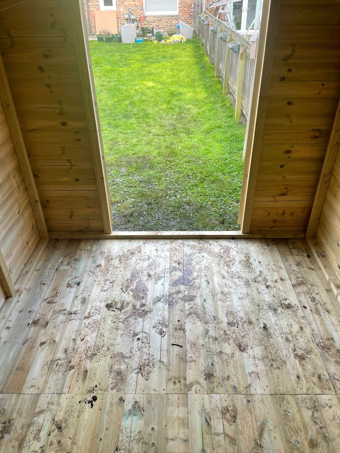 The shed is 8ft wide at the front where the doors are and 10ft deep.