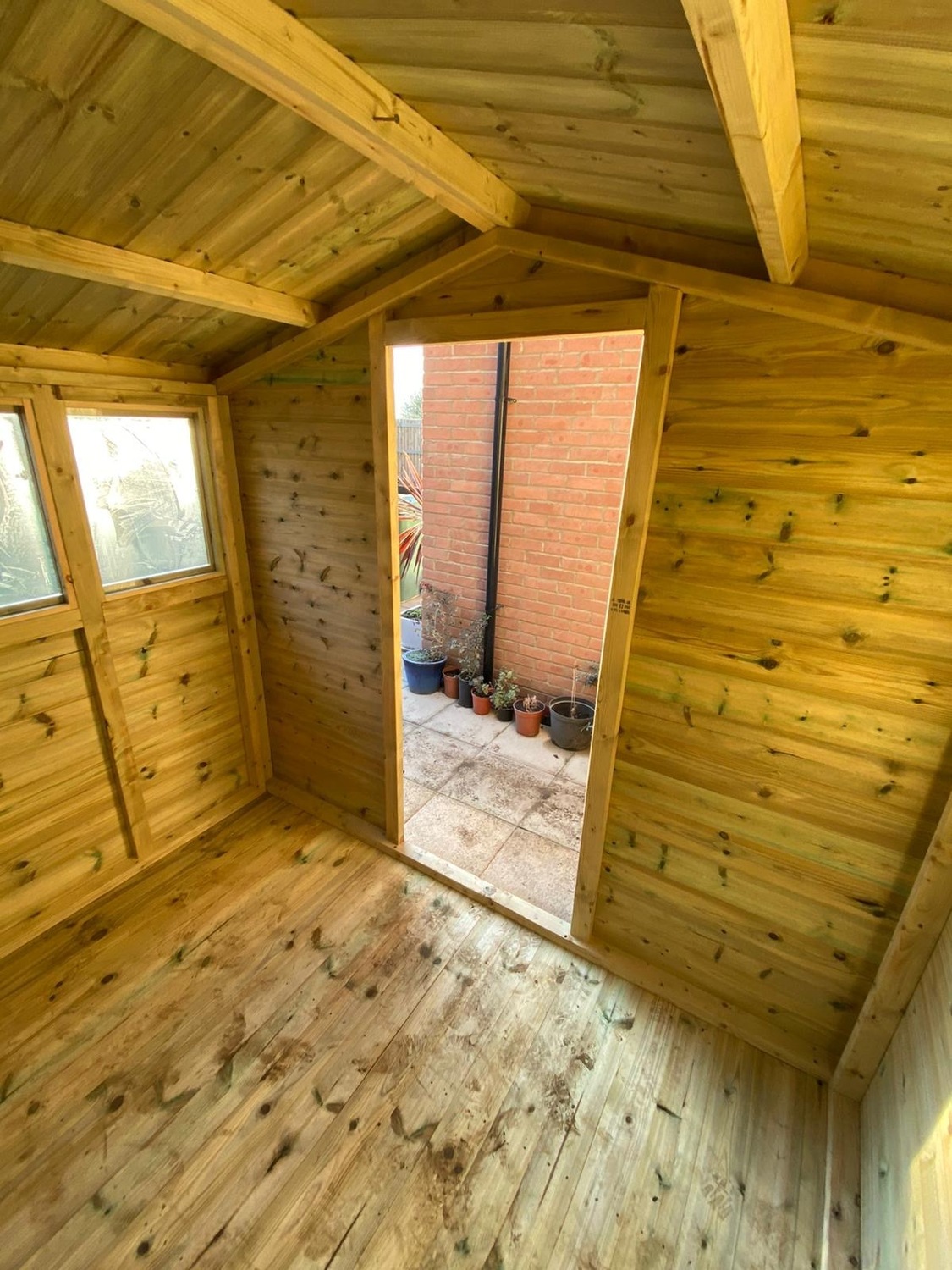 The shed is 8ft wide at the front where the door is and 6ft deep.