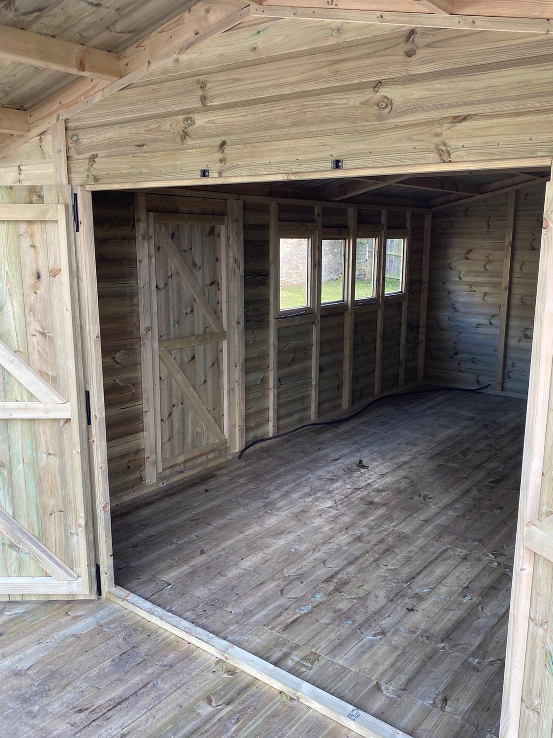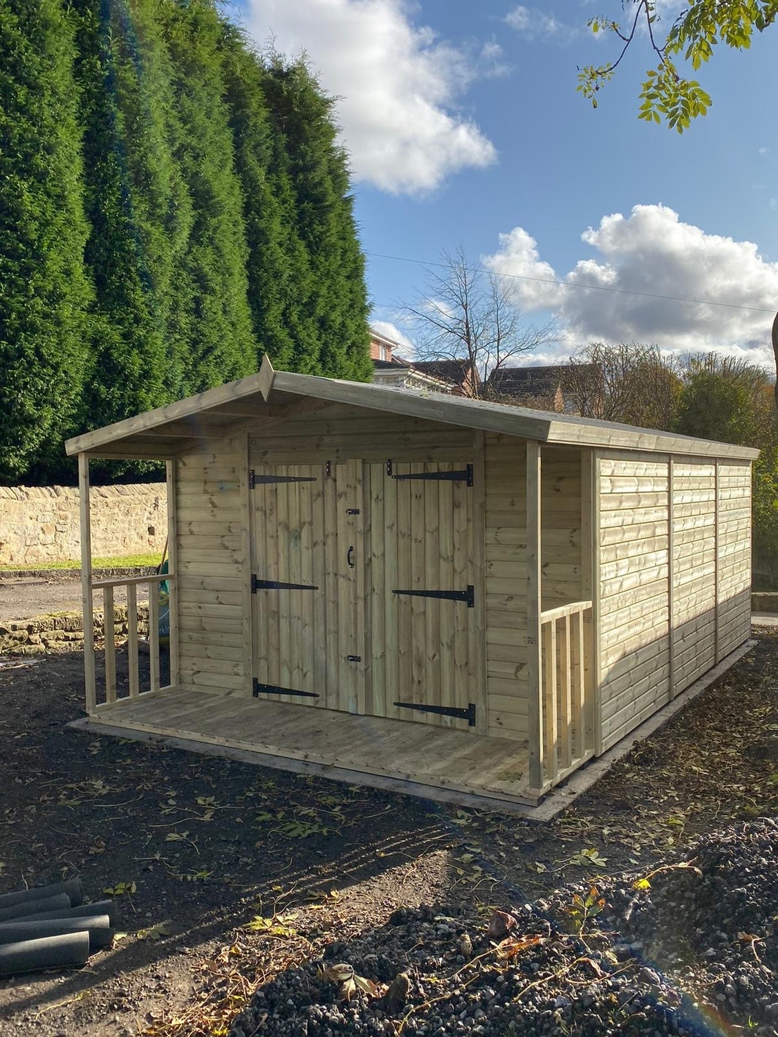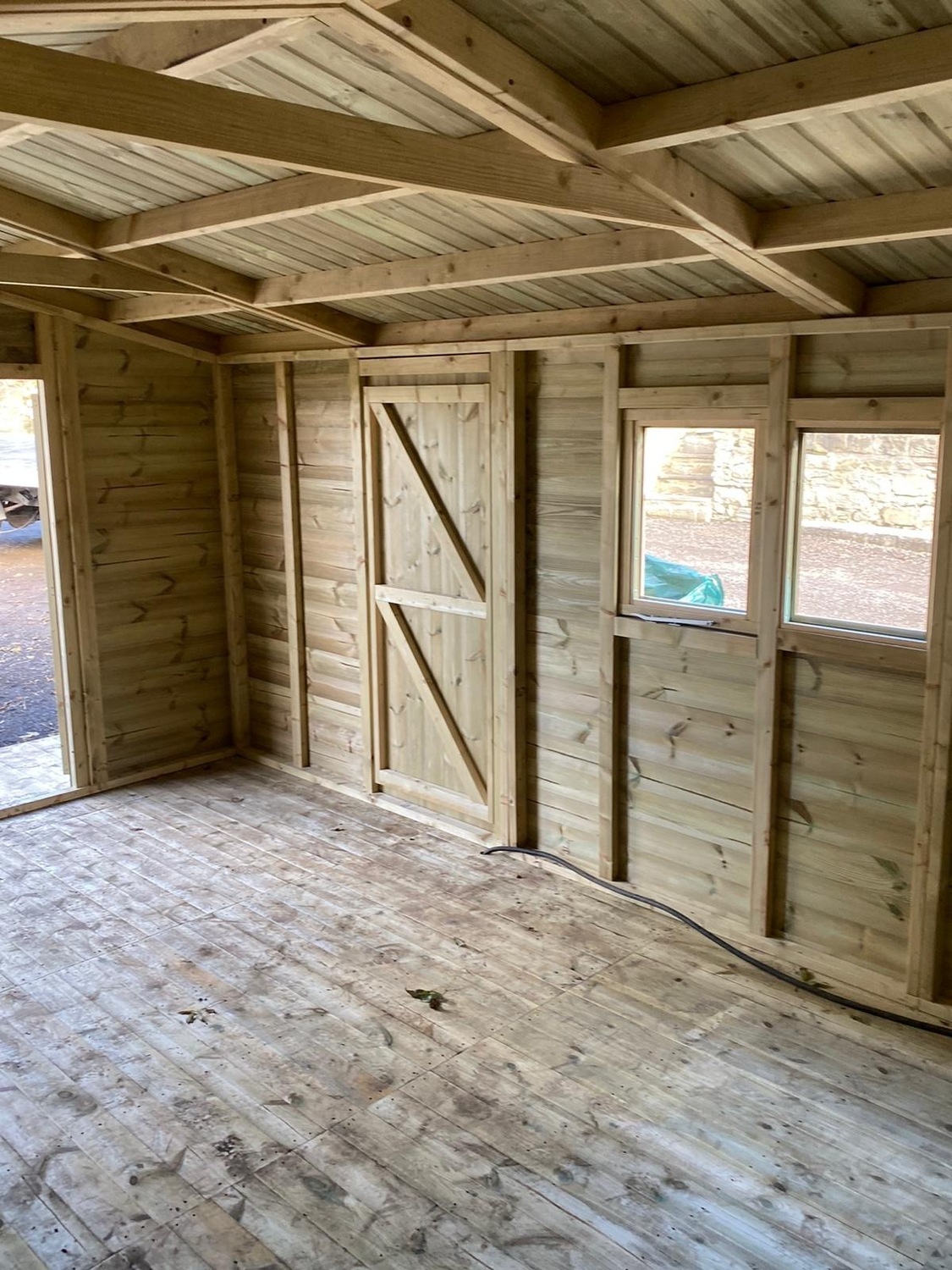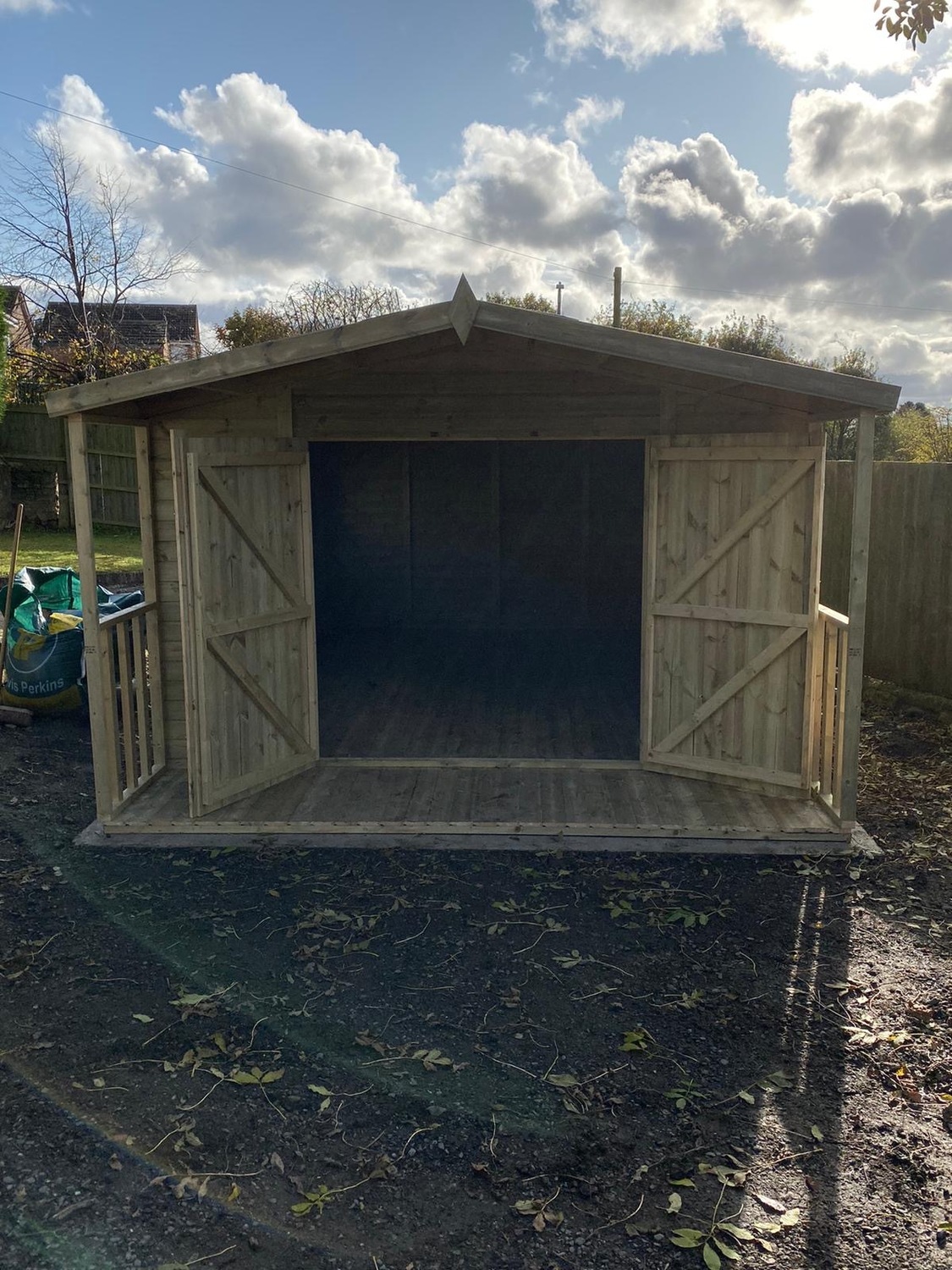 17x12 internal +3ft veranda, 6ft door, additional side door & opening windows