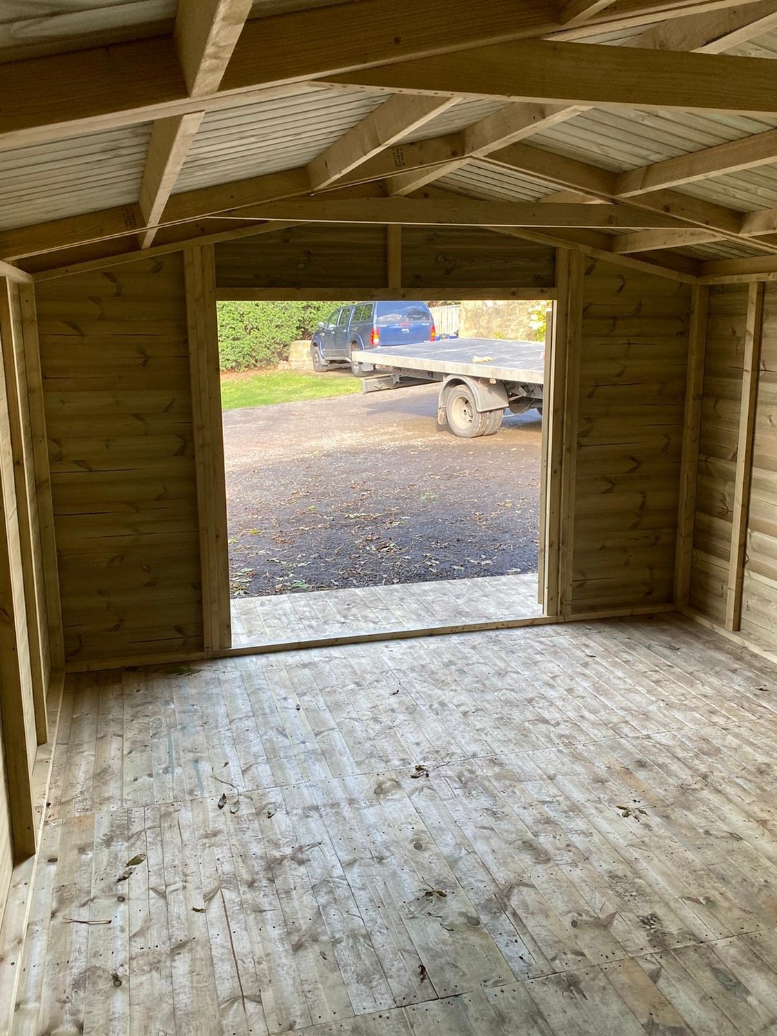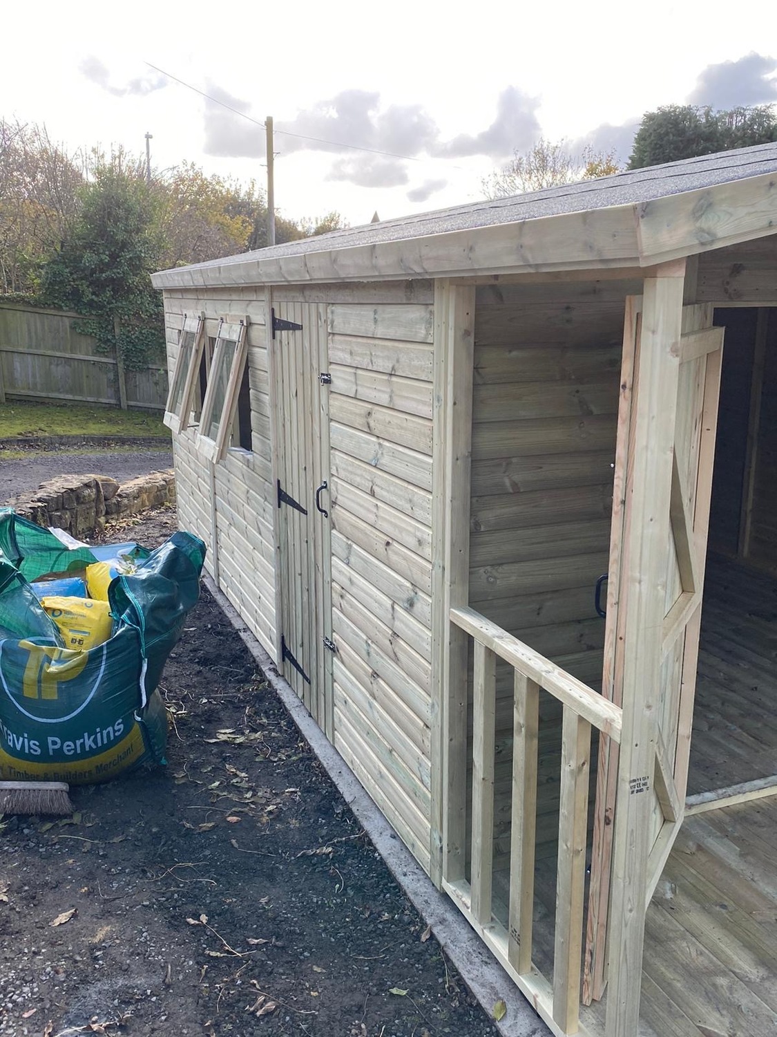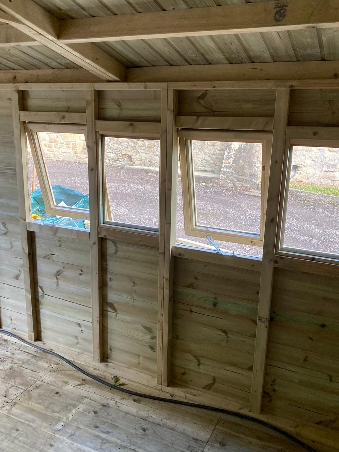 17x12 internal +3ft veranda, 6ft door, additional side door & opening windows