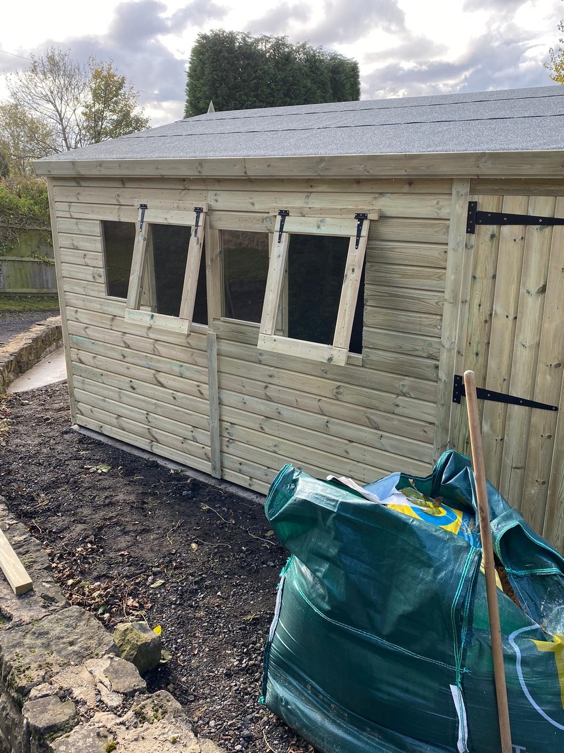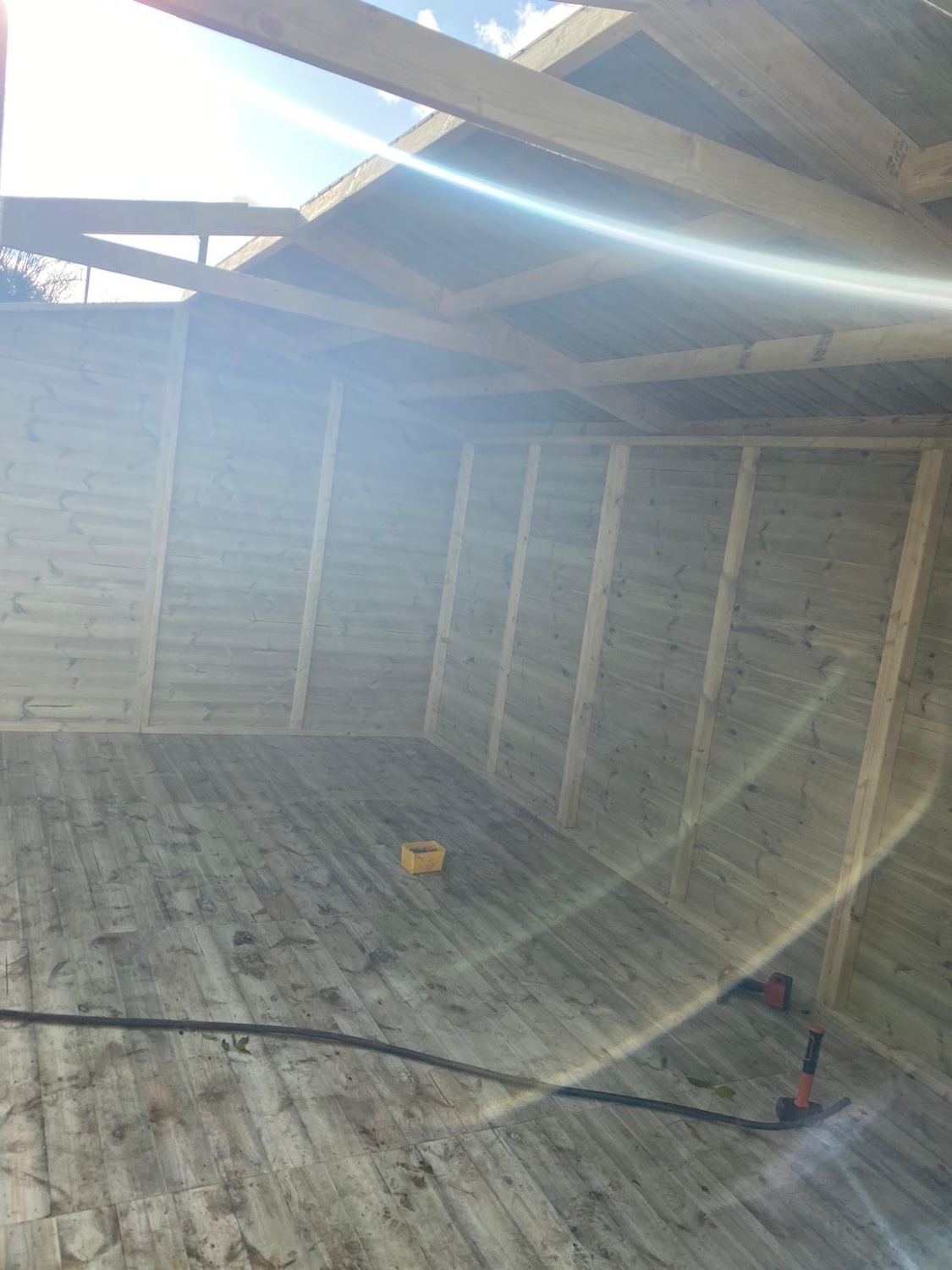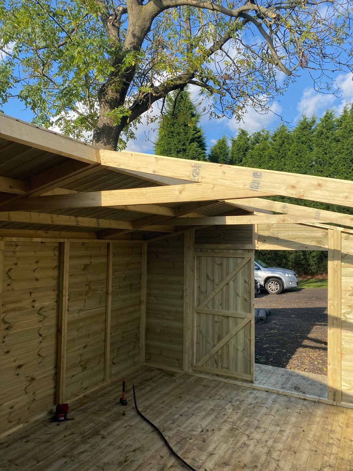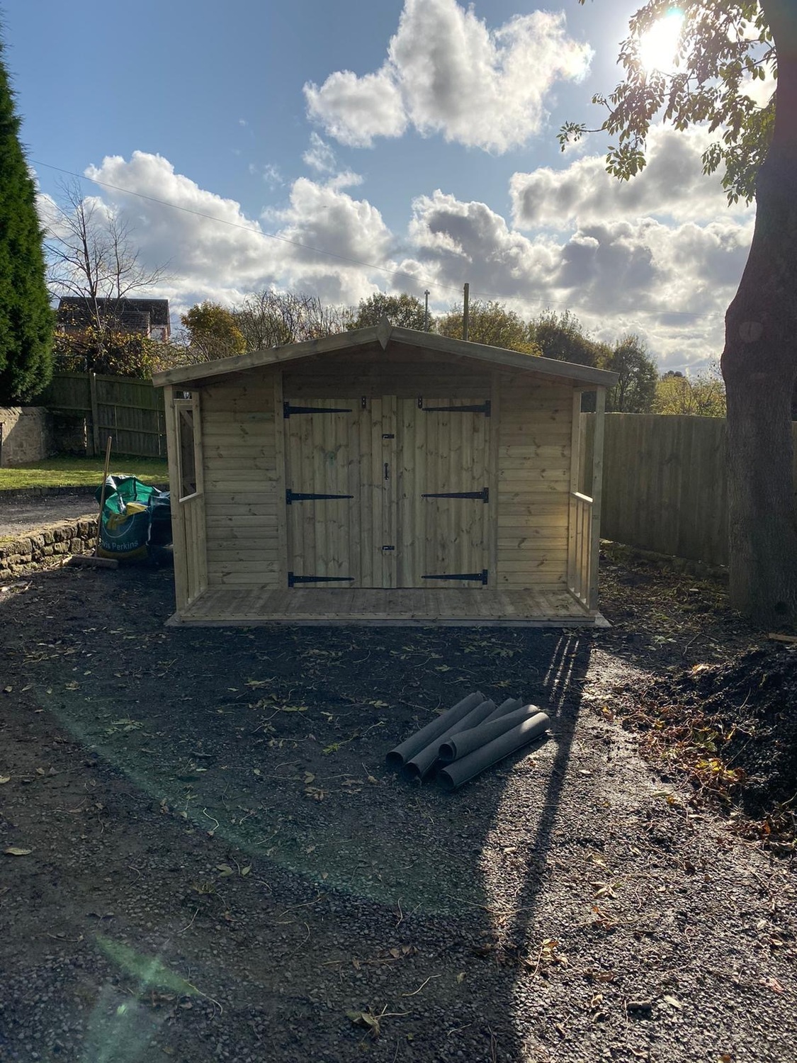 17x12 internal +3ft veranda, 6ft door, additional side door & opening windows