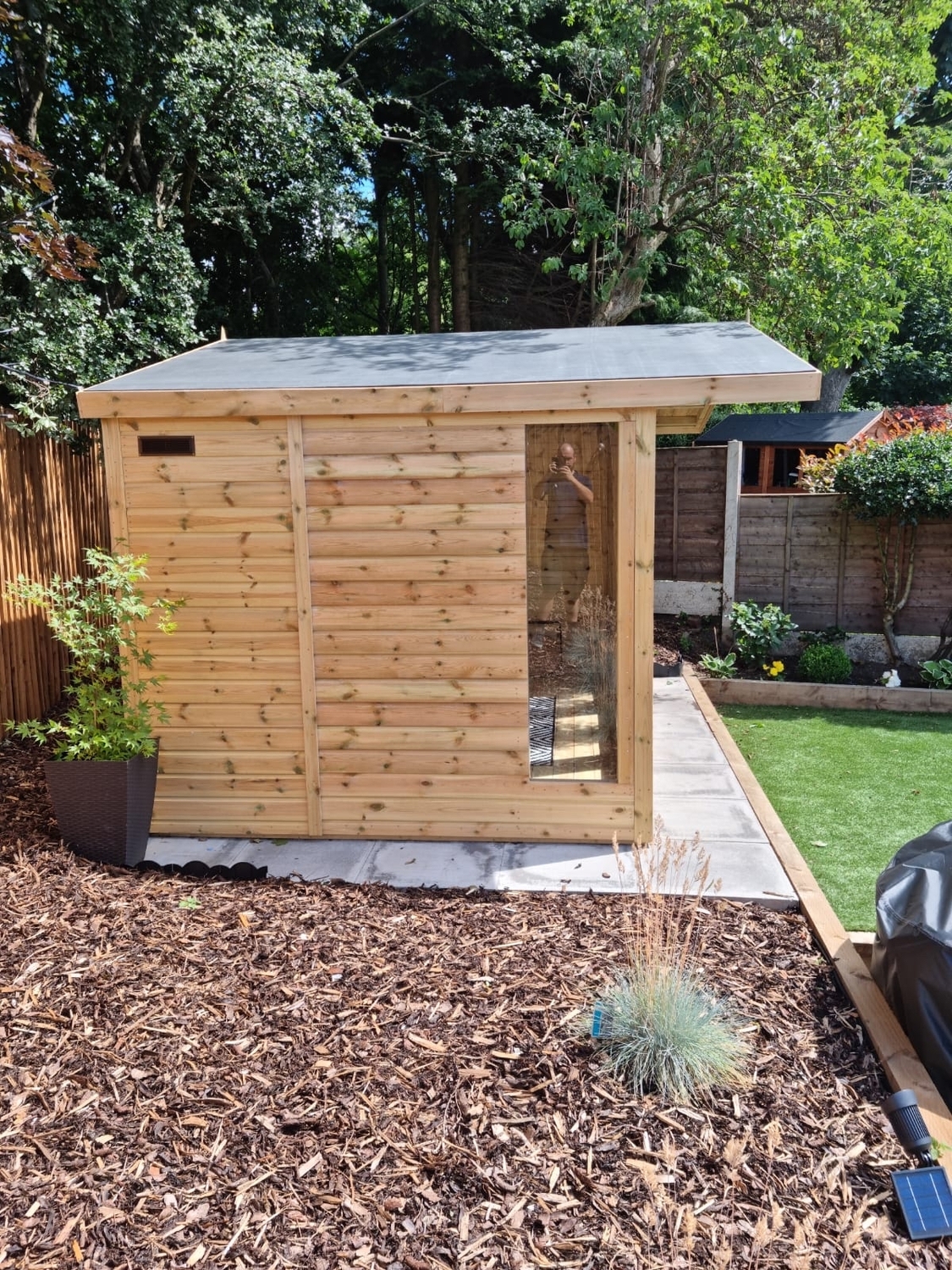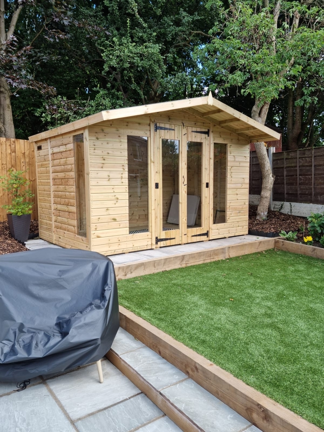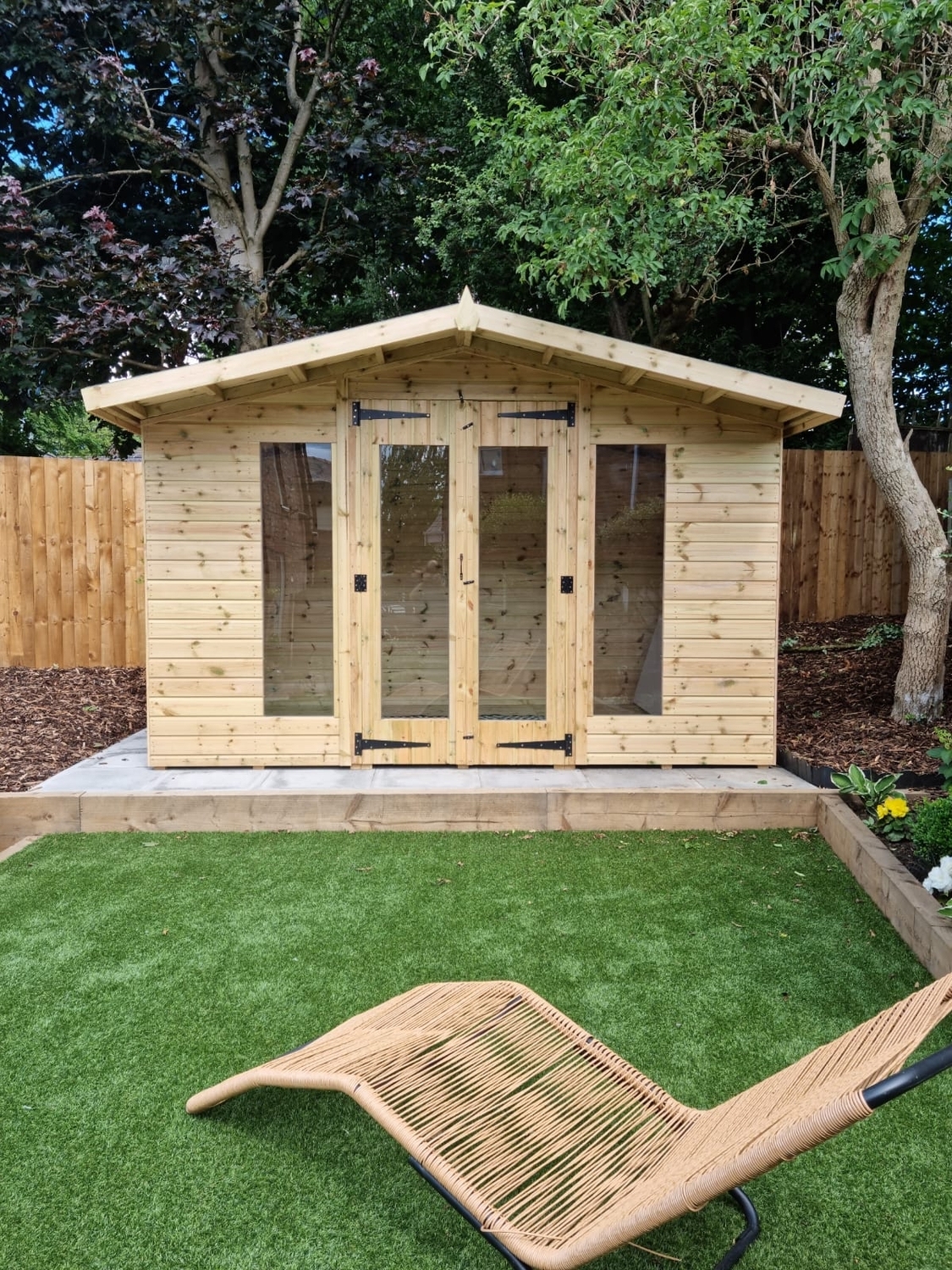 12x8 apex reverse roofed summerhouse in our tanalised 19mm T&G.