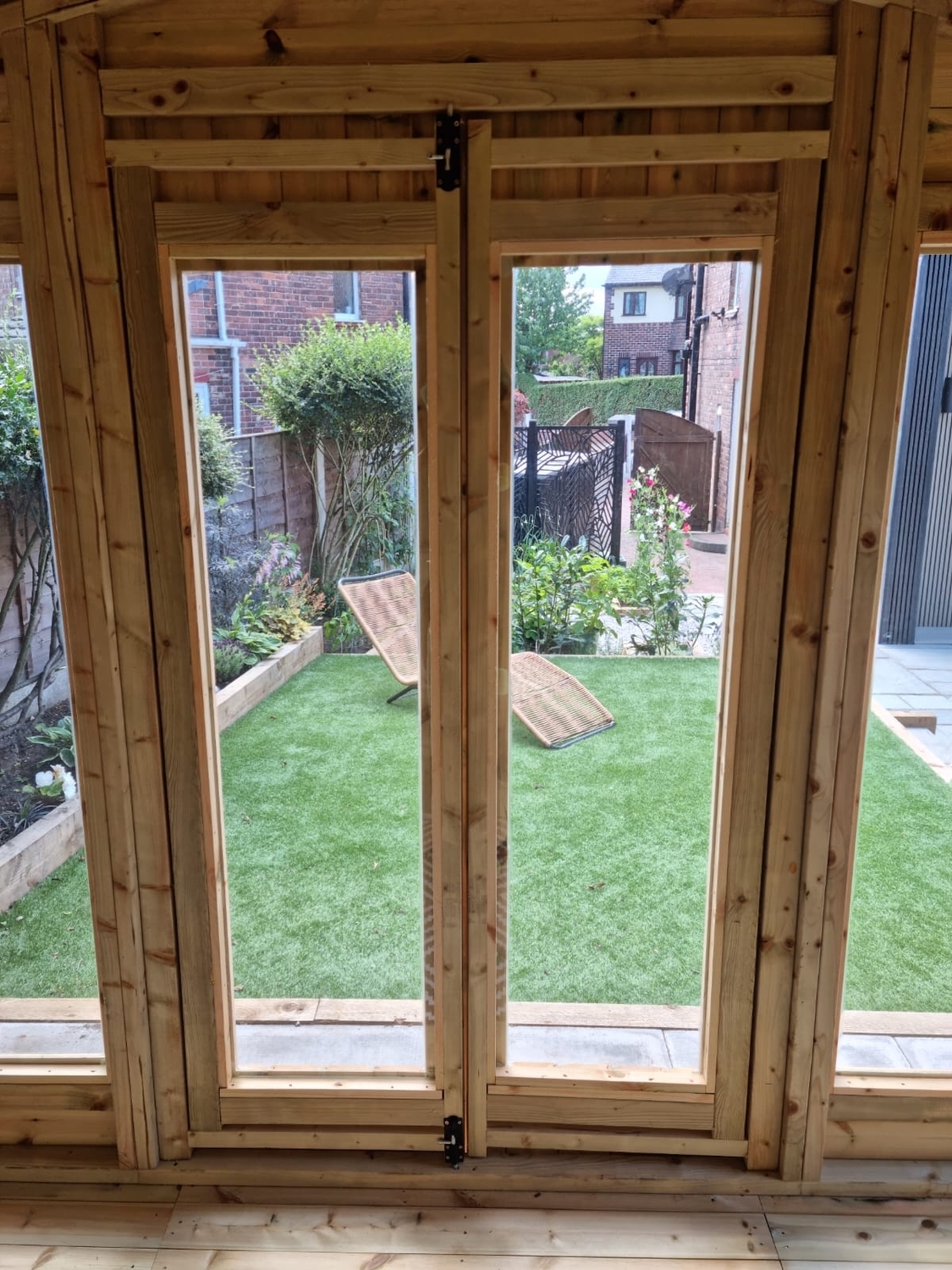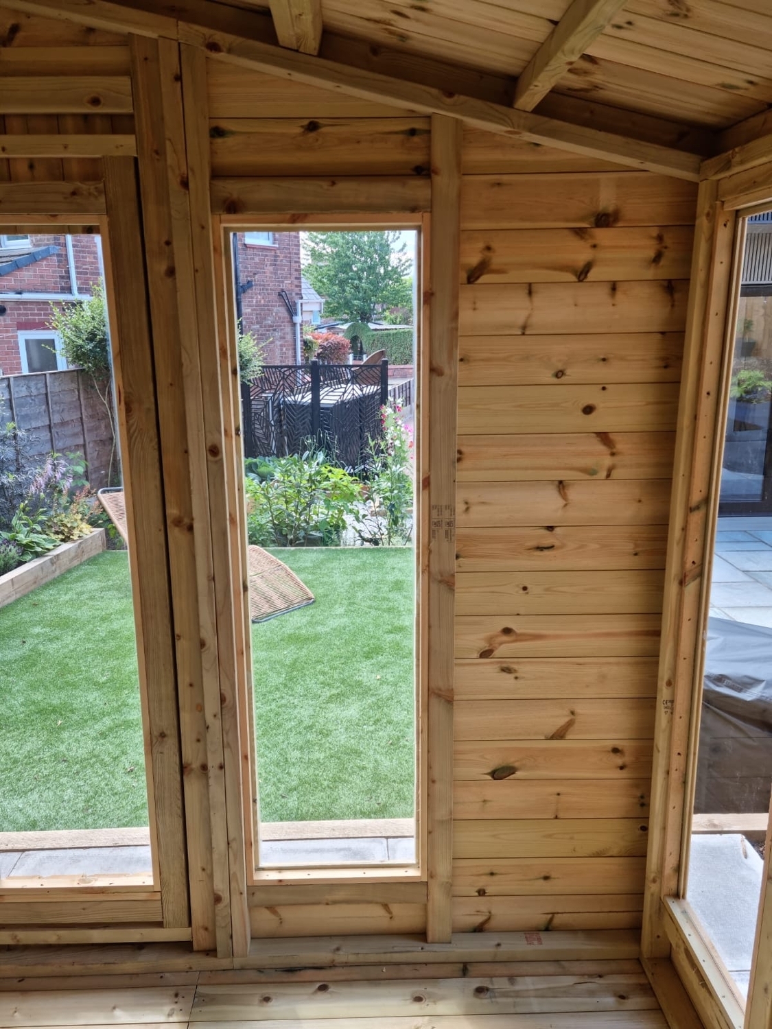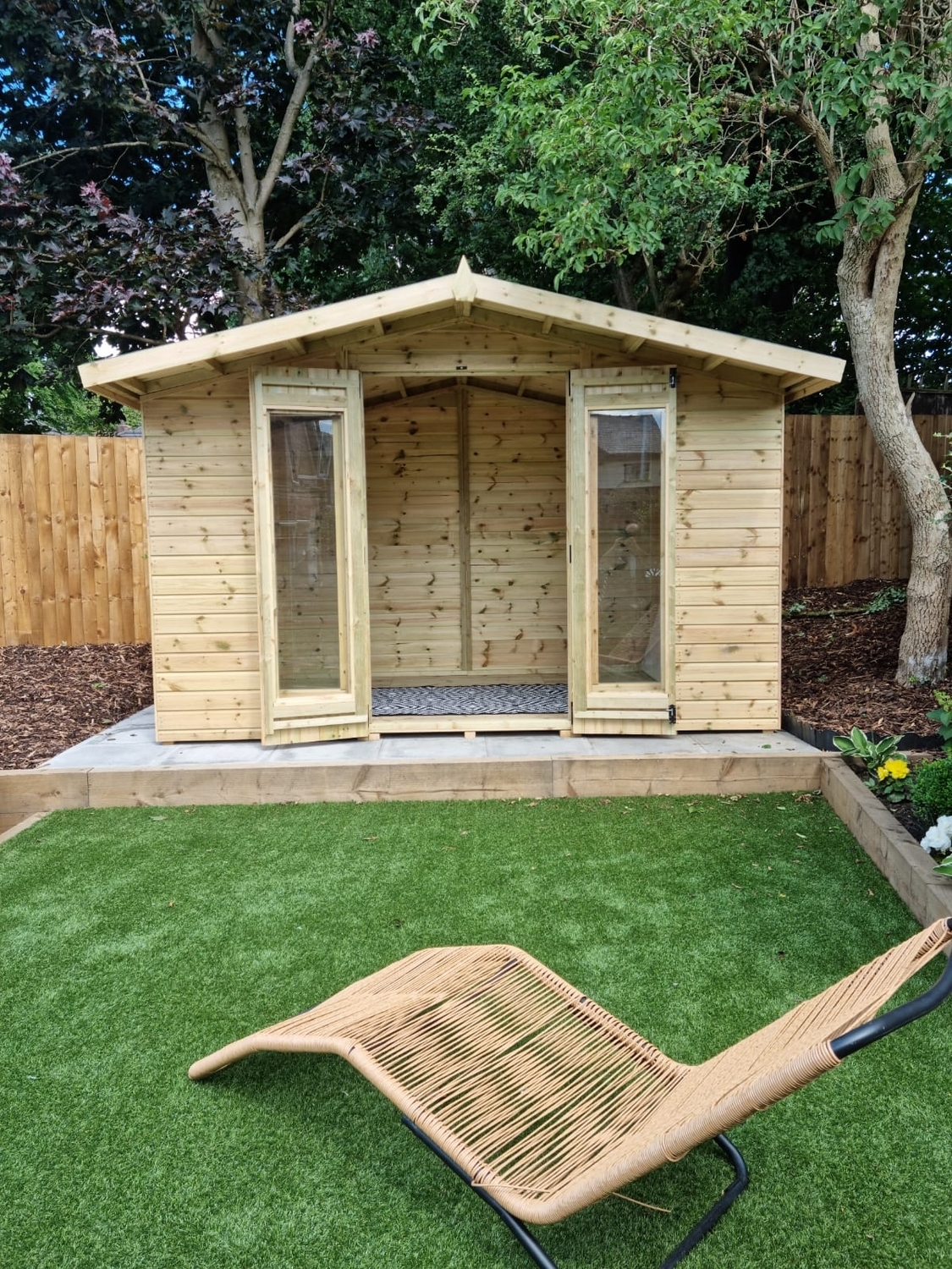 The summerhouse has 4ft wide 6ft high double door and 5 full length windows.