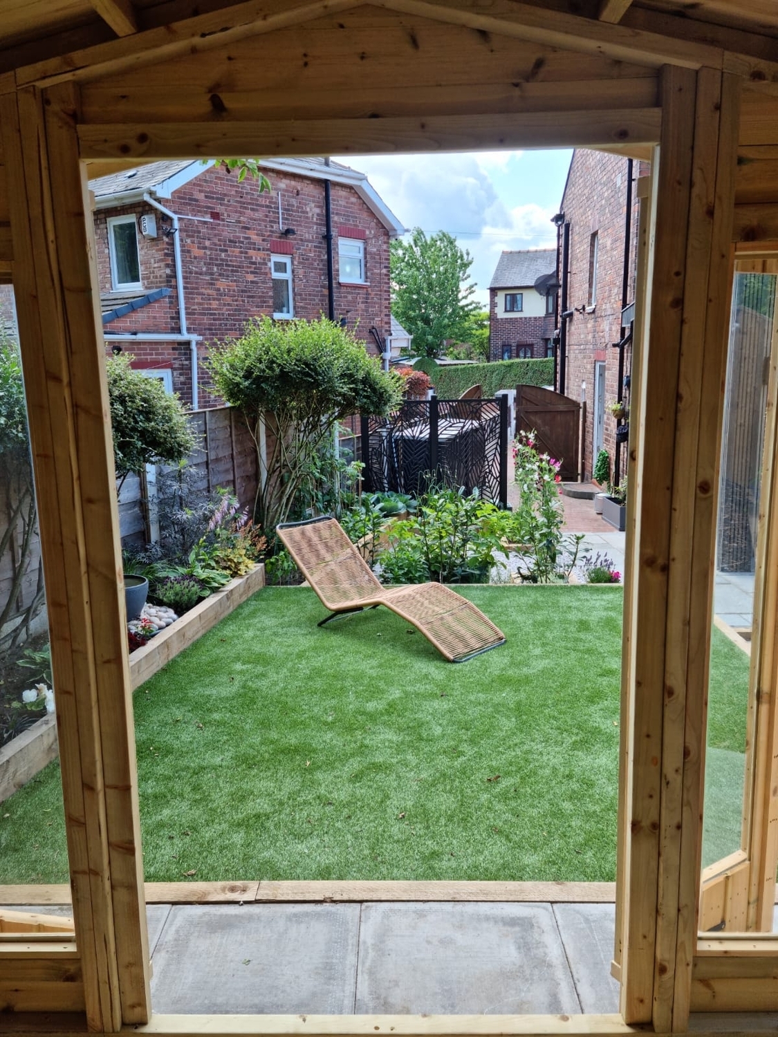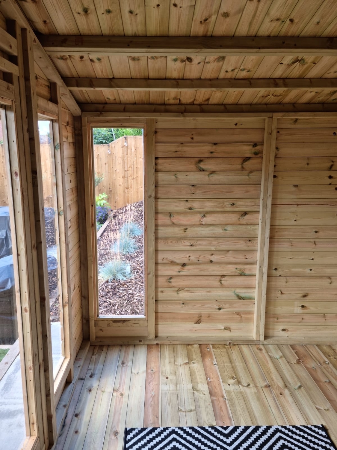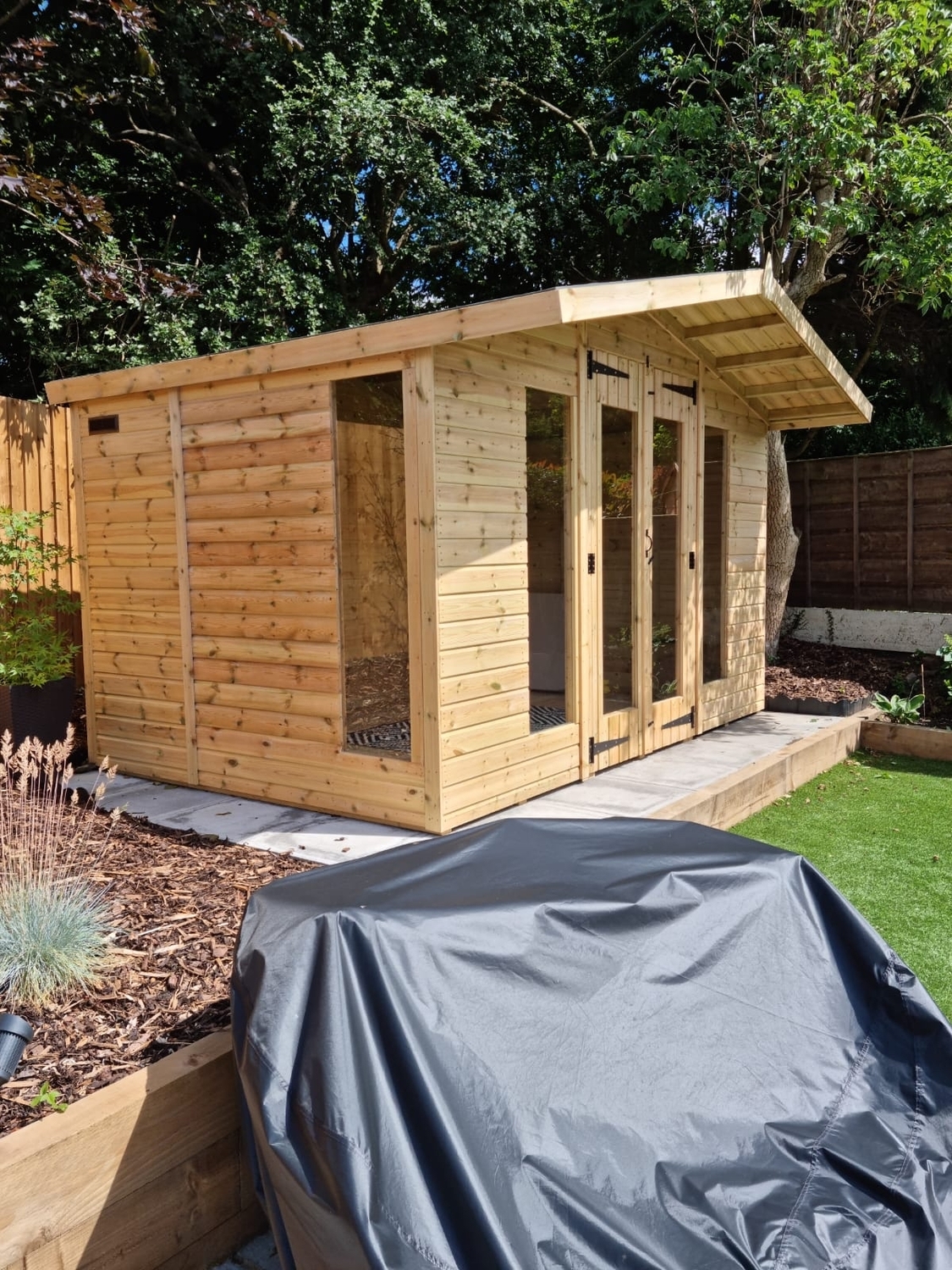 The summerhouse has 4ft wide 6ft high double door and 5 full length windows.