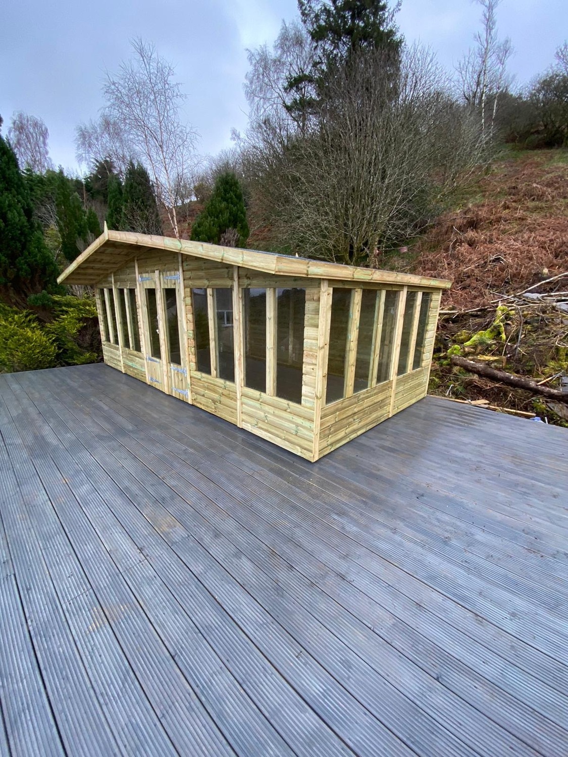 20x10 apex reverse roofed summerhouse in our tanalised 19mm T&G.