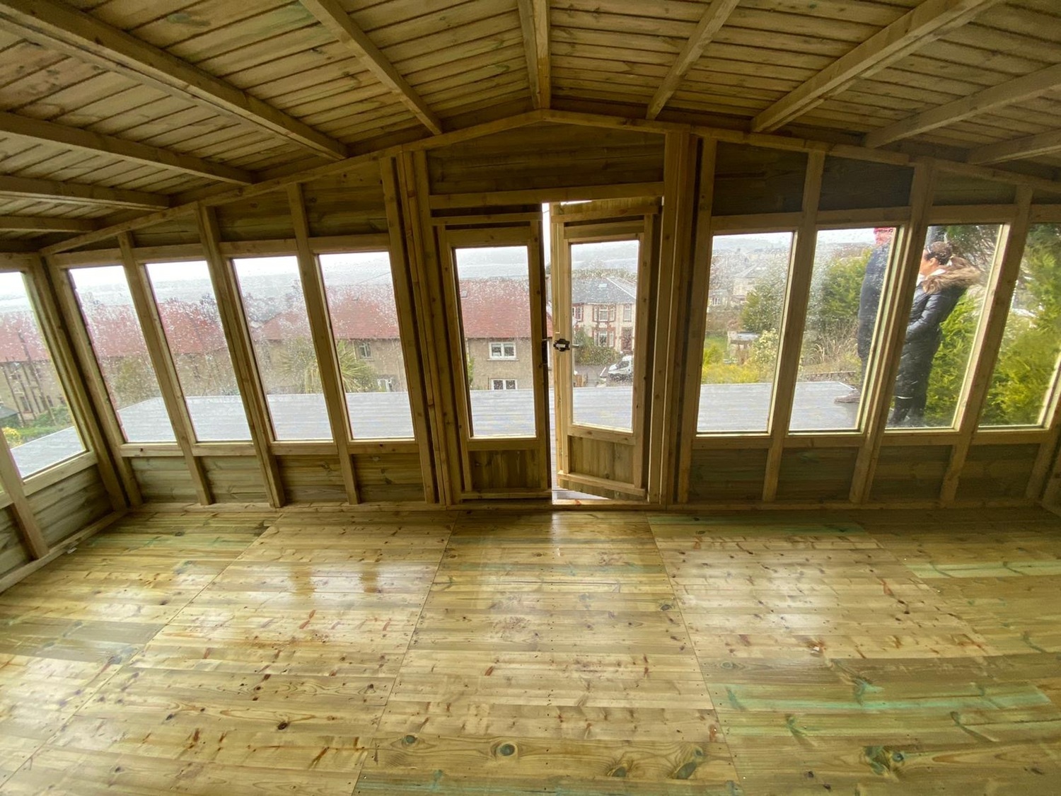 The summerhouse has 4ft wide 6ft high double door and 15 long windows.