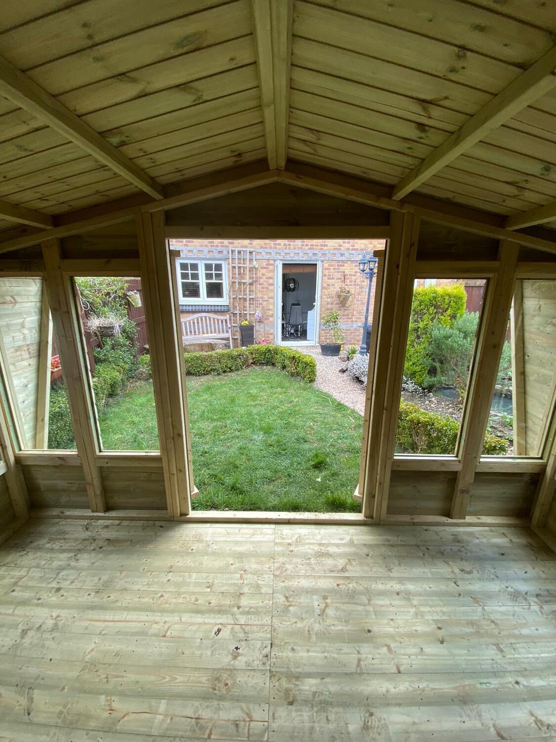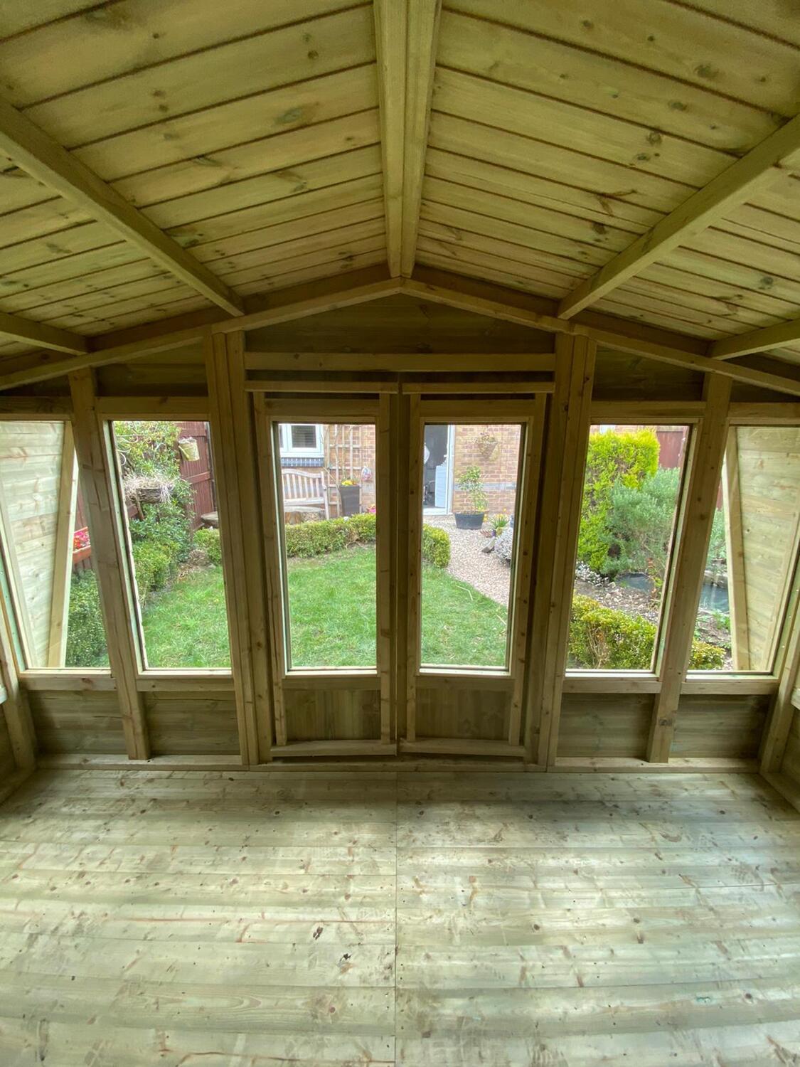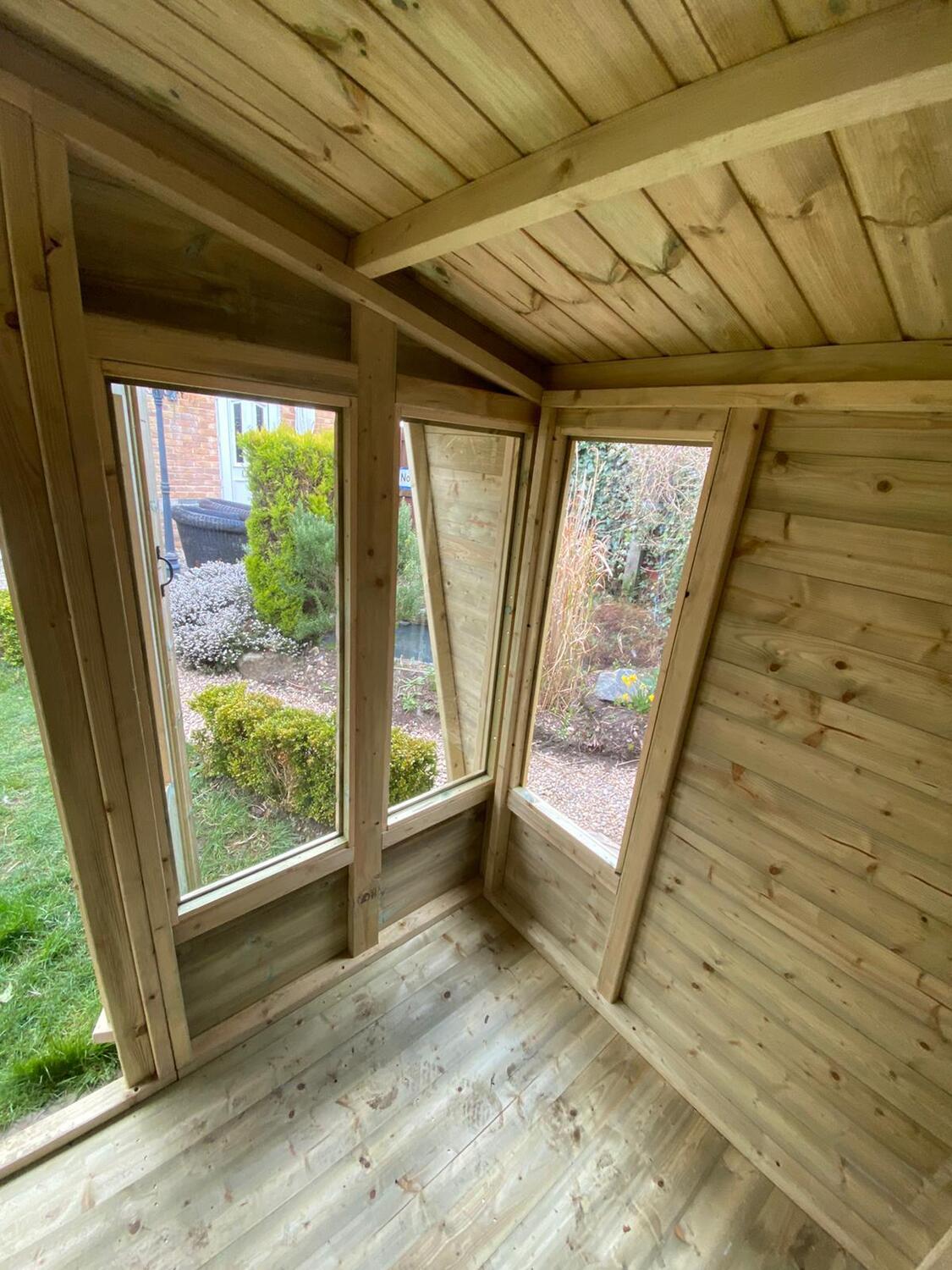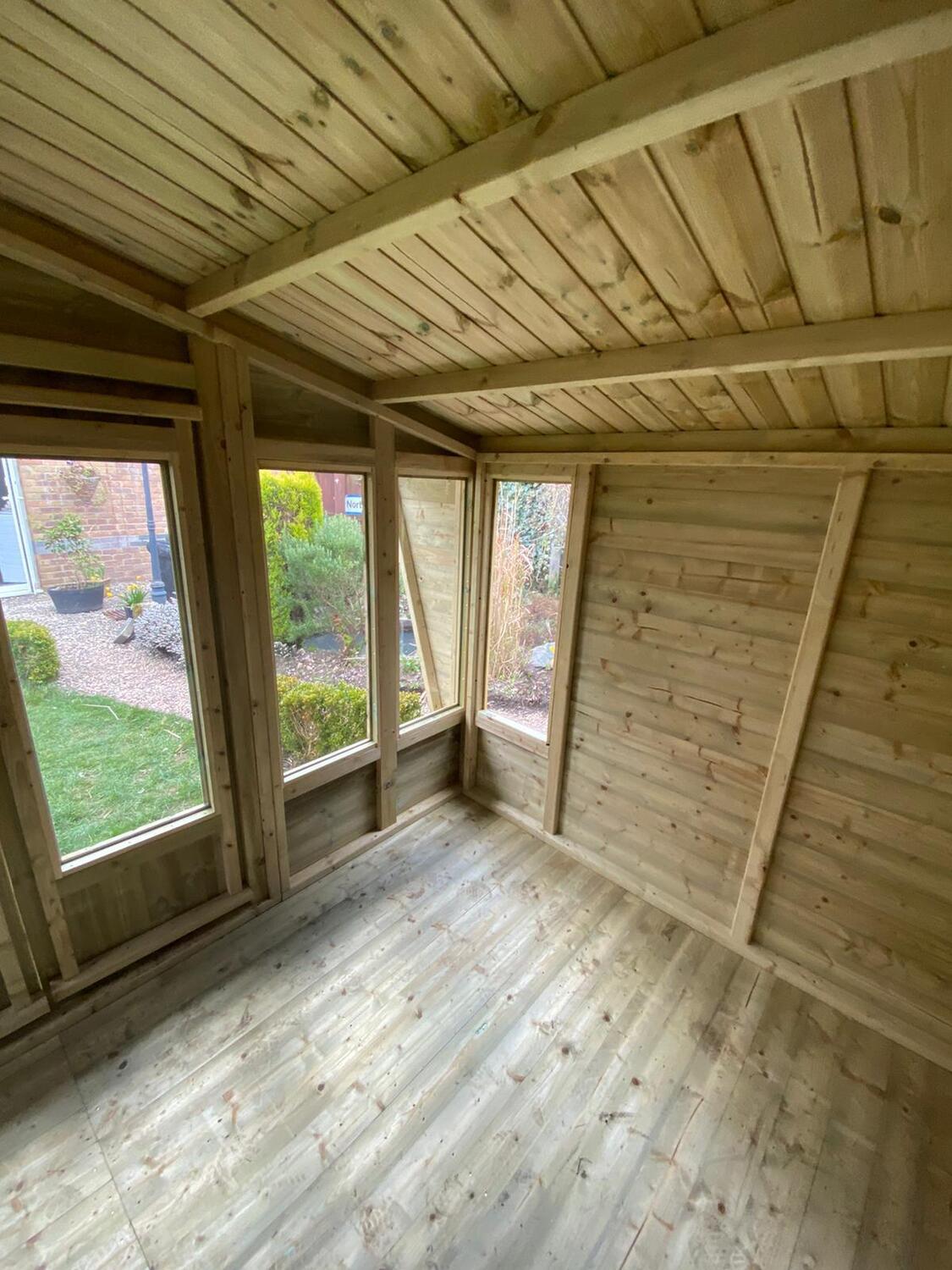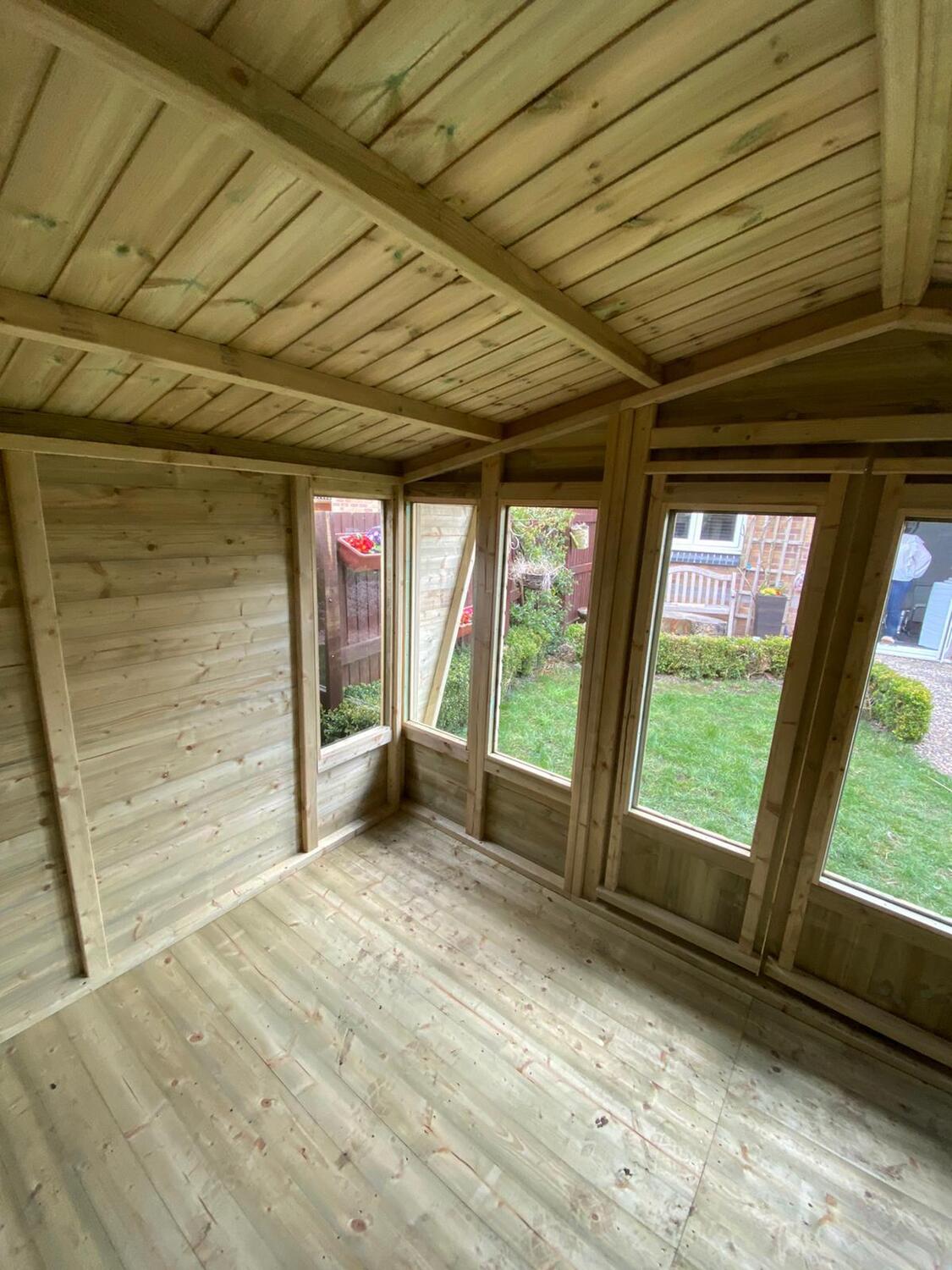 12x8 apex reverse roofed summerhouse in our tanalised 19mm T&G.