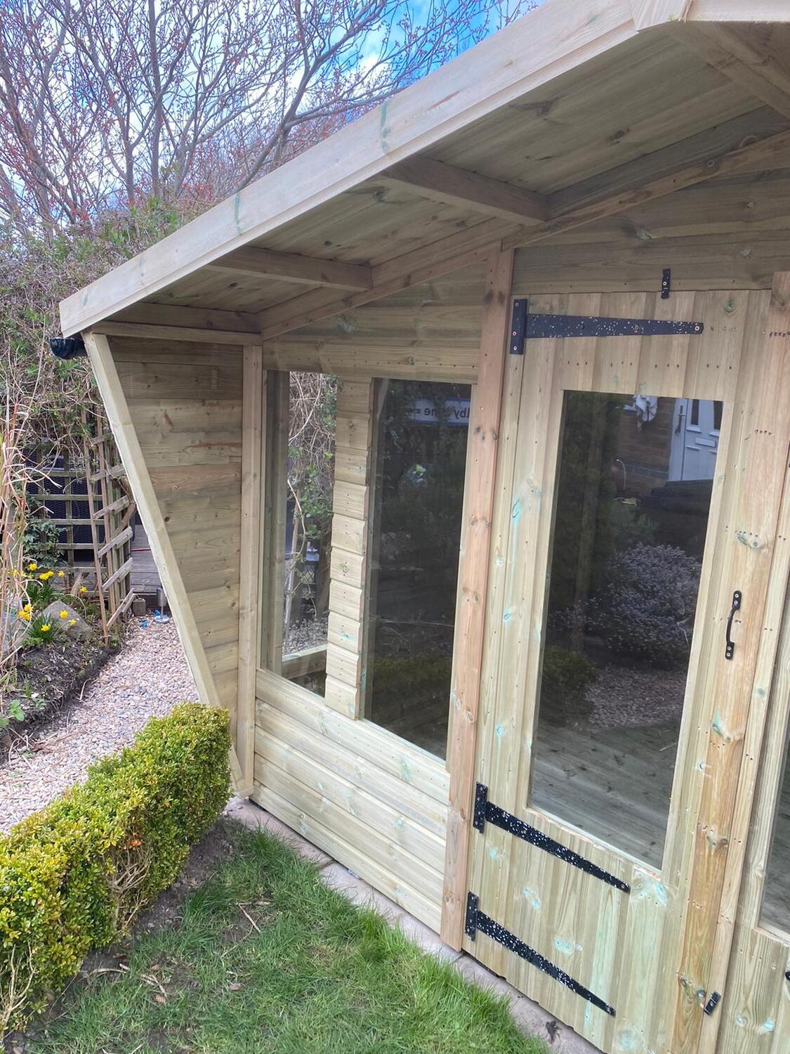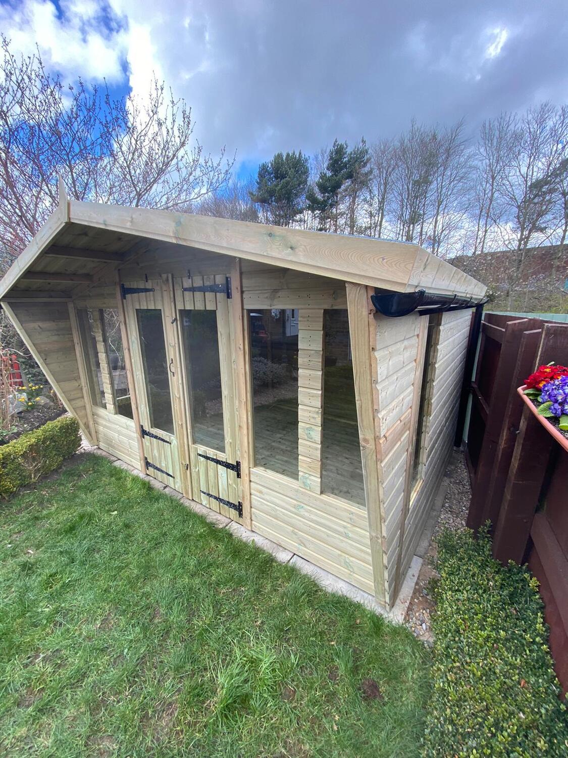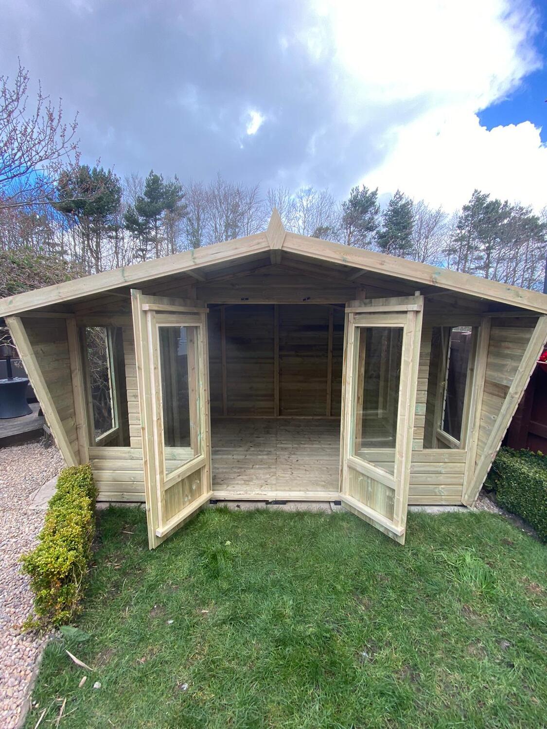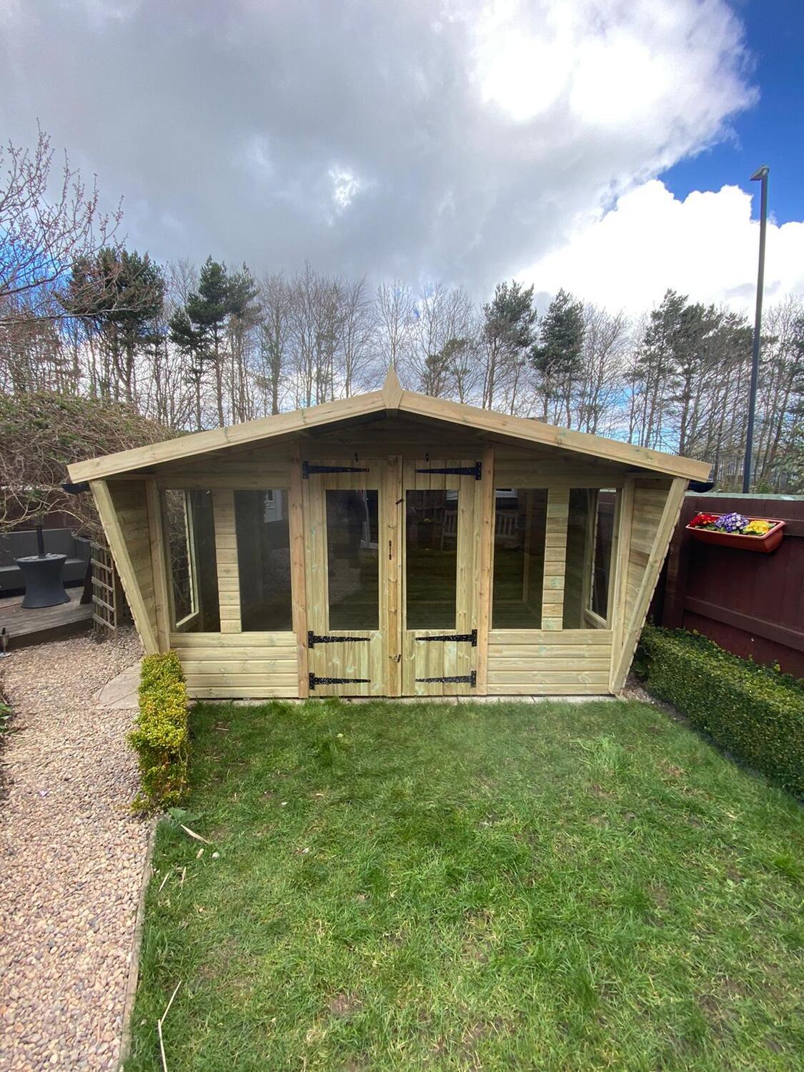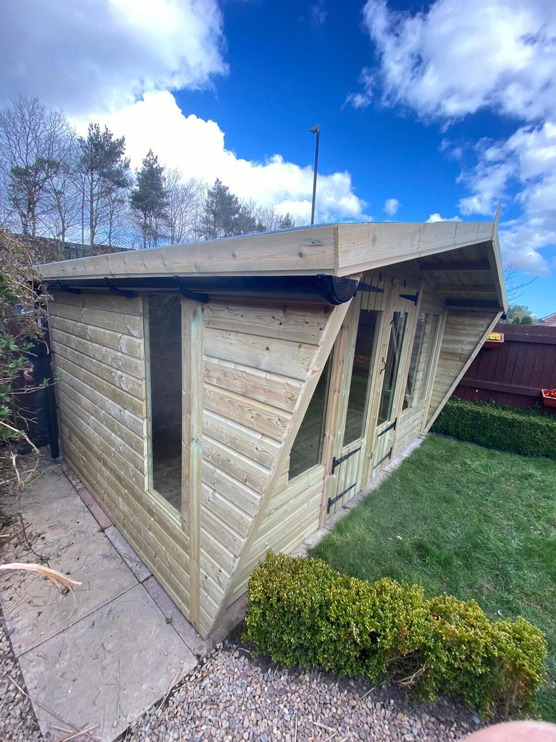 12x8 apex reverse roofed summerhouse in our tanalised 19mm T&G.