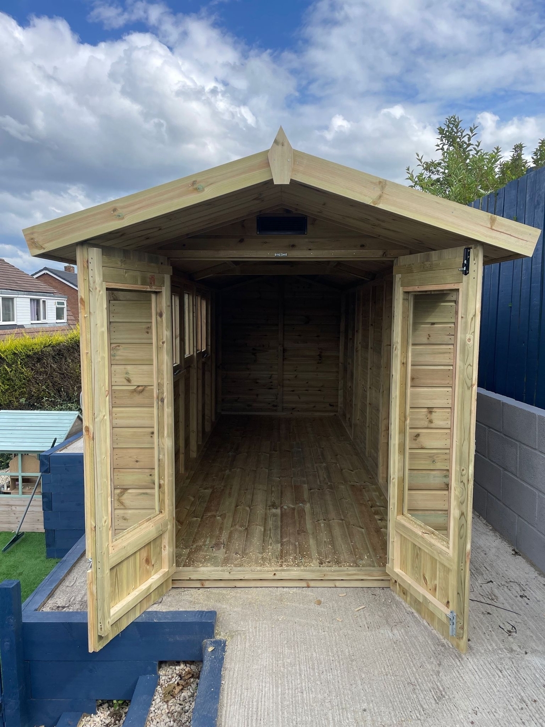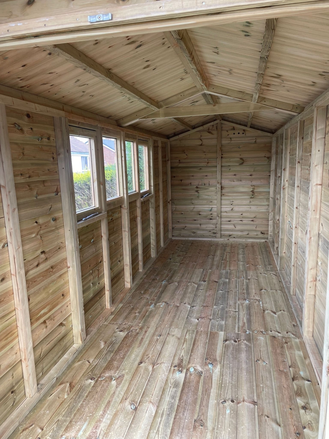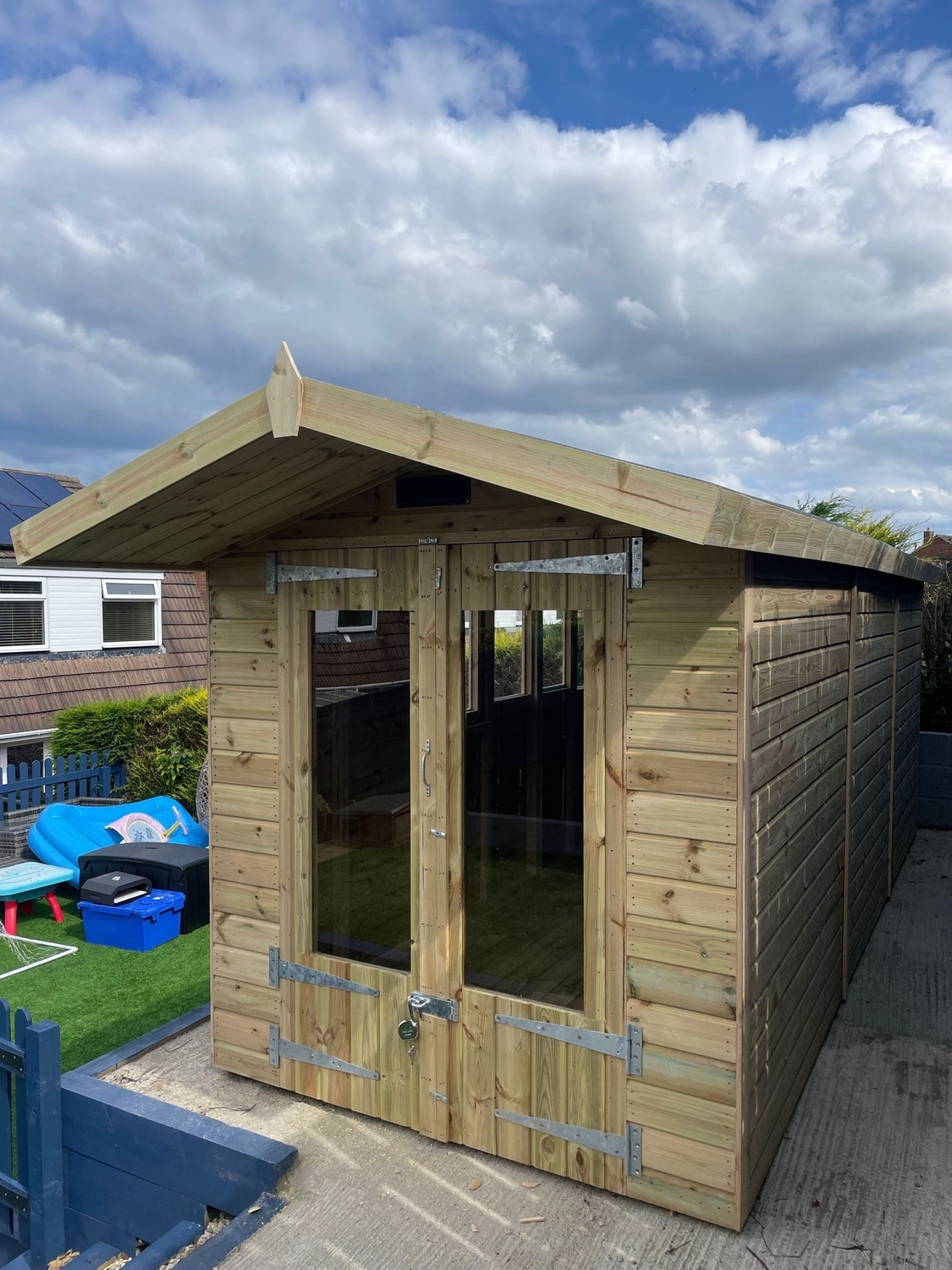 12x6 apex roofed summerhouse in our tanalised 19mm T&G, giving standard protection for 15 to 20 years without you having to treat it yourself.