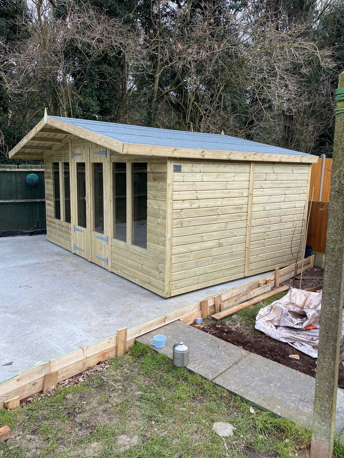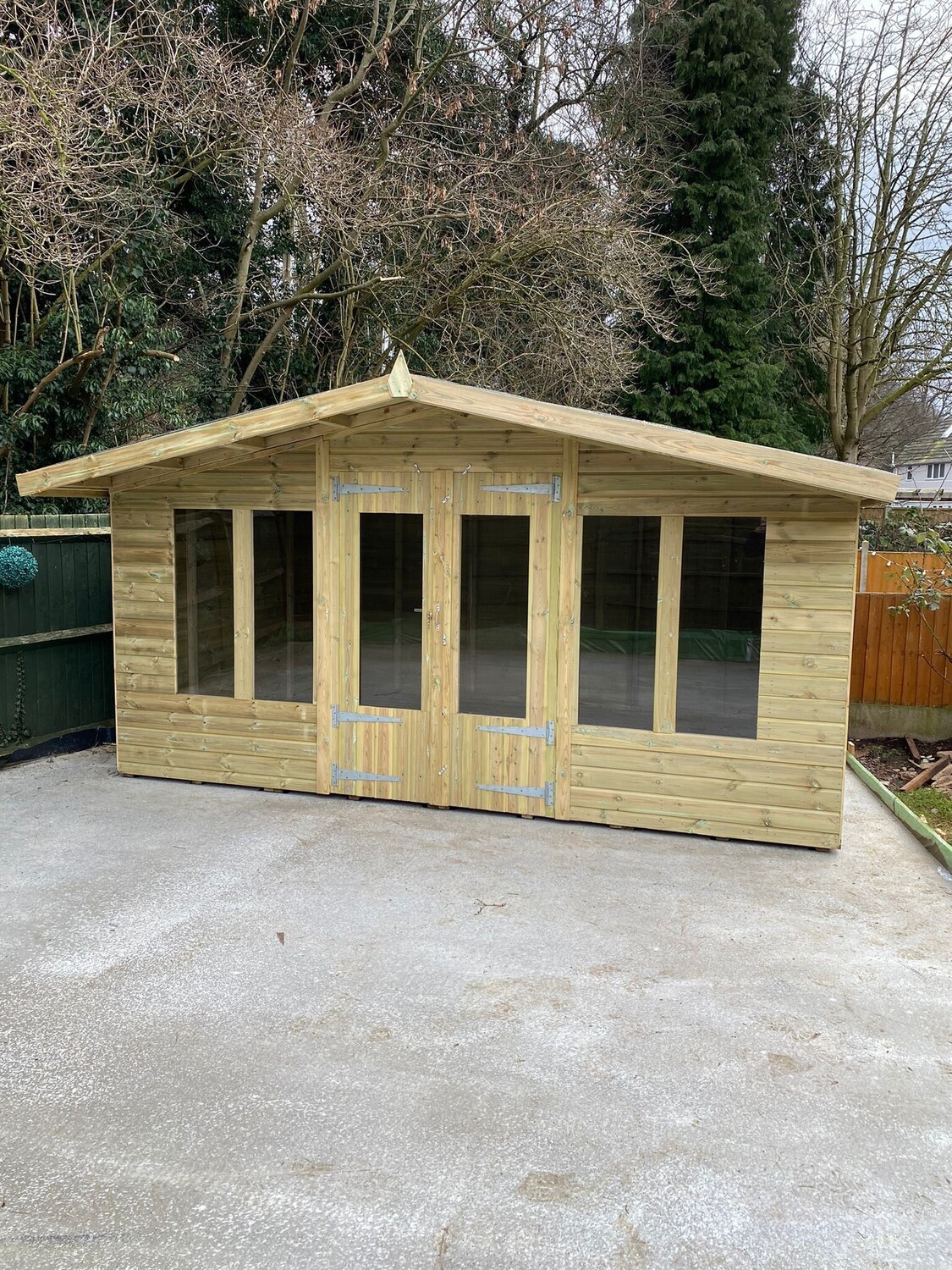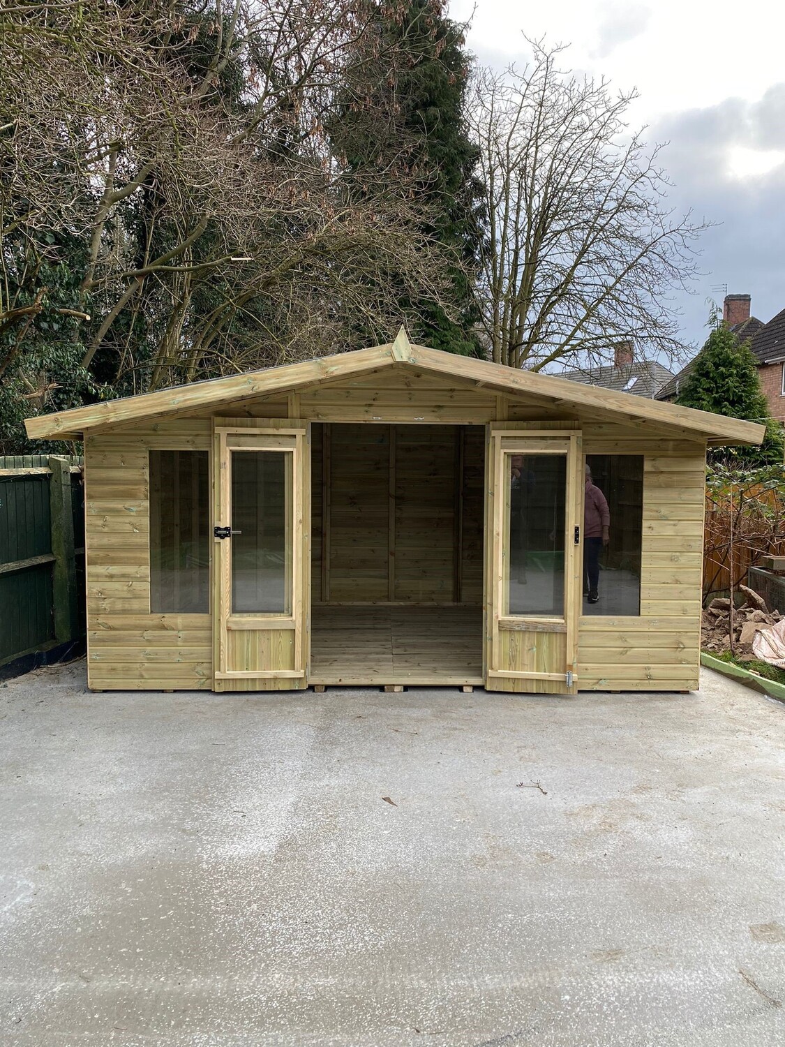 14x10 apex reverse roofed summerhouse in our tanalised 19mm T&G.