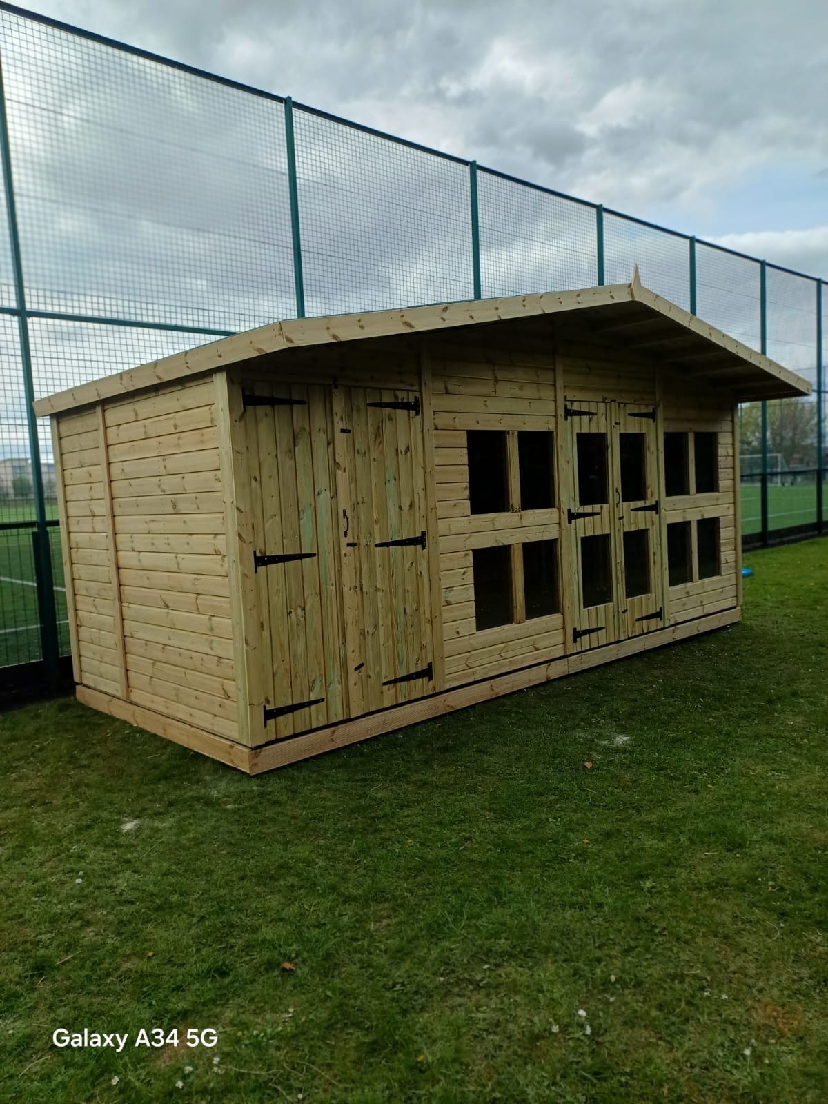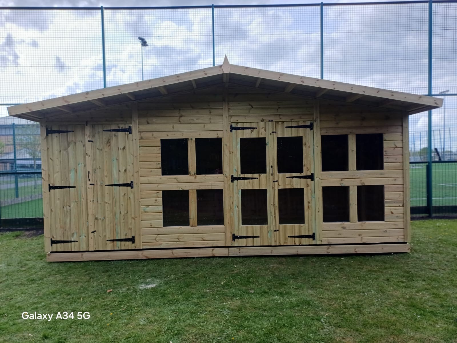 The summerhouse has TWO 4ft wide 6ft high double doors and an internal partition making a separate shed area and 12 standard windows.