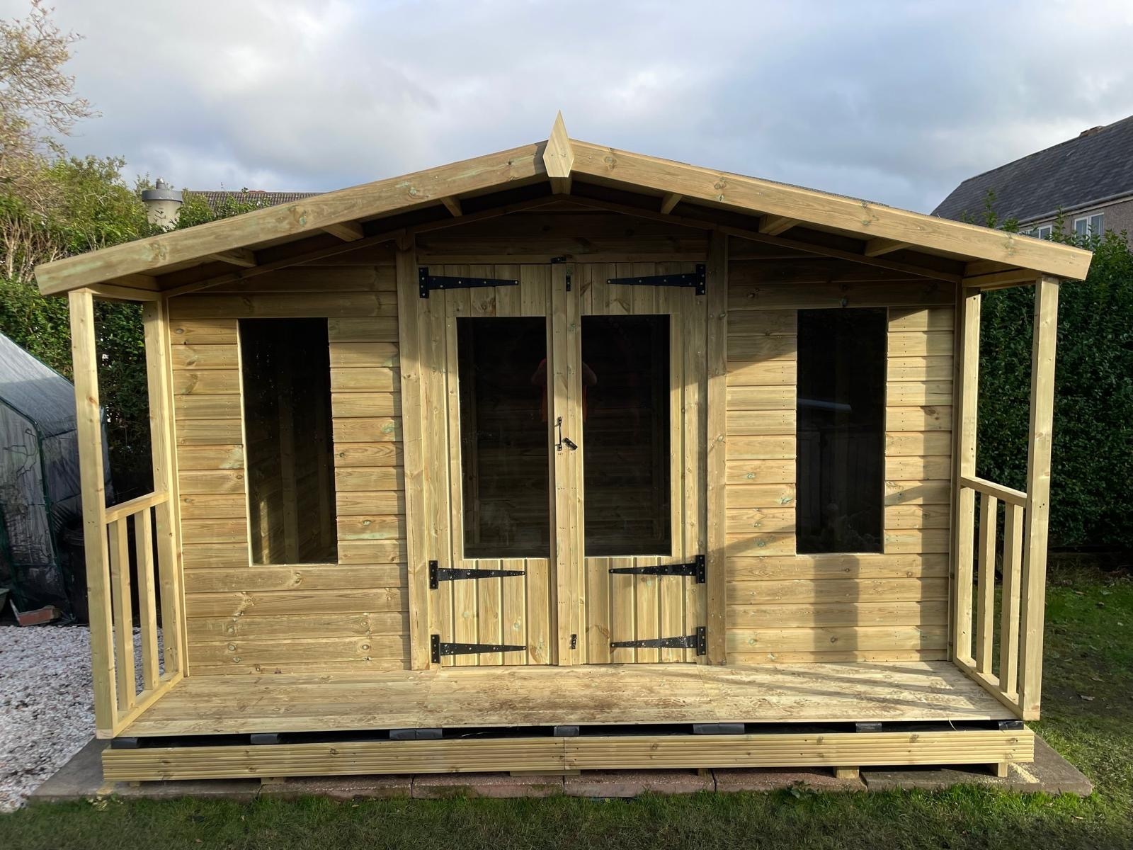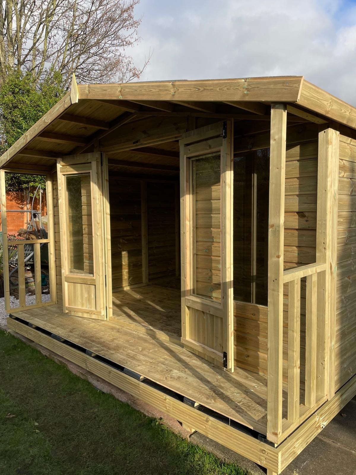 The summer house has a 2ft veranda making it 10ft deep in total.