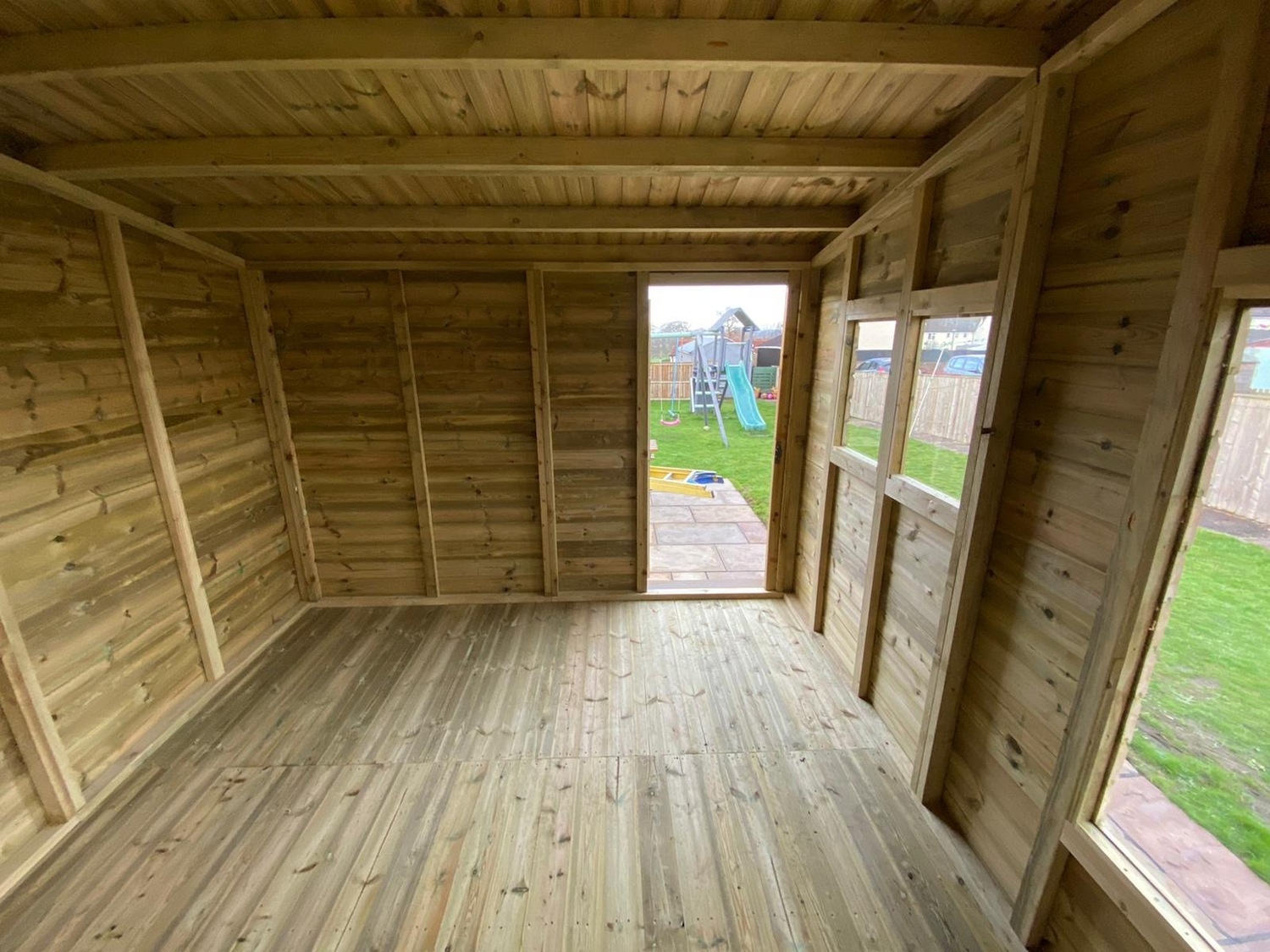 20x10 apex reverse roofed summerhouse in our tanalised 19mm T&G.