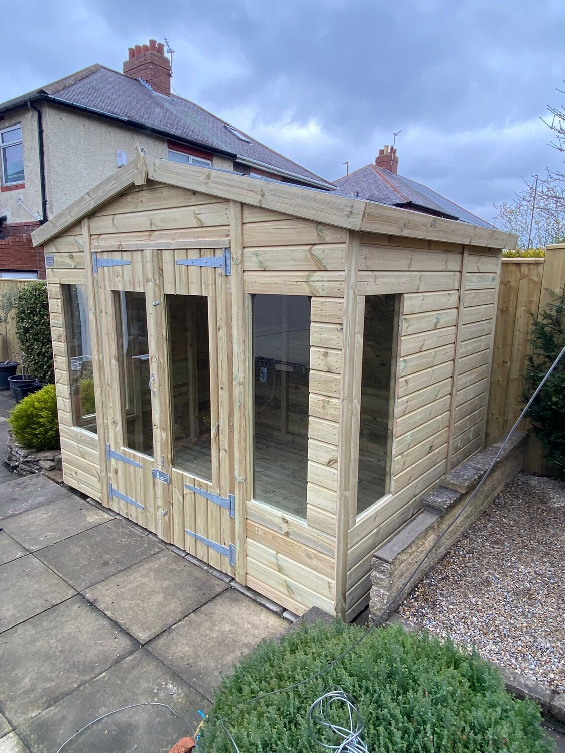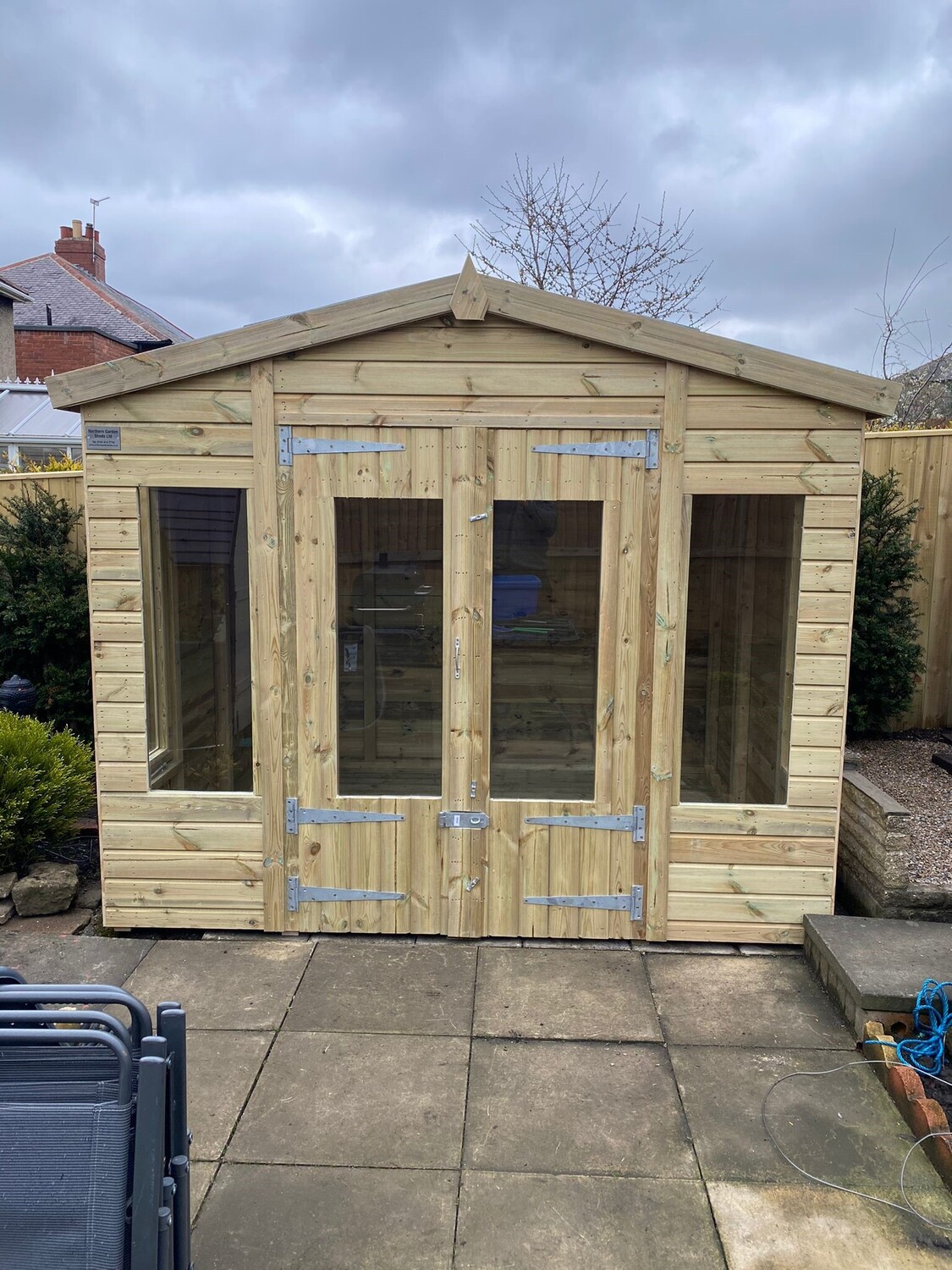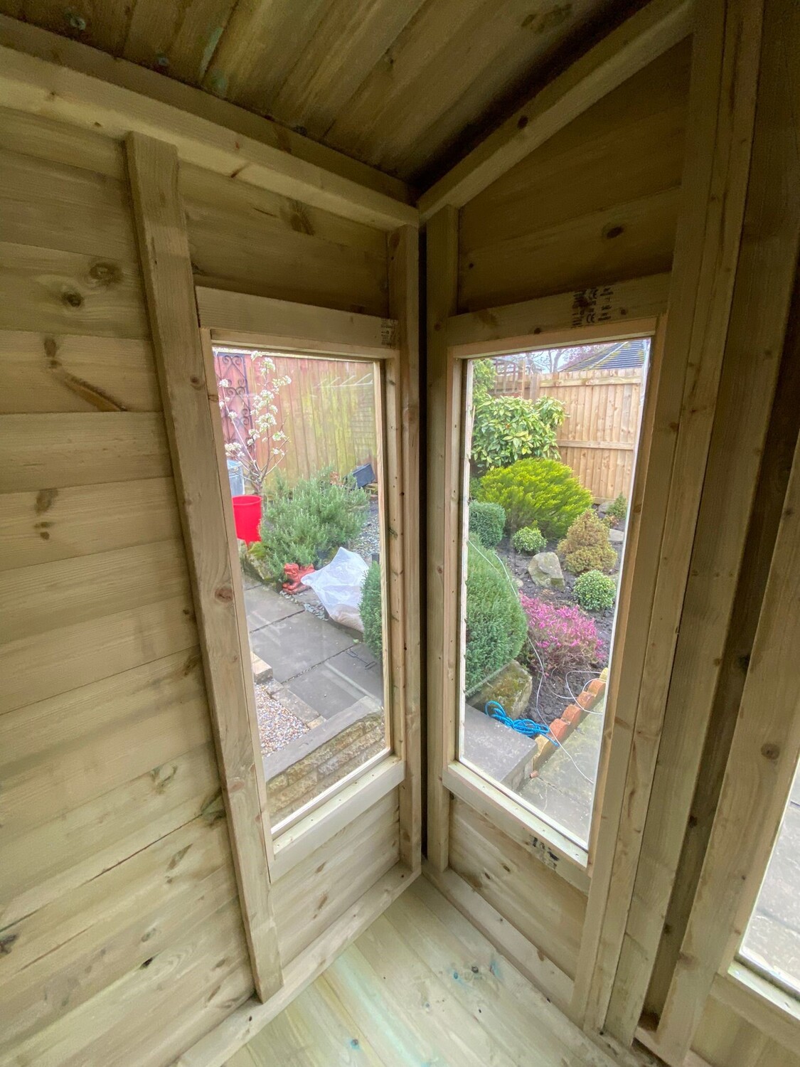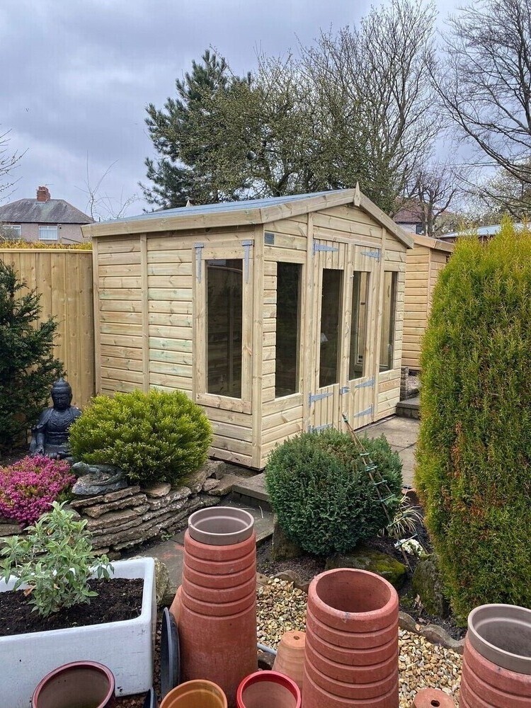 9x7 apex reverse roofed summerhouse in our tanalised 19mm T&G.