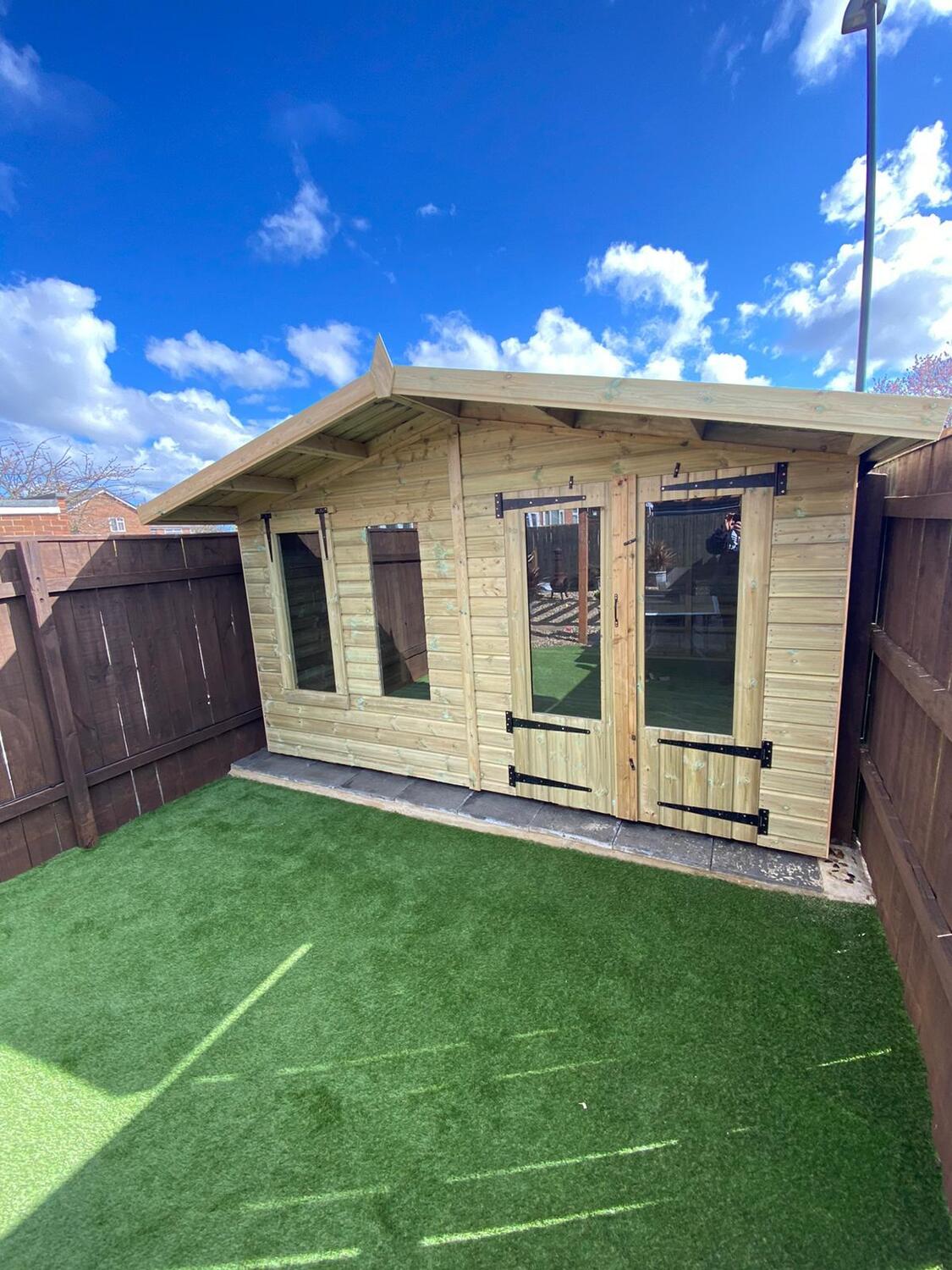 12x12 apex reverse roofed summerhouse in our tanalised 19mm T&G.