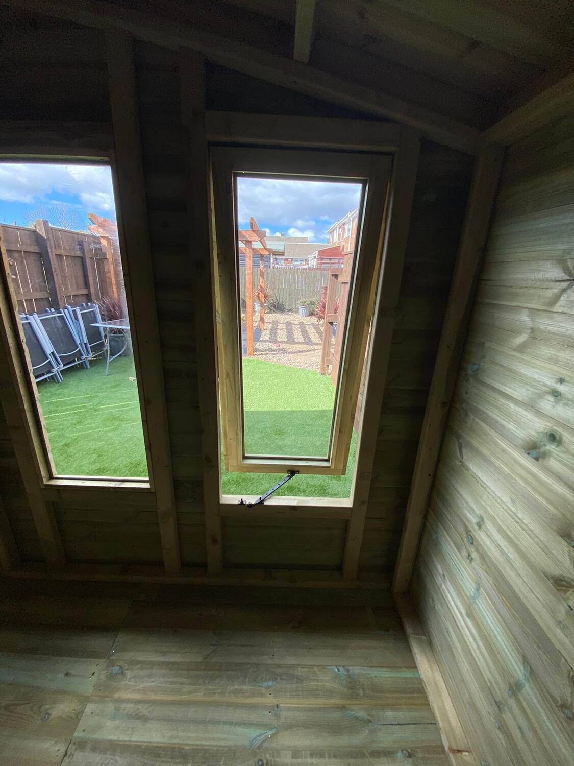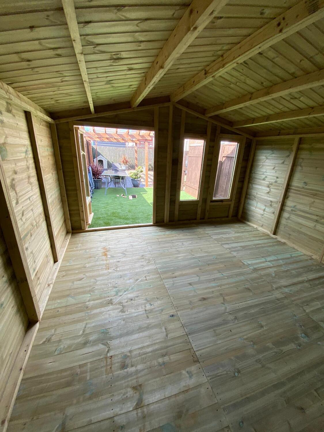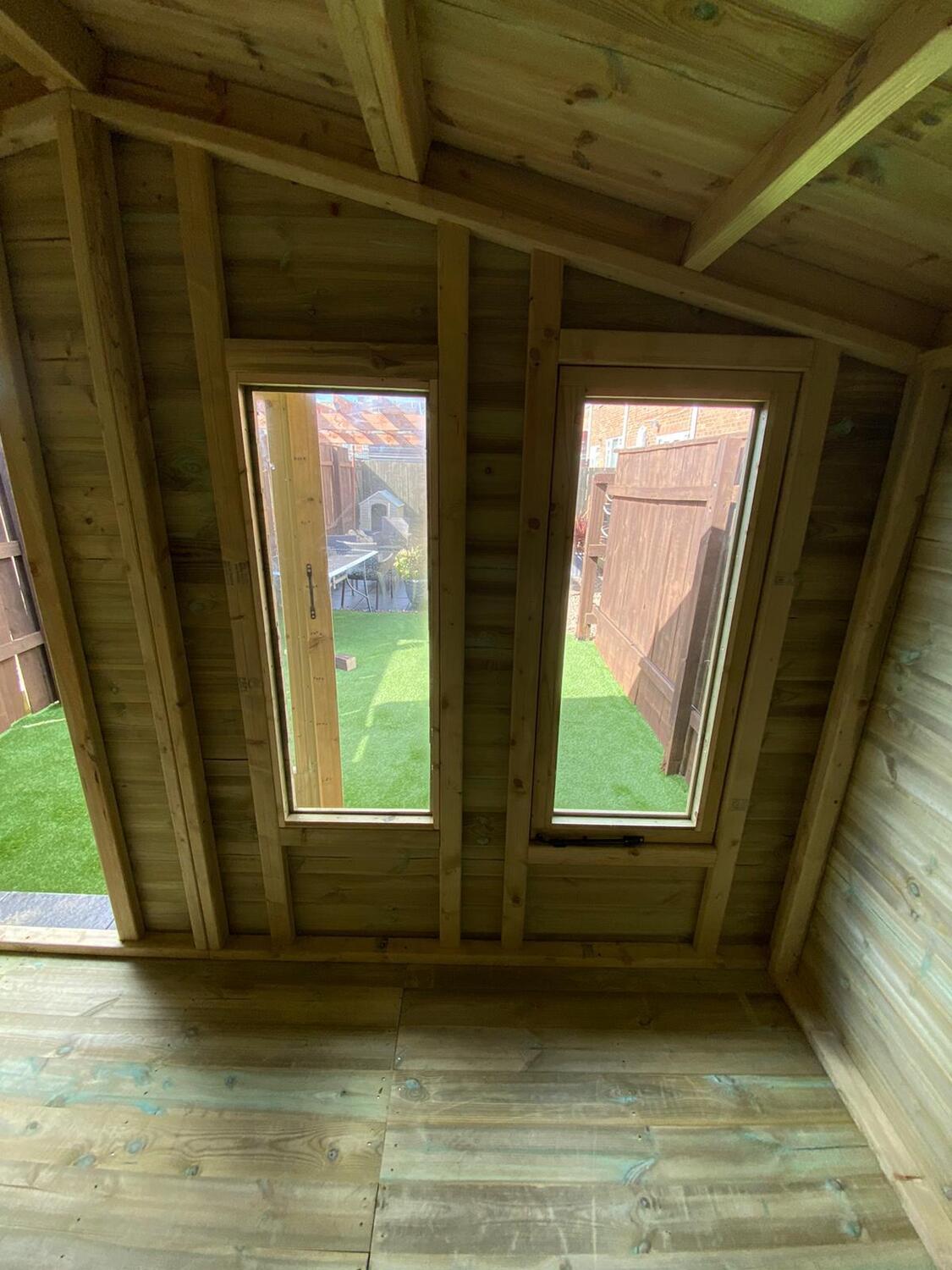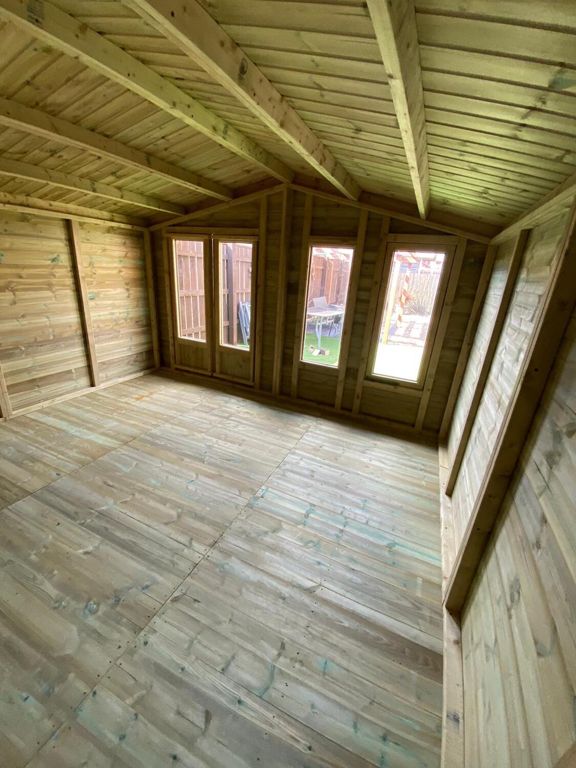 This summer house has the upgraded heavier 4x2 framework in the roof which is required because of the 12ft span.
