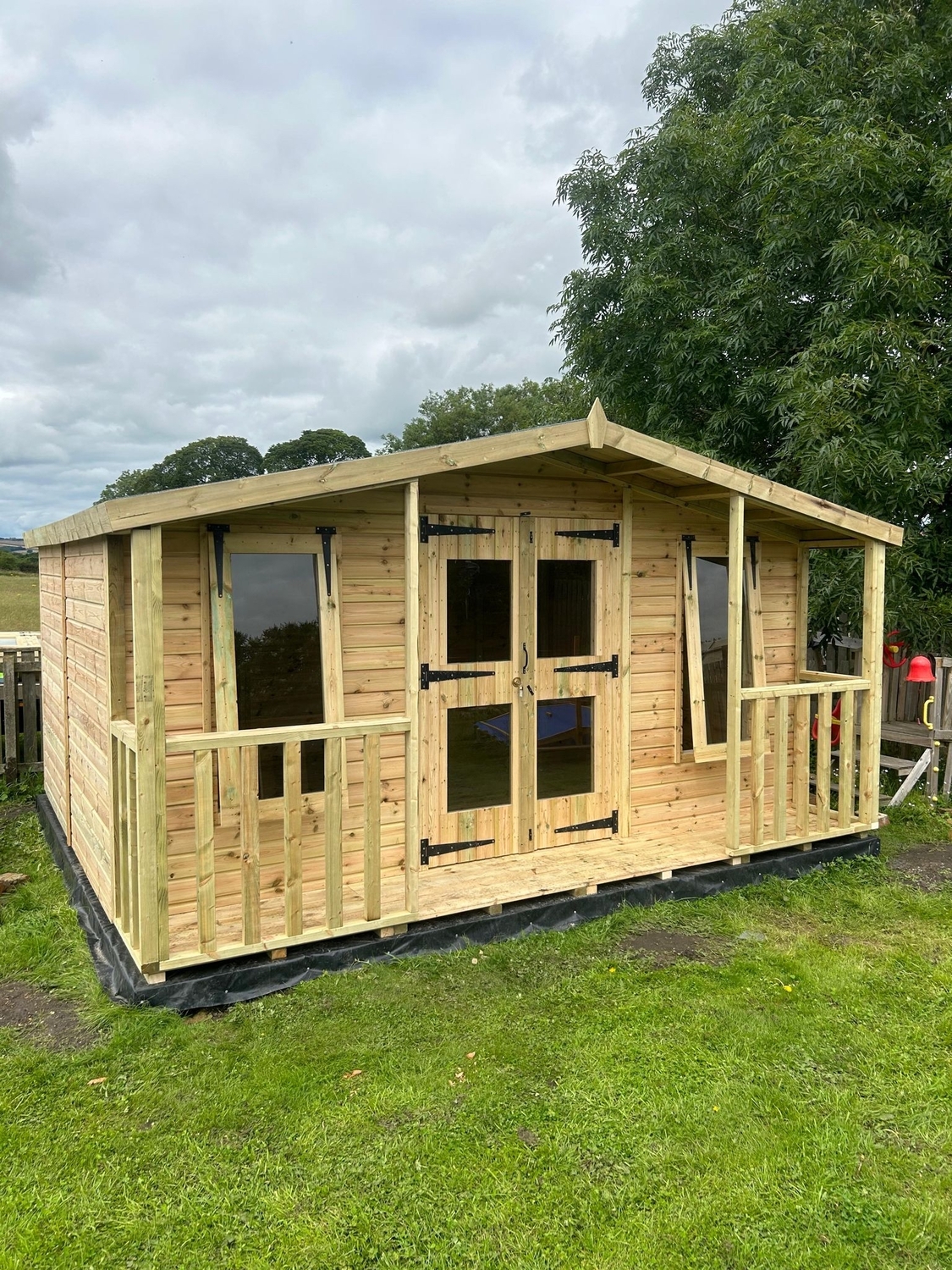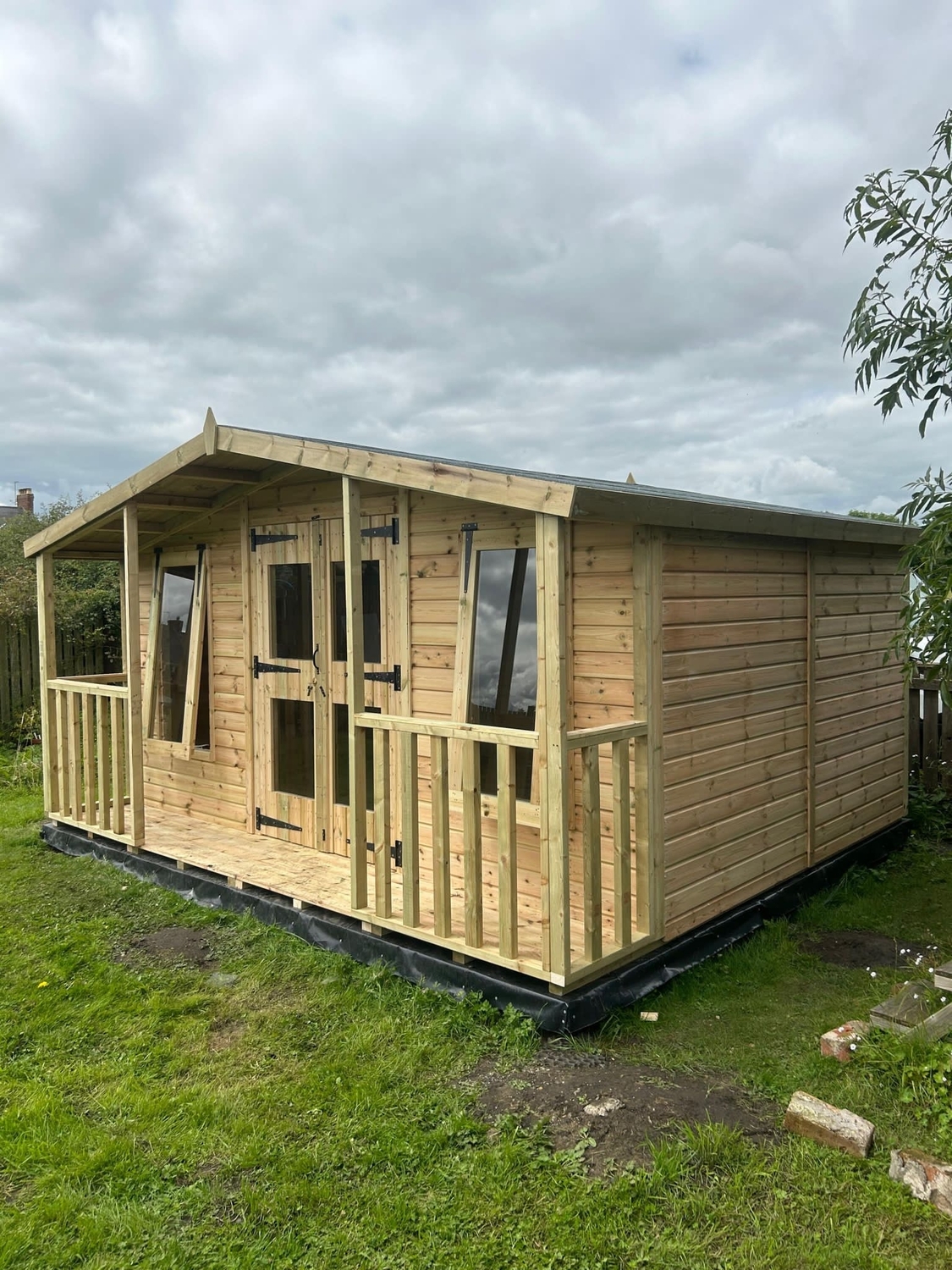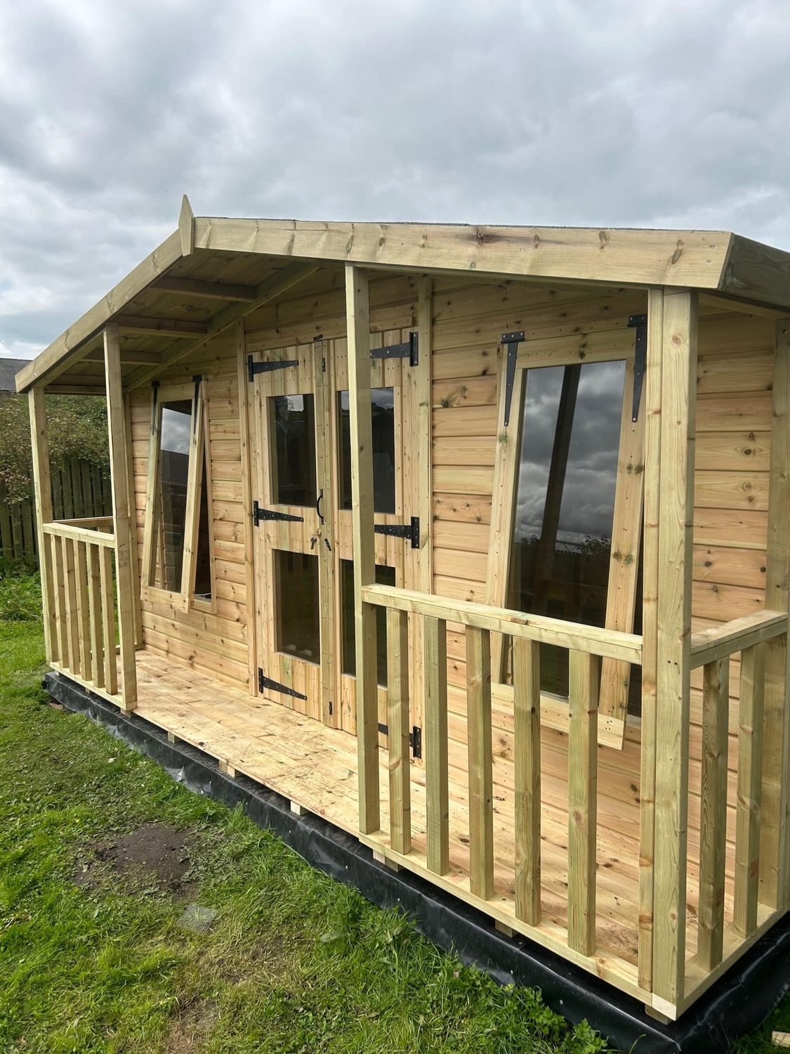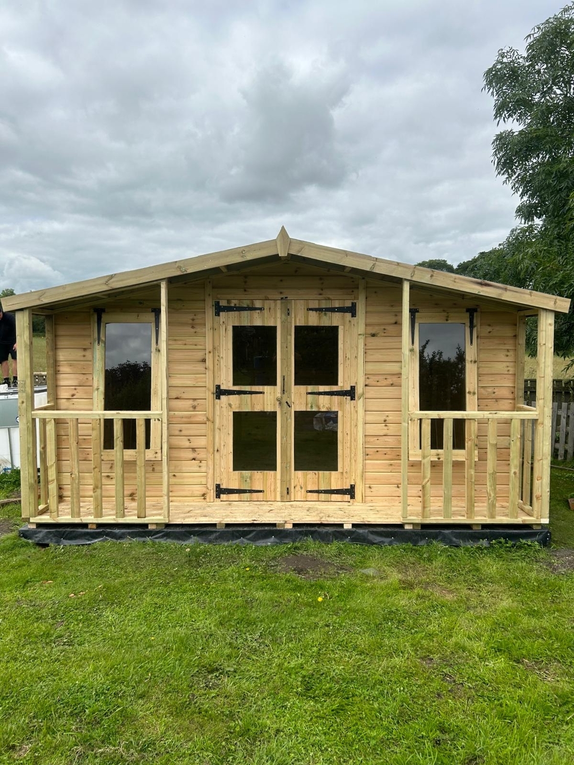 The summer house has a 2ft veranda with full railings making it 12ft deep in total.