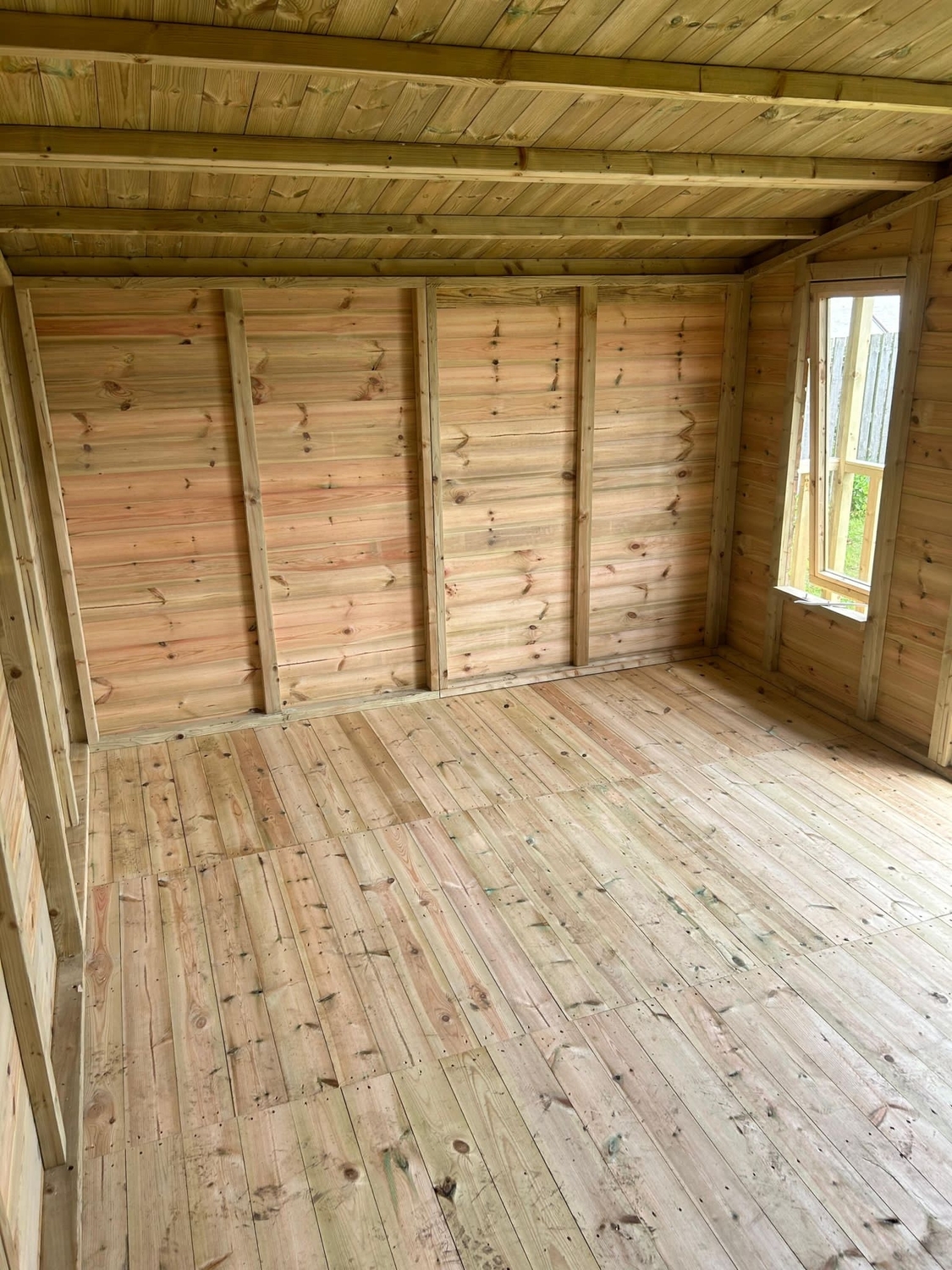 14x12 apex reverse roofed summerhouse in our tanalised 19mm T&G.