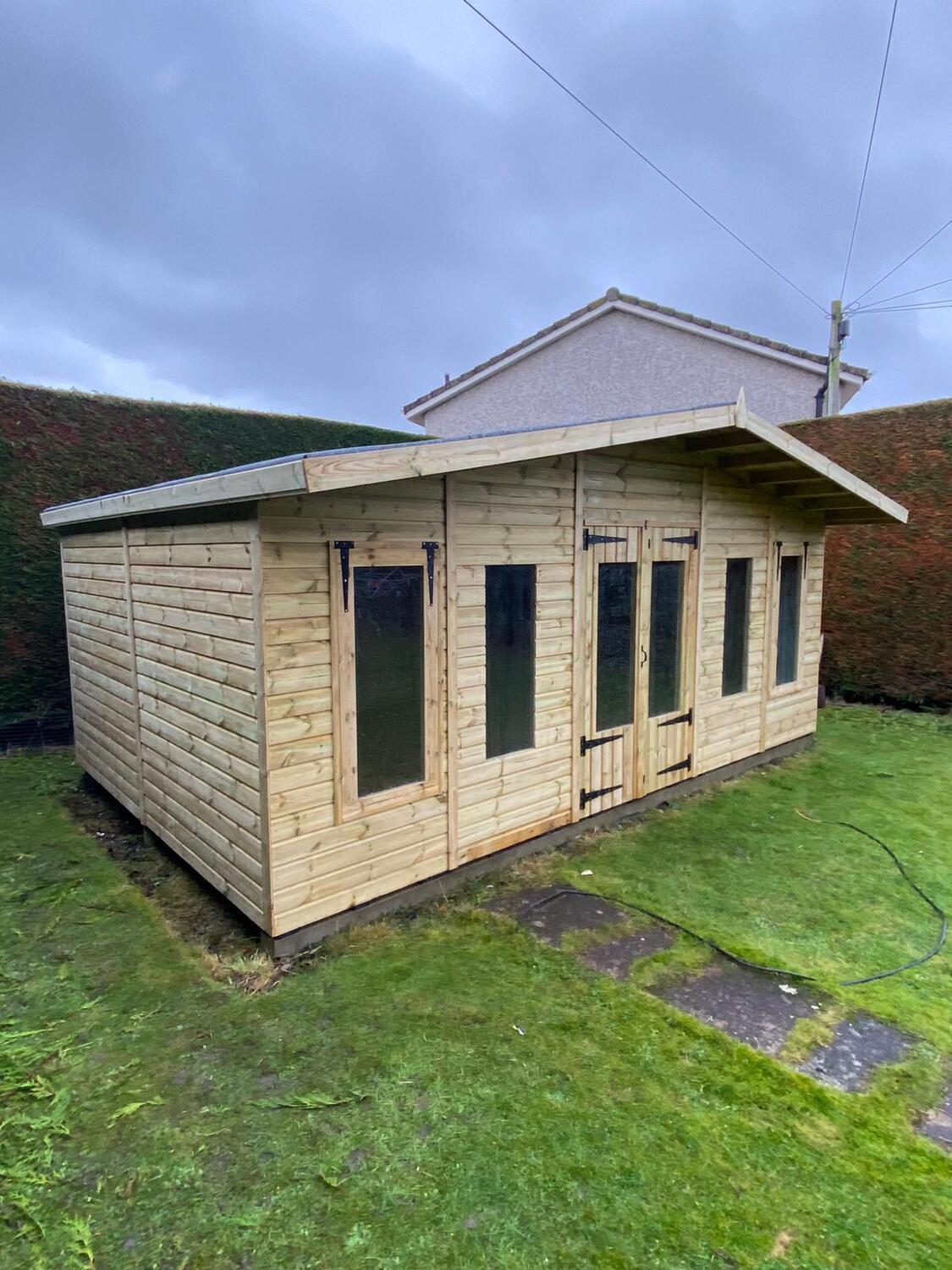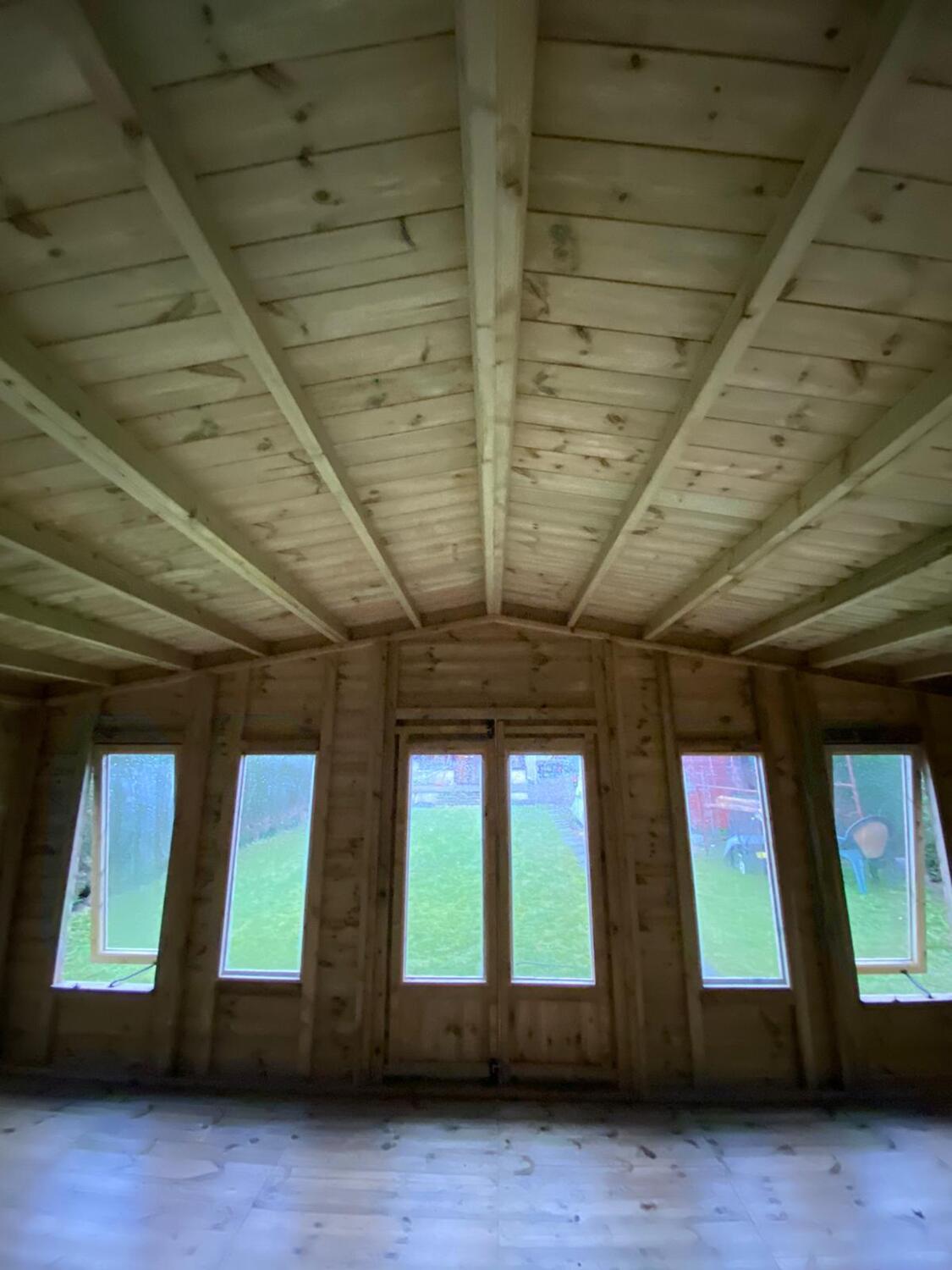 The summerhouse is 18ft wide at the front where the doors are and 10ft deep.