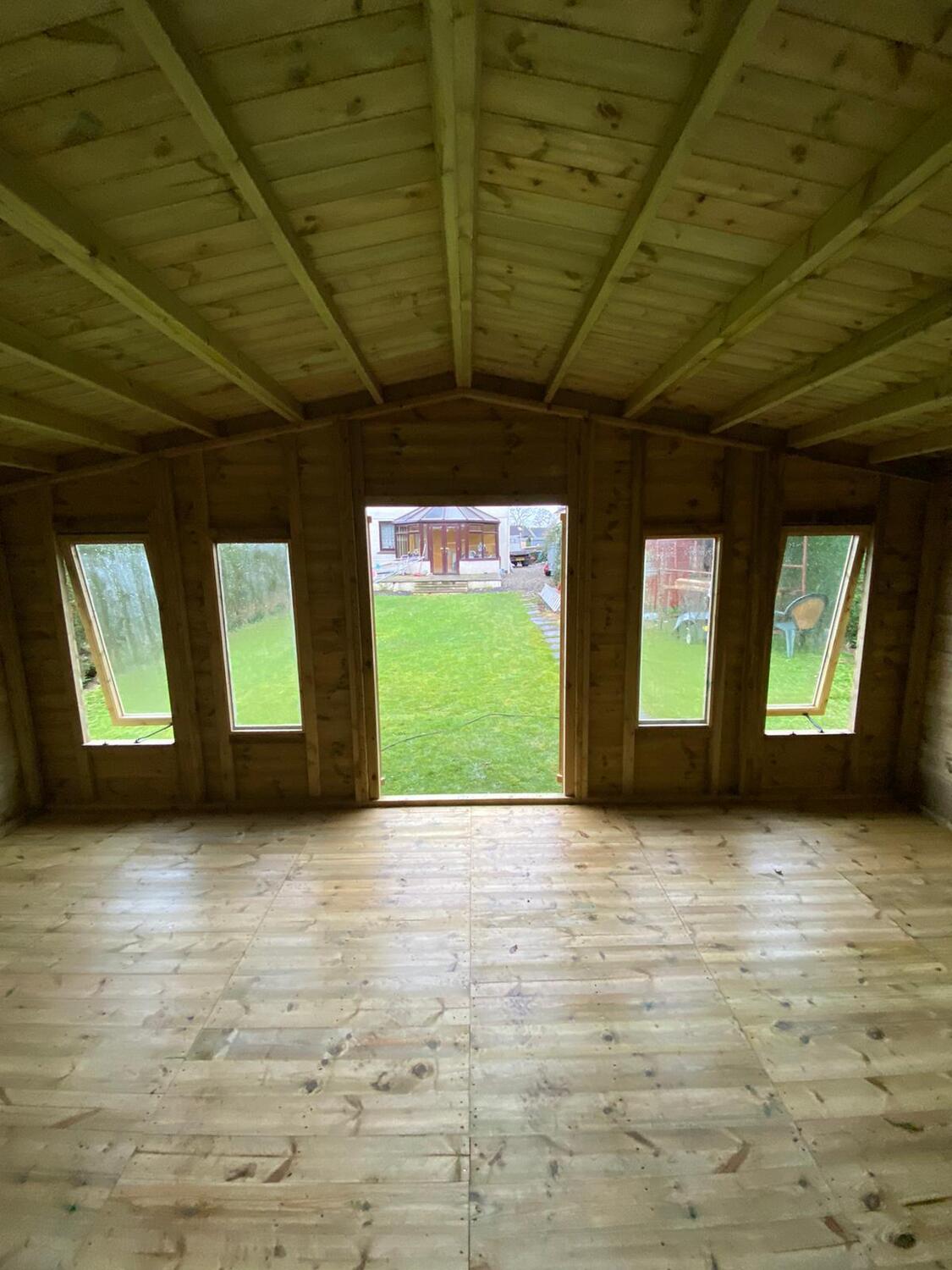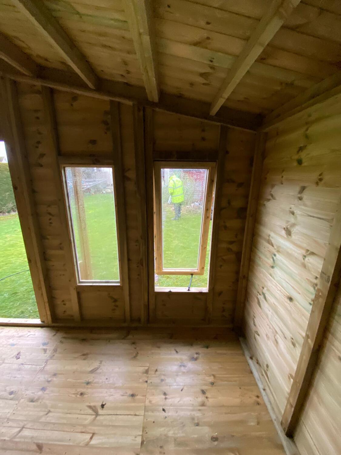 The summerhouse has a 4ft wide 6ft high double door and 6 windows, 2 of which open.