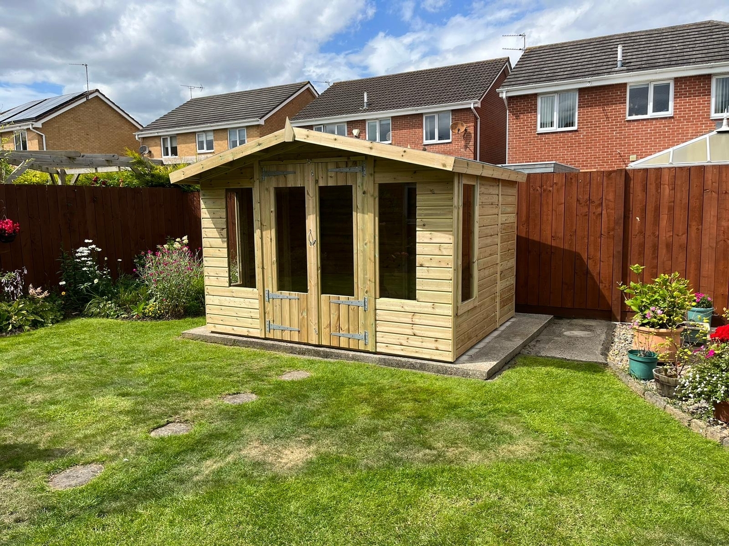 10x8 apex reverse roofed summerhouse in our tanalised 19mm T&G.
